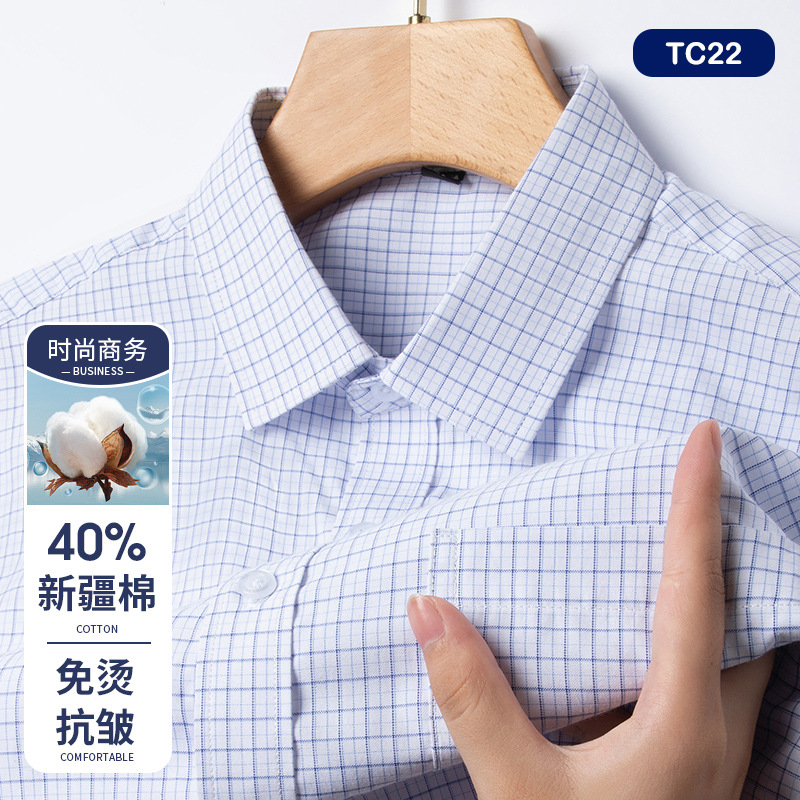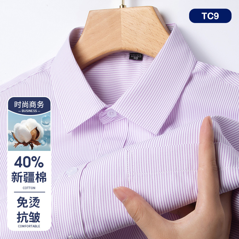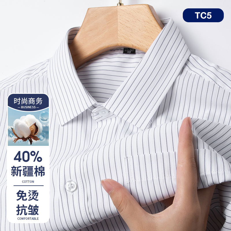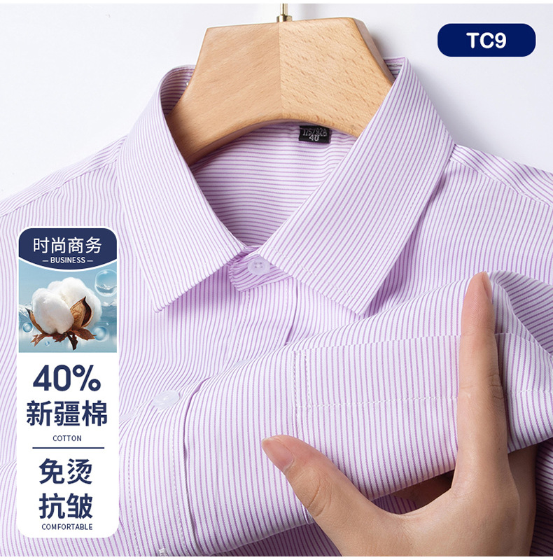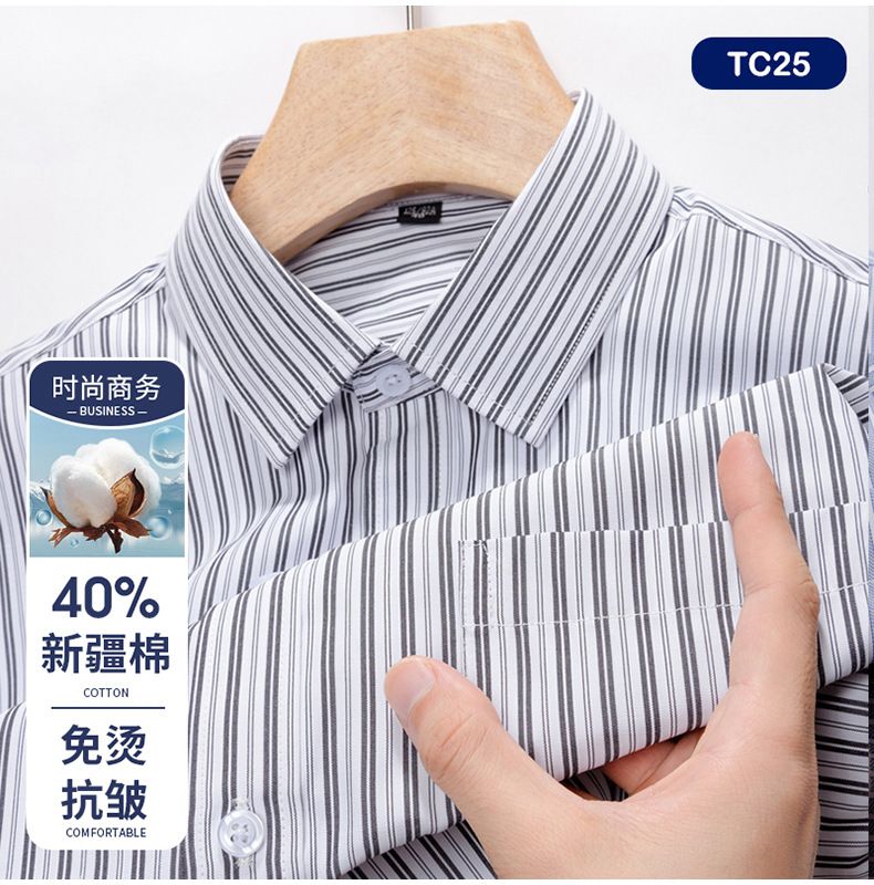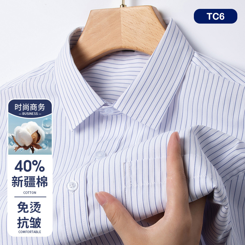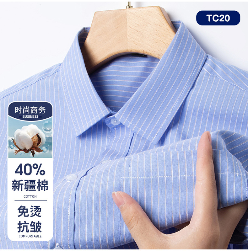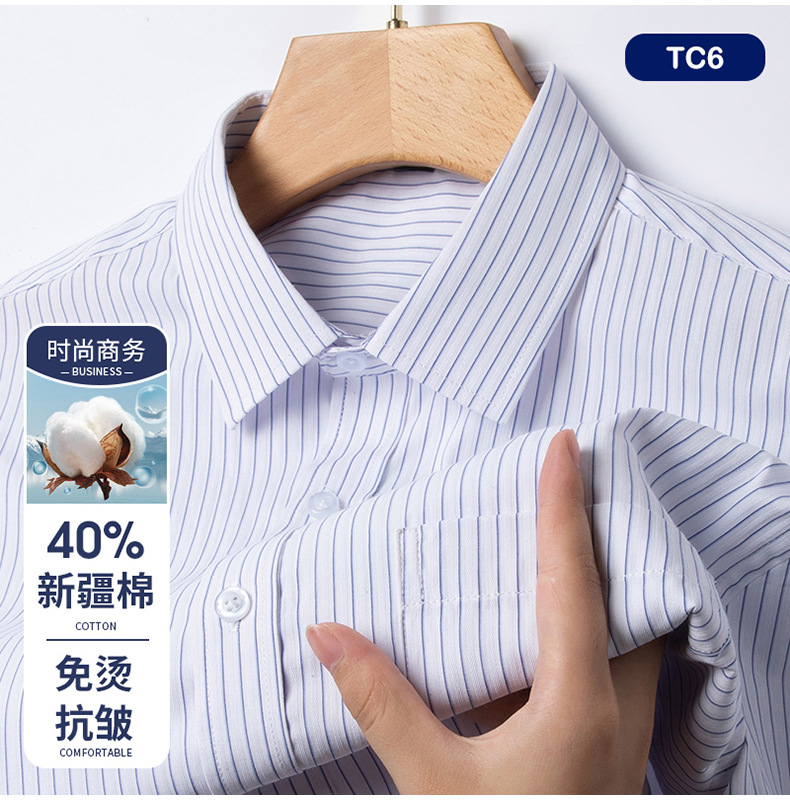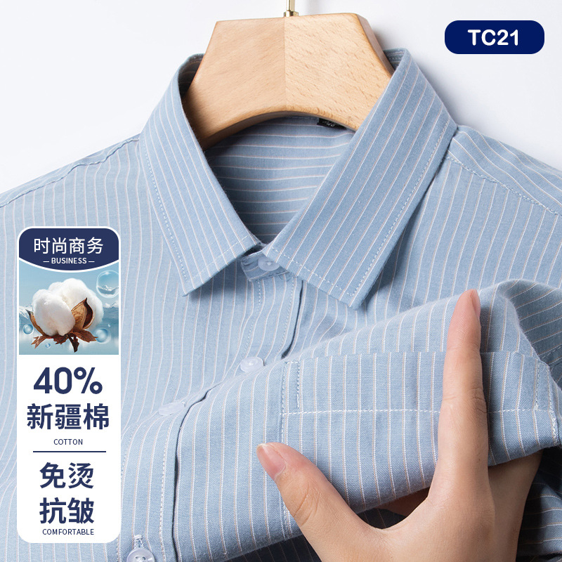 남성용 긴팔 블루 스트라이프 셔츠, 노아이론, 주름 방지, 비즈니스 캐주얼 셔츠, 재킷, 트렌디하고 관리가 쉬운 고급형스토어 가기
