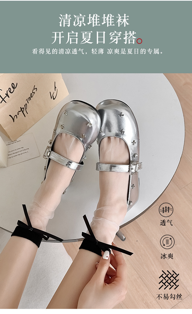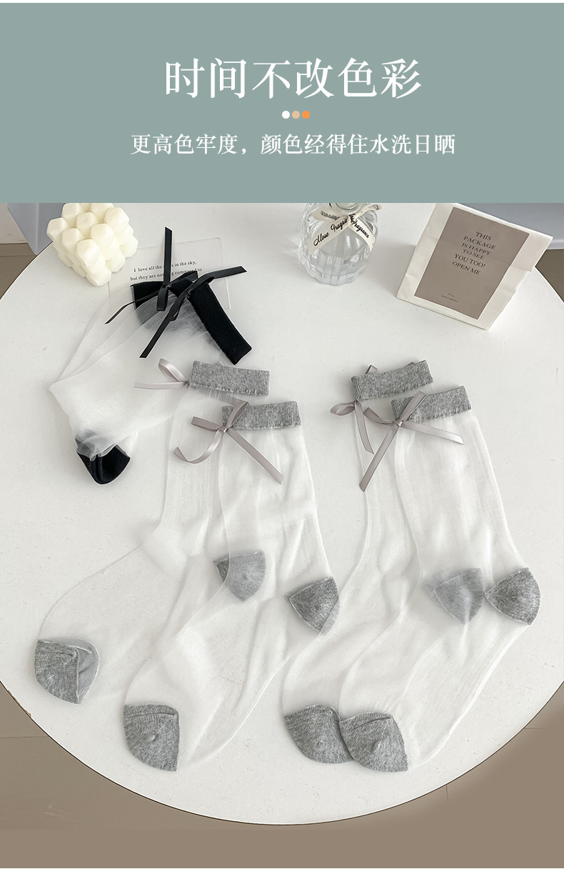 유리 실크 양말 여성의 봄과 여름 얇은 카드 실크 양말 경량 통기성 올 매치 귀여운 활 레이스 여성용 양말