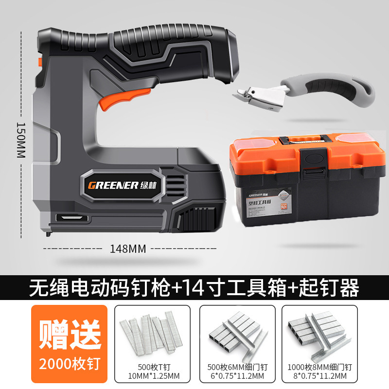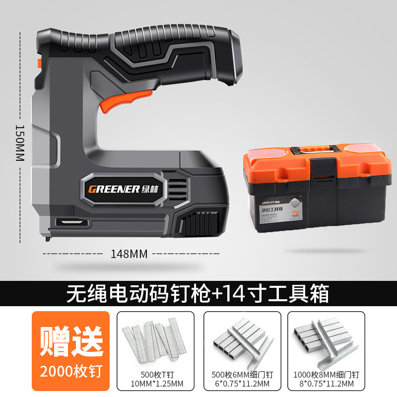 • 리튬 배터리 네일 건 + 14inch 도구 상자, 주문 시 2,000개의 못을 받게 됩니다.
