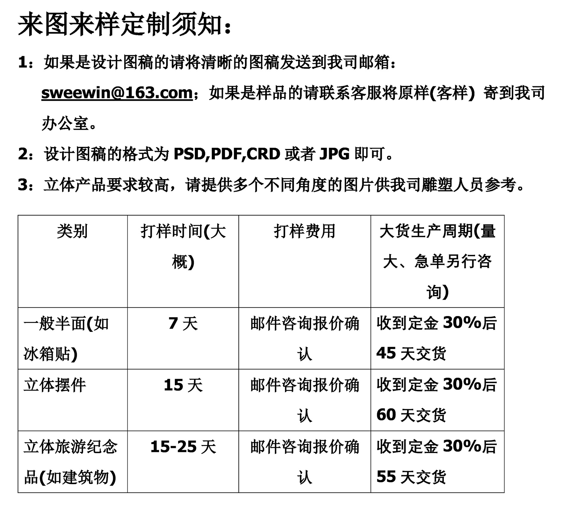 泉州瑞应贸易有限公司成立于2022,位于素有“树脂之乡”美誉的福建省泉州市丰泽。本公司以树脂,陶瓷,铁器,竹木,布艺,彩玻等工艺品批发销售为主,承接外贸出口订单业务,批量的促销品/礼品/赠品,国内各地的旅游纪念品定制。主要产品有: 1. 树脂冰箱贴,钥匙挂件,手机挂件,名片夹,首饰架。2.树脂摇头公仔,车载摇头狗定制。 3.各种尺寸树脂玻璃水晶球定制。 4.流水喷泉加湿器。 5.国内各旅游名胜景区纪念工艺品。 6.树脂水族装饰工艺品。 7.各种节日礼品:圣诞节/复活节/万圣节/情人节/春节等等树脂工艺品。 8.根据客人来样/意向/图纸进行雕塑设计打样生产。 欢迎新老客户莅临本公司参观、指导和业务洽谈。本公司力争不断扩大竞争优势,把客户做成朋友,共同双赢。