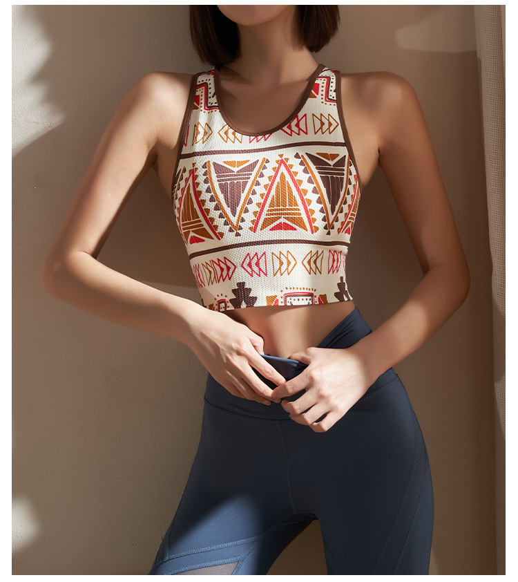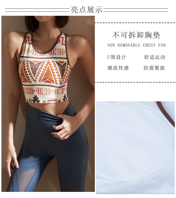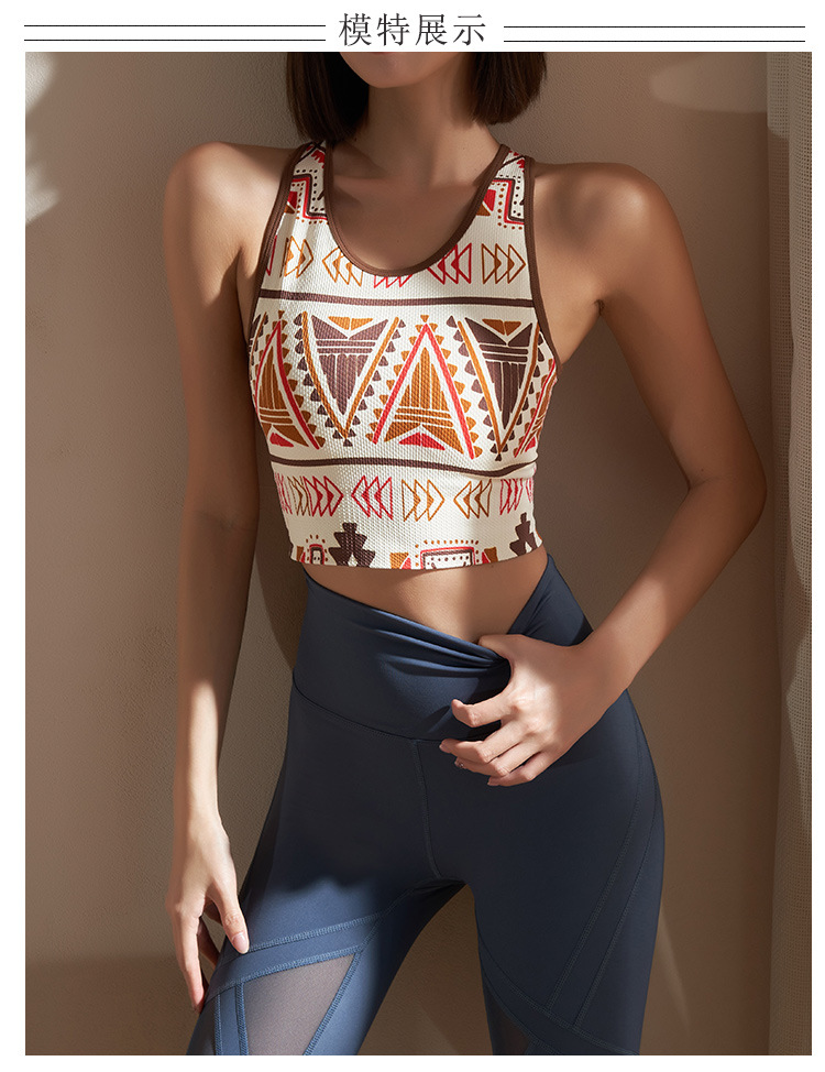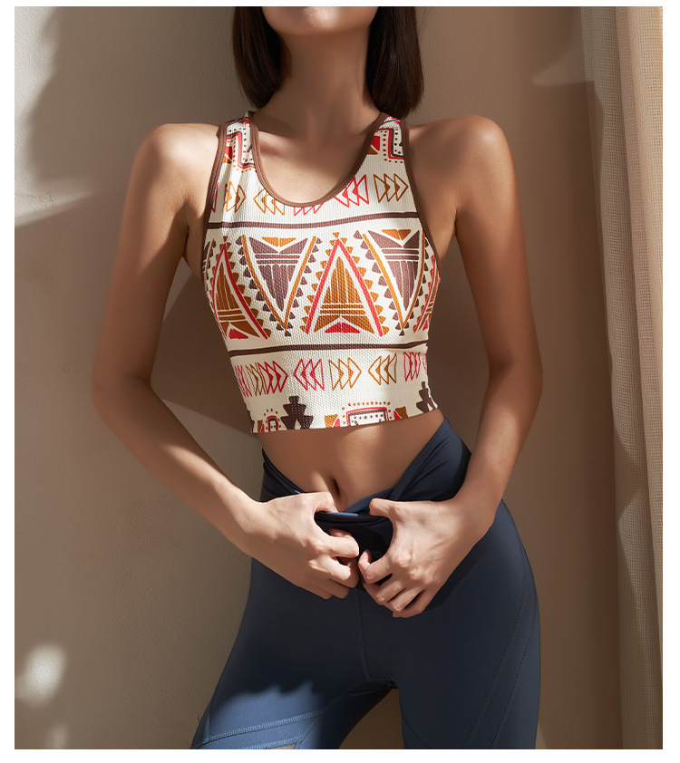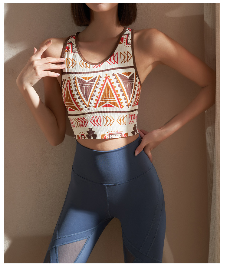 요가복 보헤미안 고정형 가슴 패드 스포츠 브라 프린트 요가 조끼 여성용 속건 트레이닝 피트니스 브라