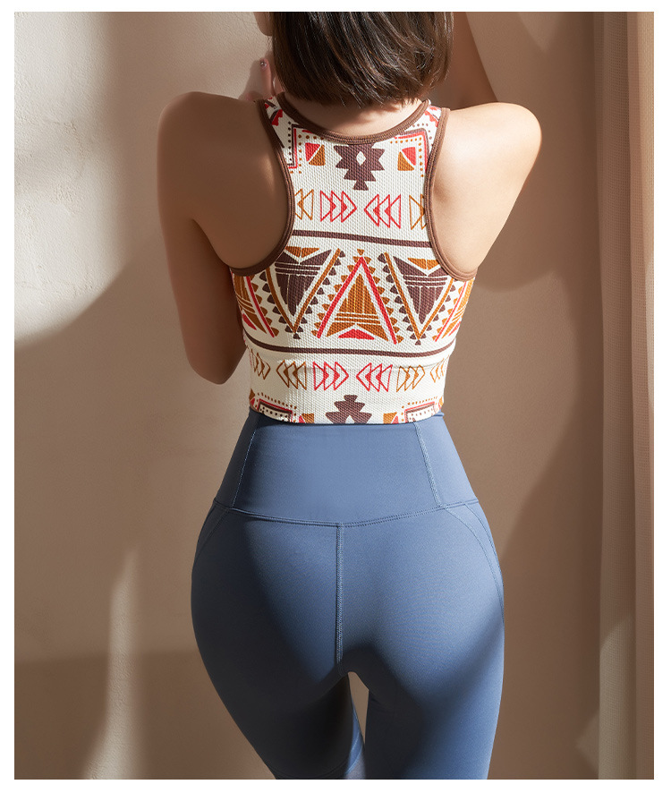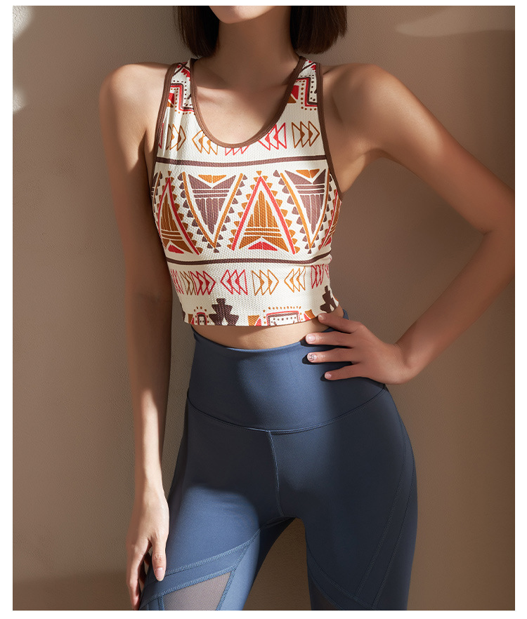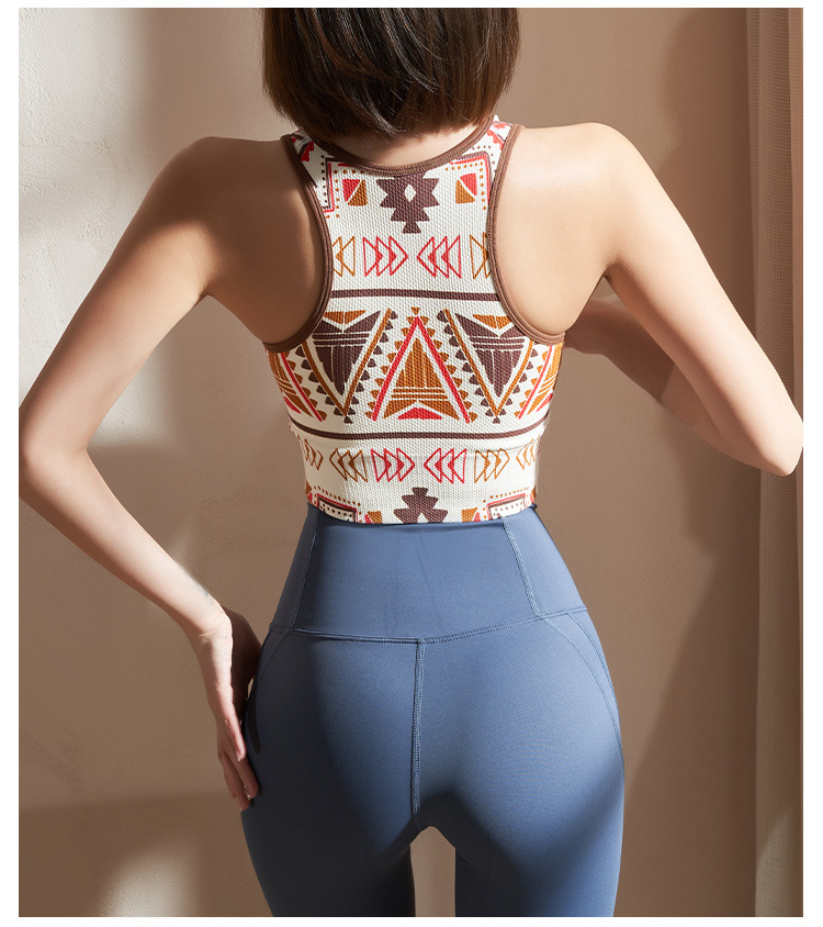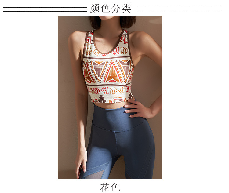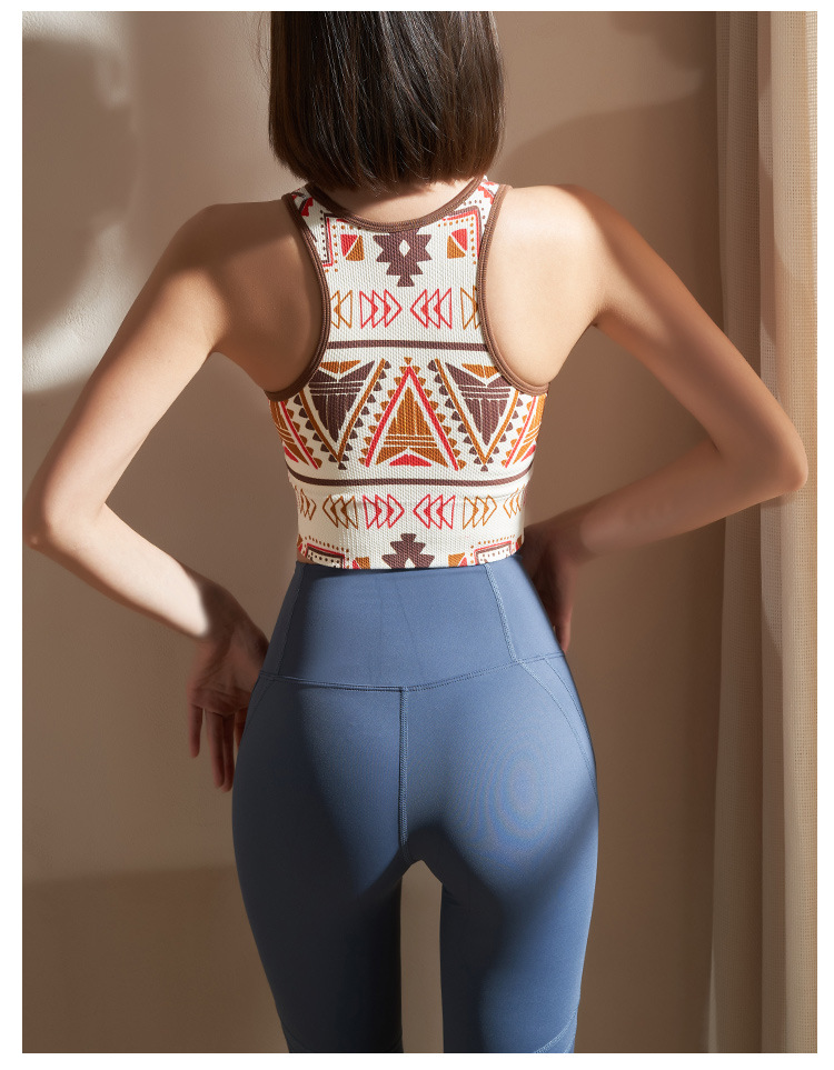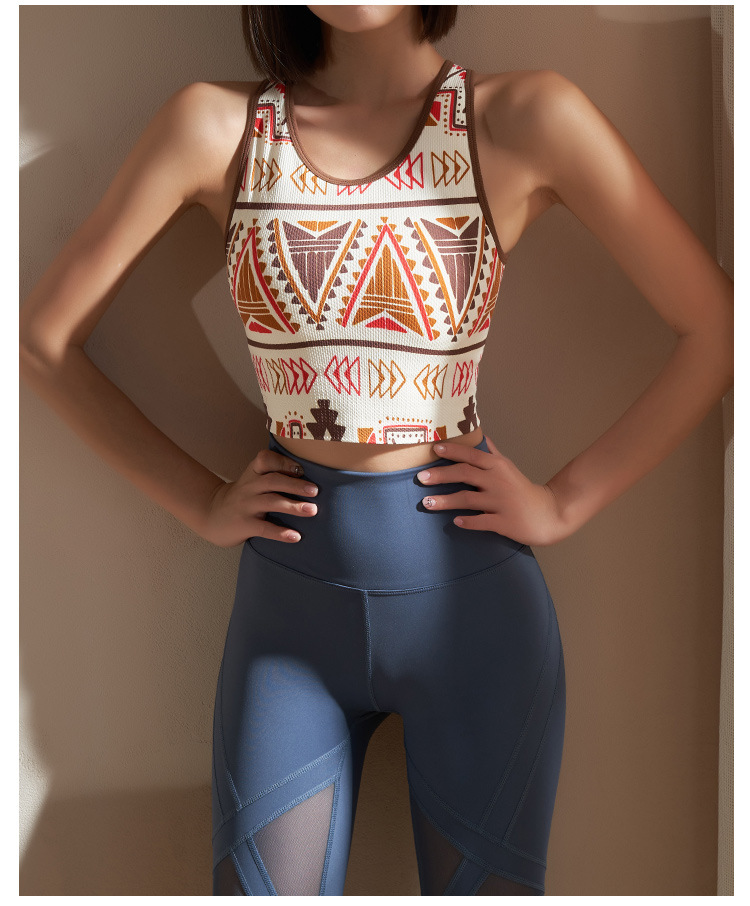 요가복 보헤미안 고정형 가슴 패드 스포츠 브라 프린트 요가 조끼 여성용 속건 트레이닝 피트니스 브라