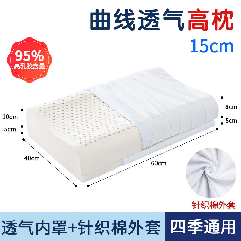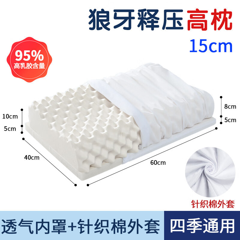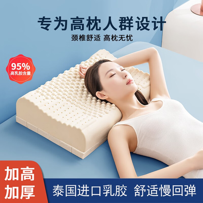 95% 태국 라텍스 베개 높은 베개 8H 수면 자궁 경부 베개 성인 단일 베개 고무 전체 머리스토어 가기