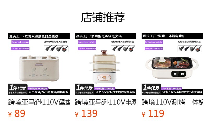 公司主要经营:电热水杯、多功能料理锅、电蒸锅、电火锅、电烤炉、电压力锅、涮烤一体锅、三明治机华夫饼机早餐机、煮蛋器、电饭煲、电热饭盒等各类厨房小家电 、生活电器的厂家,产品通过国家3c认证,坚持以“让客户满意,为客户赢利”为服务宗旨,可提供OEM/ODM服务、团购礼品/定制logo、支持国内外各电商平台一件代发批量定制采购,专用英文包装.英文说明书 ,资质认证齐全,出口外贸/跨境电商专供,欢迎新老客户咨询洽谈。