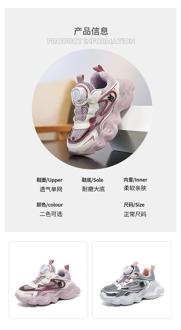 Babudou 아동 신발 소녀 스포츠 신발 2025 여름 새로운 메쉬 통기성 어린이 아빠 신발 단일 메쉬 소녀 신발스토어 가기
