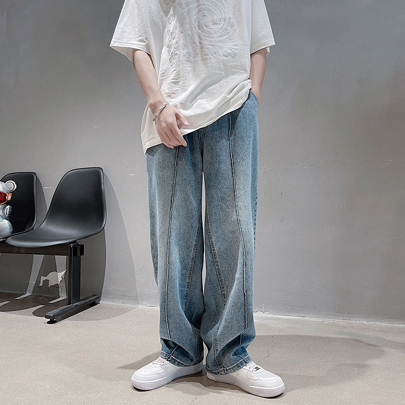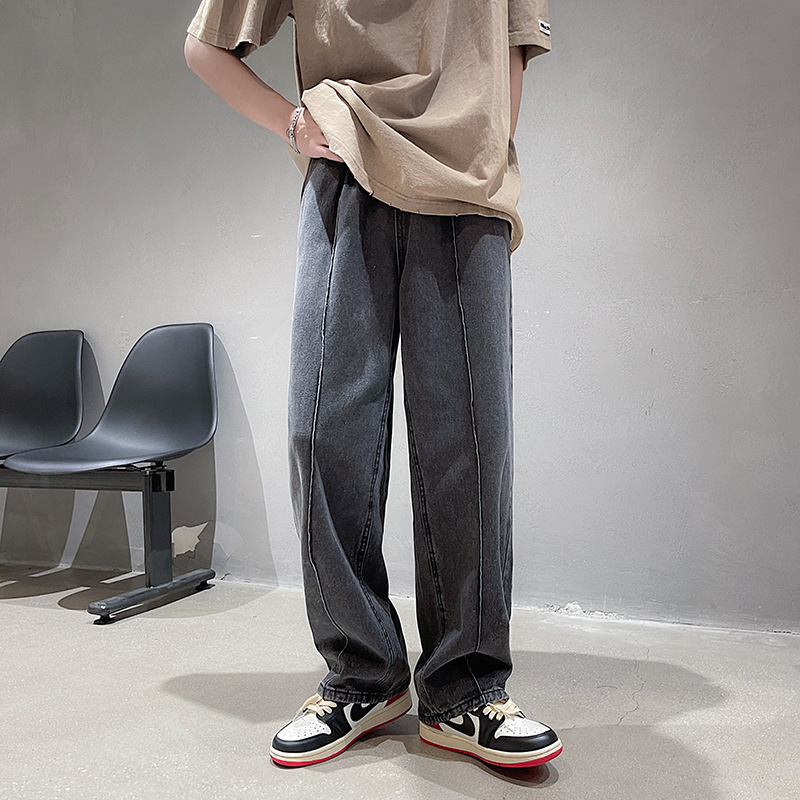 봄, 가을 남성용 와이드 레그 루즈 청바지 일본 복고풍 트렌드 한국 스타일 다용도 캐주얼 바닥 길이 바지스토어 가기