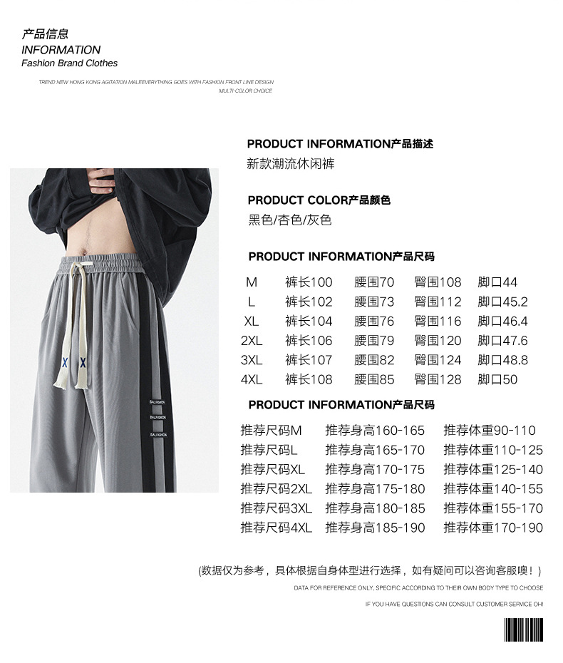 넓은 다리 바지 남자 봄과 가을 얇은 느슨한 스트레이트-다리 스포츠 바지 남자 캐주얼 바지 핸스름 아메리칸 스타일 바지스토어 가기