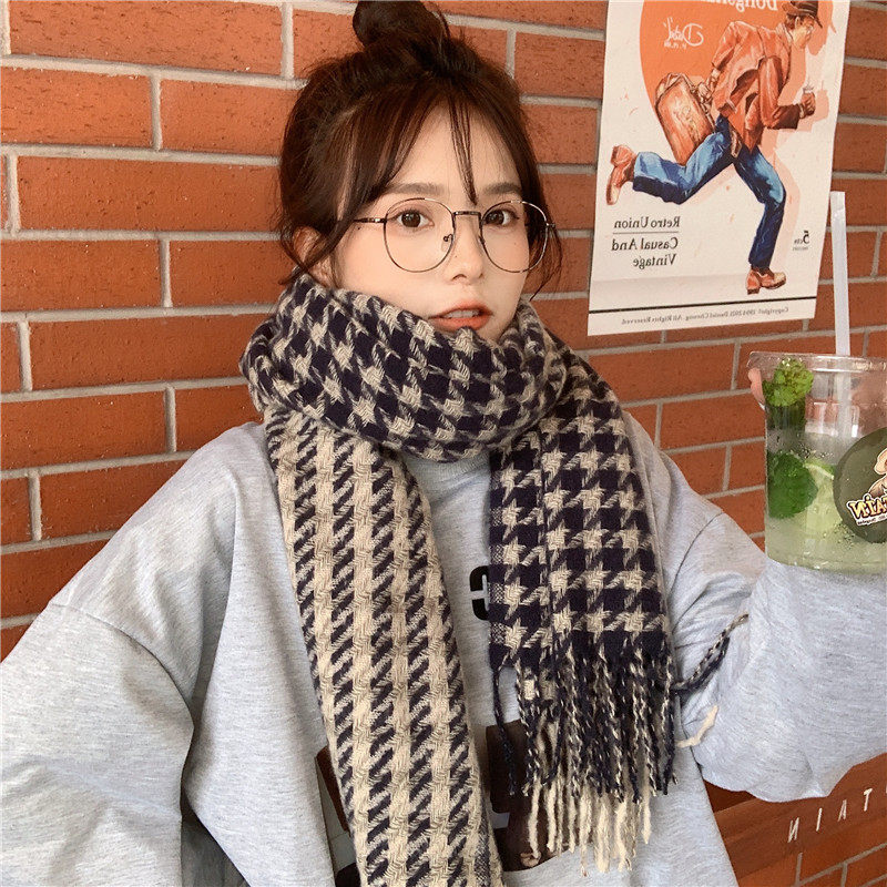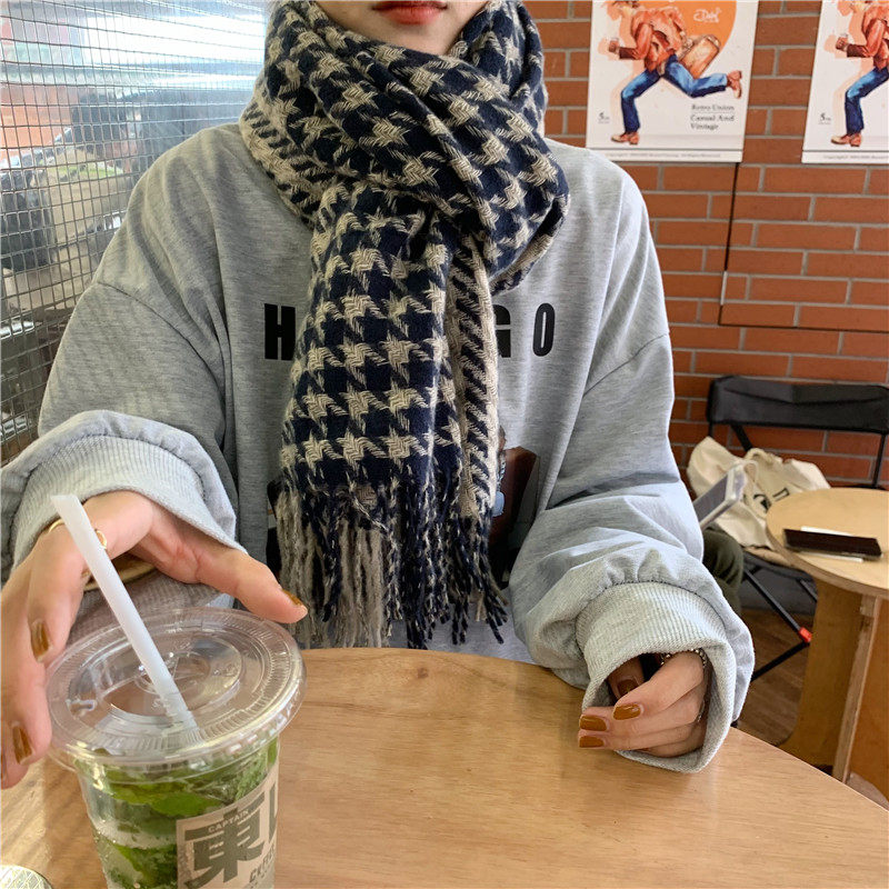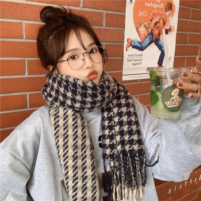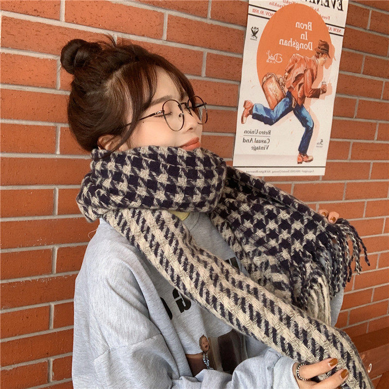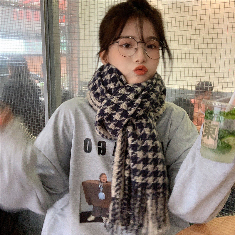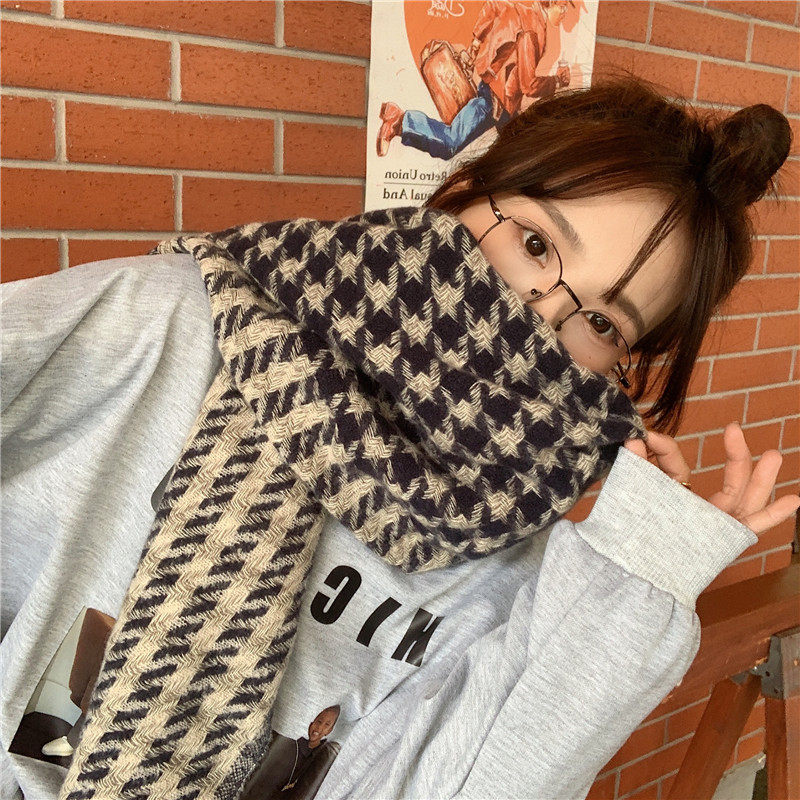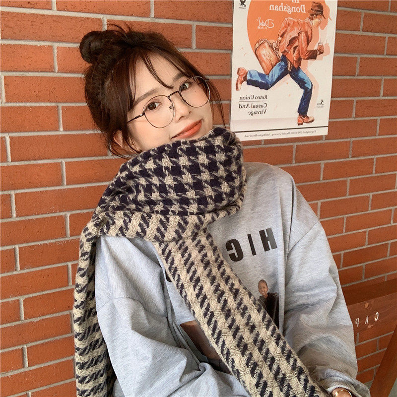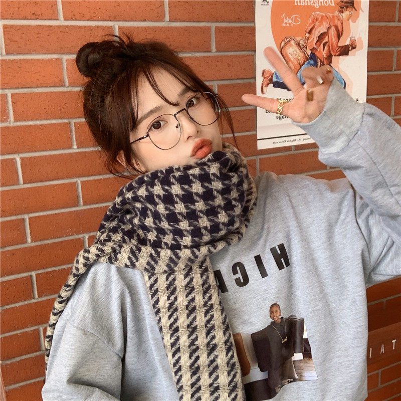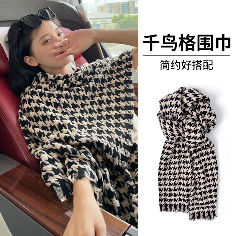 Houndstooth Pig Ins 스카프 여자 가을 겨울 2024 새로운 한국식 올매치 학생 목도리 남자 따뜻한 목 트렌디스토어 가기