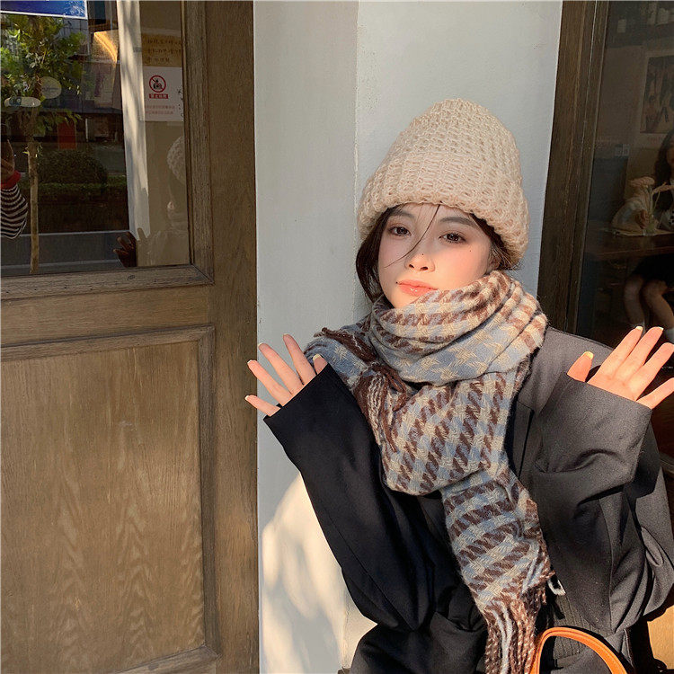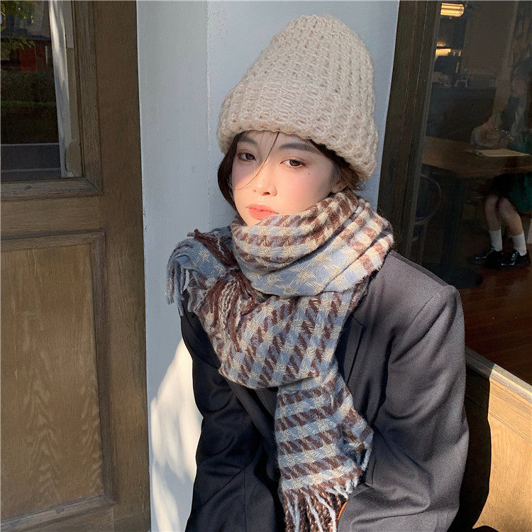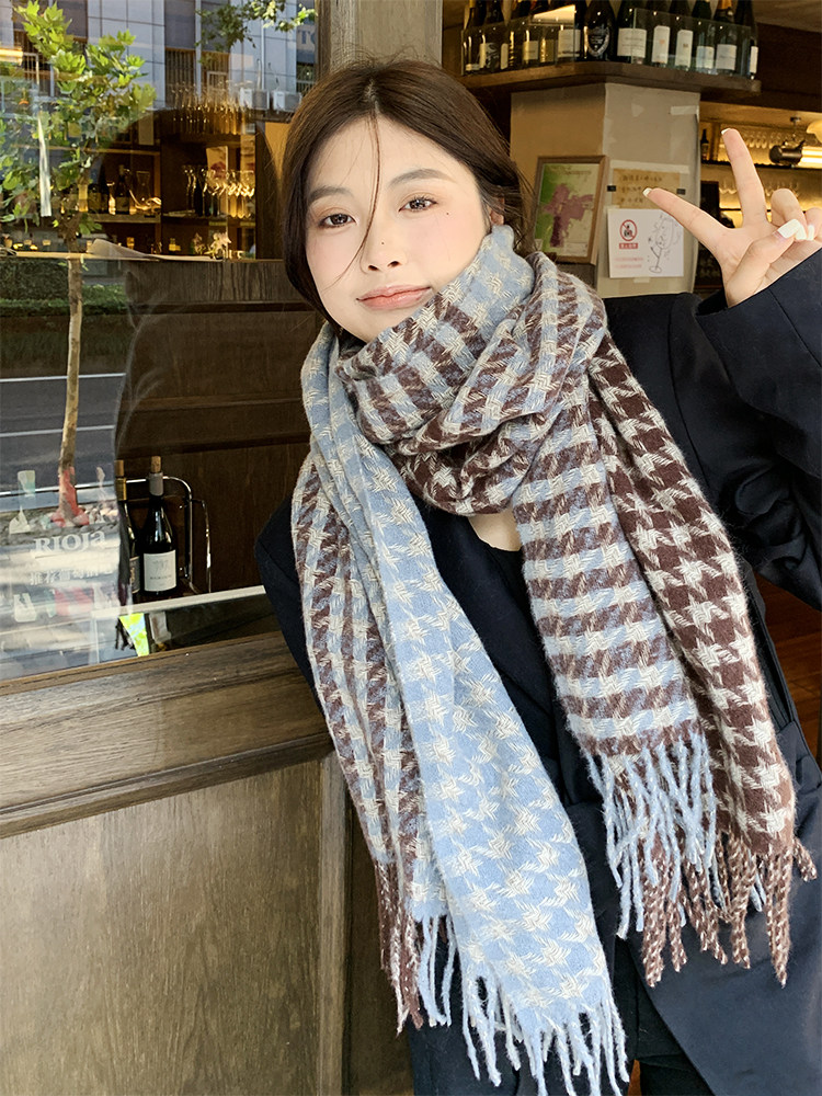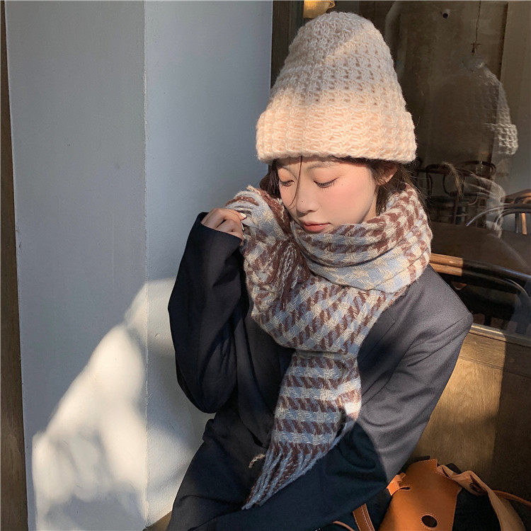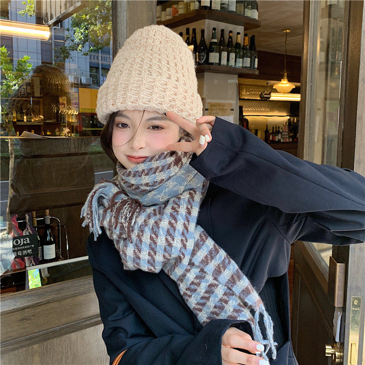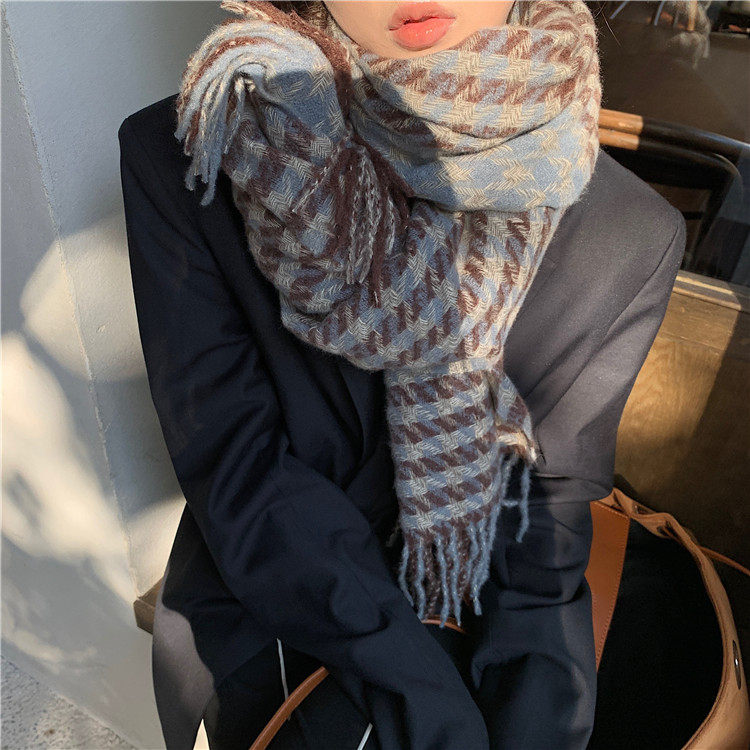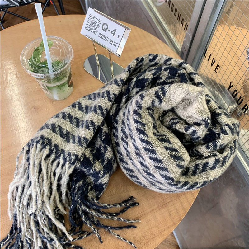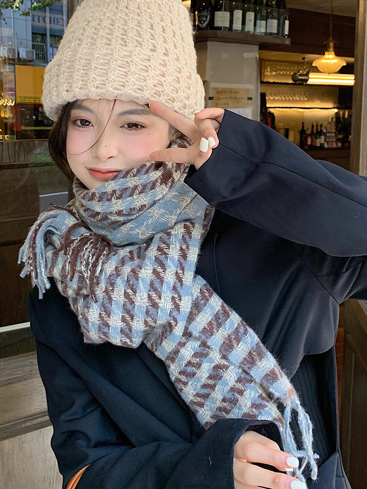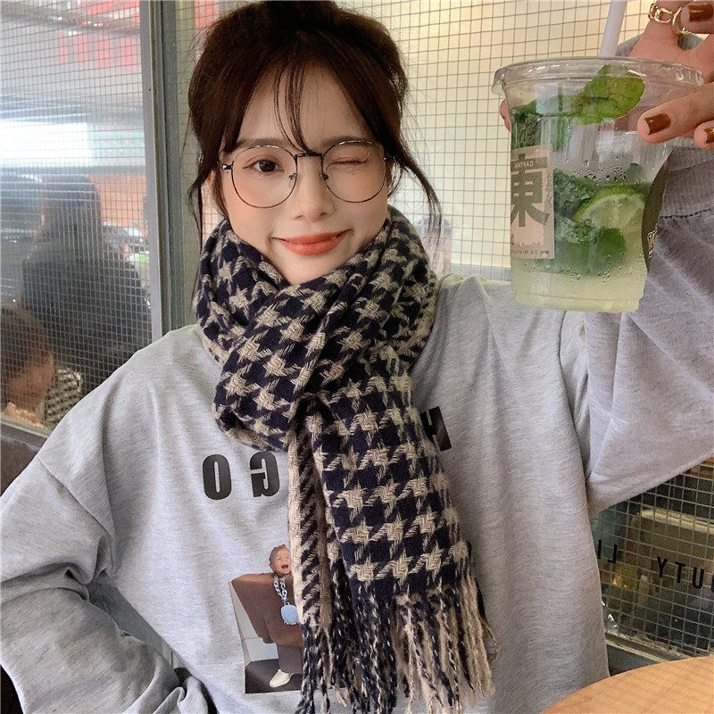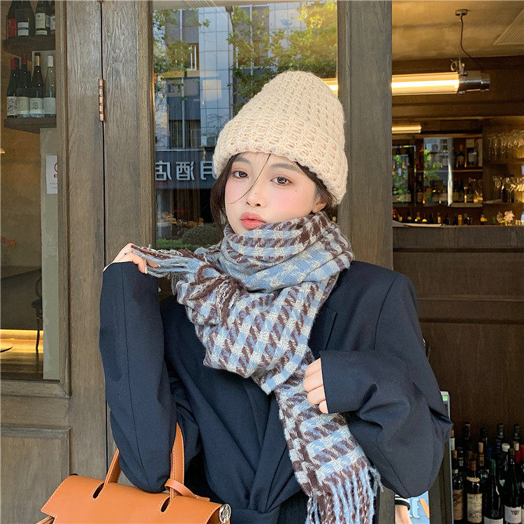 Houndstooth Pig Ins 스카프 여자 가을 겨울 2024 새로운 한국식 올매치 학생 목도리 남자 따뜻한 목 트렌디스토어 가기