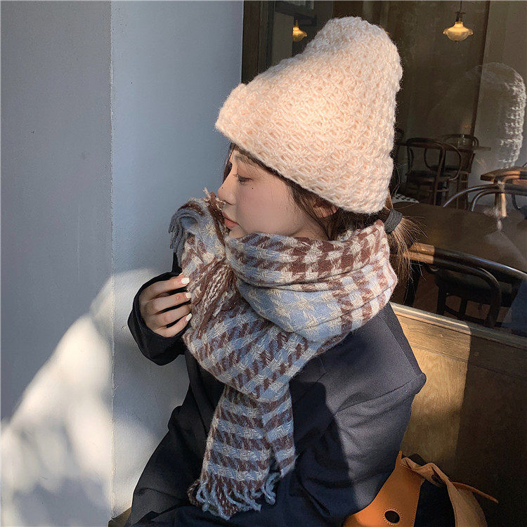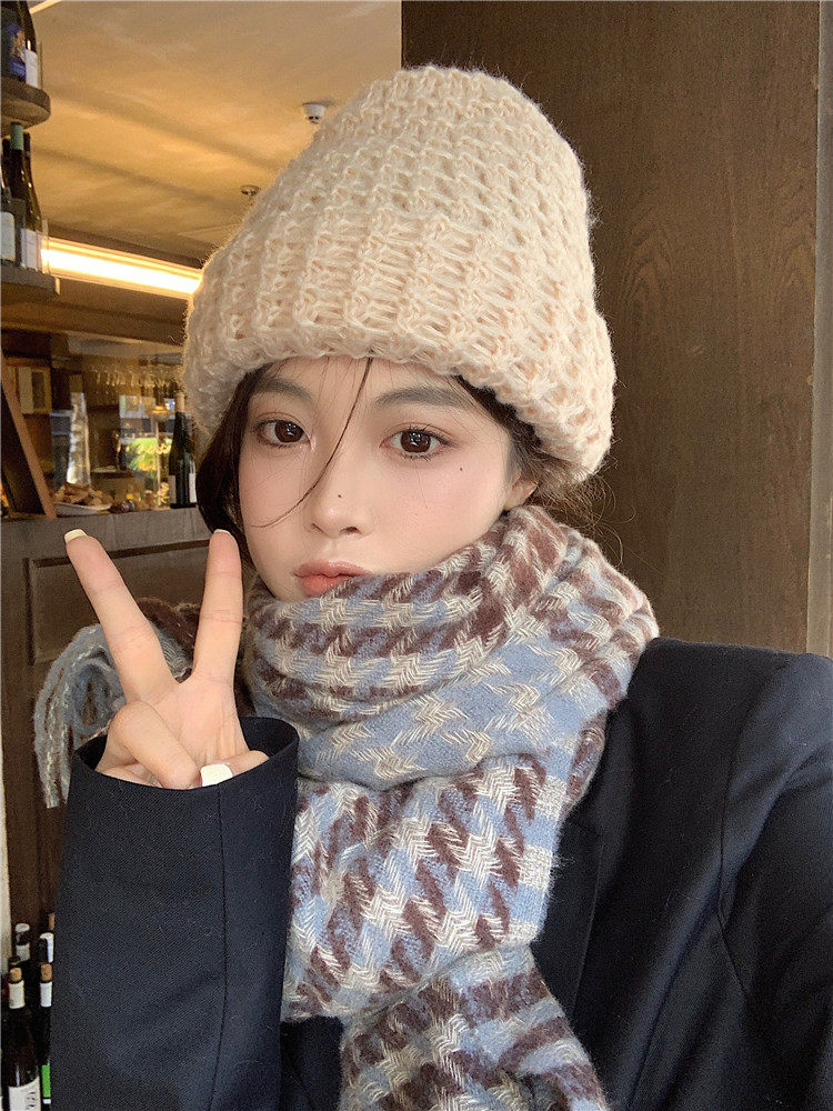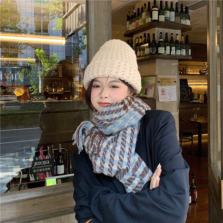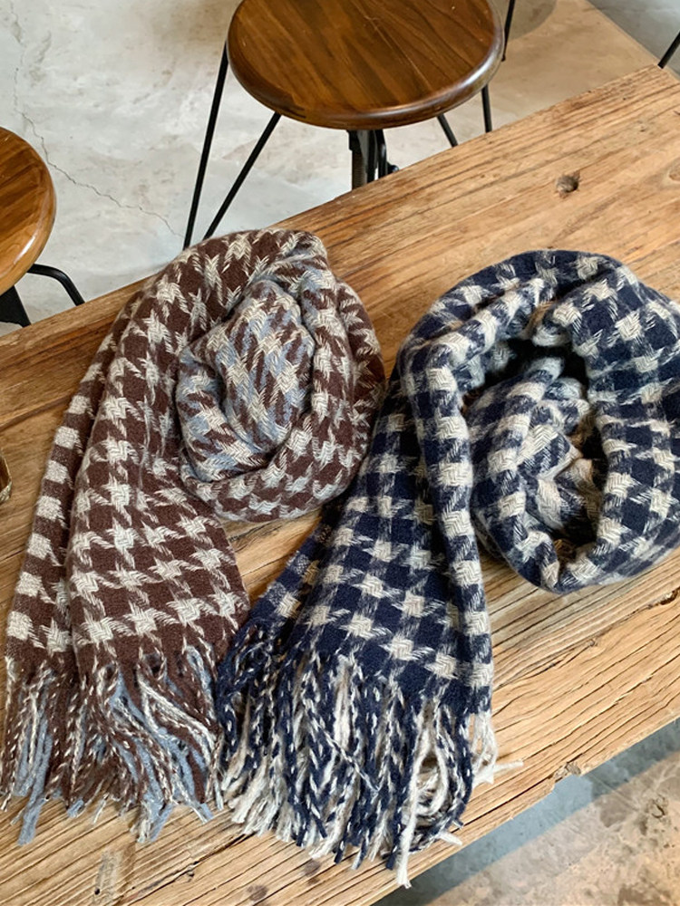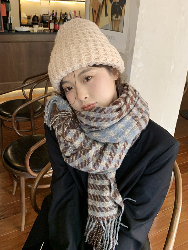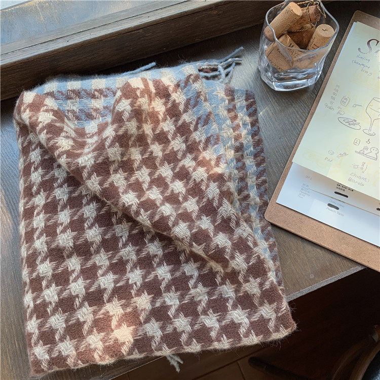 Houndstooth Pig Ins 스카프 여자 가을 겨울 2024 새로운 한국식 올매치 학생 목도리 남자 따뜻한 목 트렌디