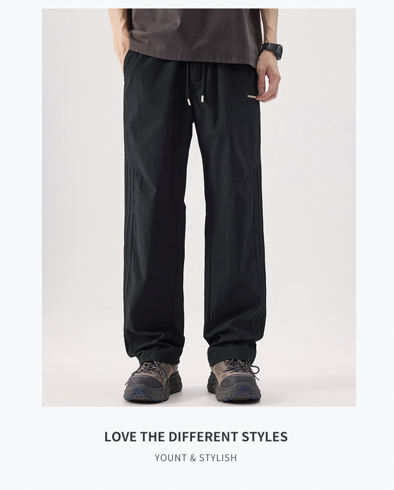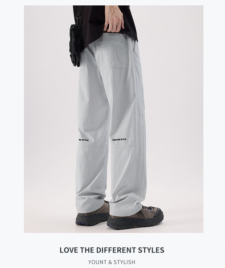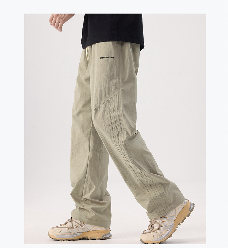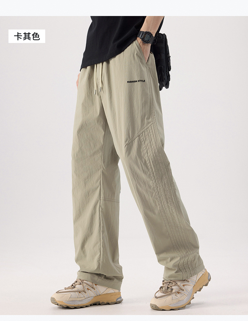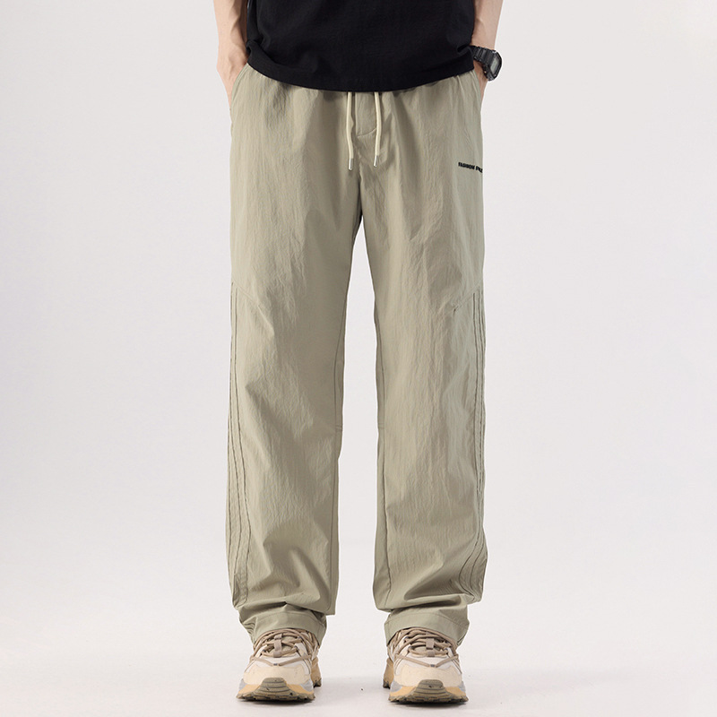여름 얼음 실크 캐주얼 바지 남성 바지 얇은 느슨한 스트레이트 야외 낙하산 바지 남성 바지 드레이프 야외 등산 바지