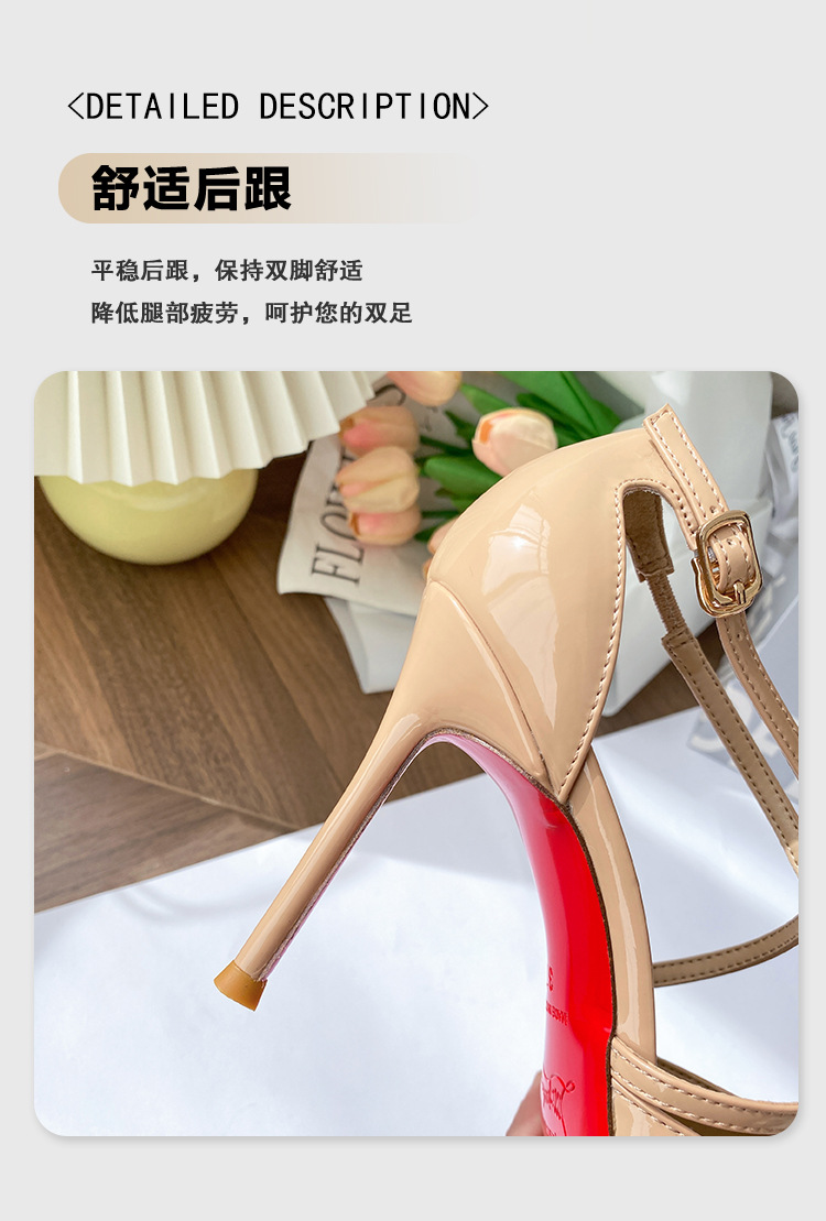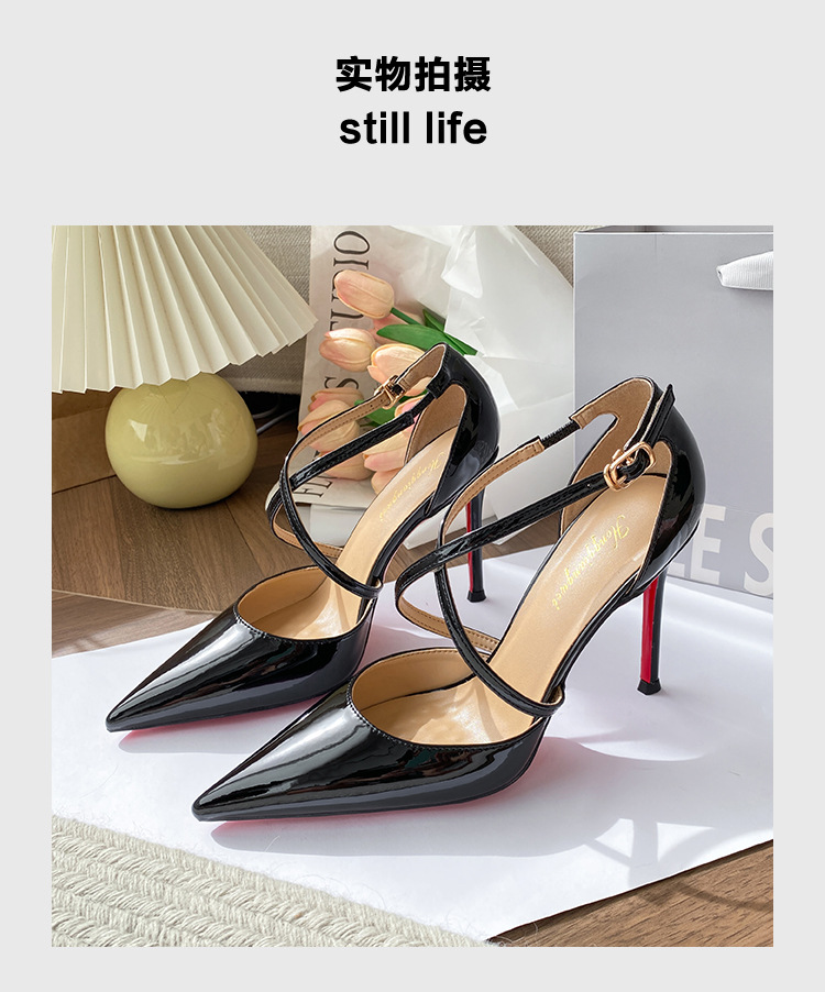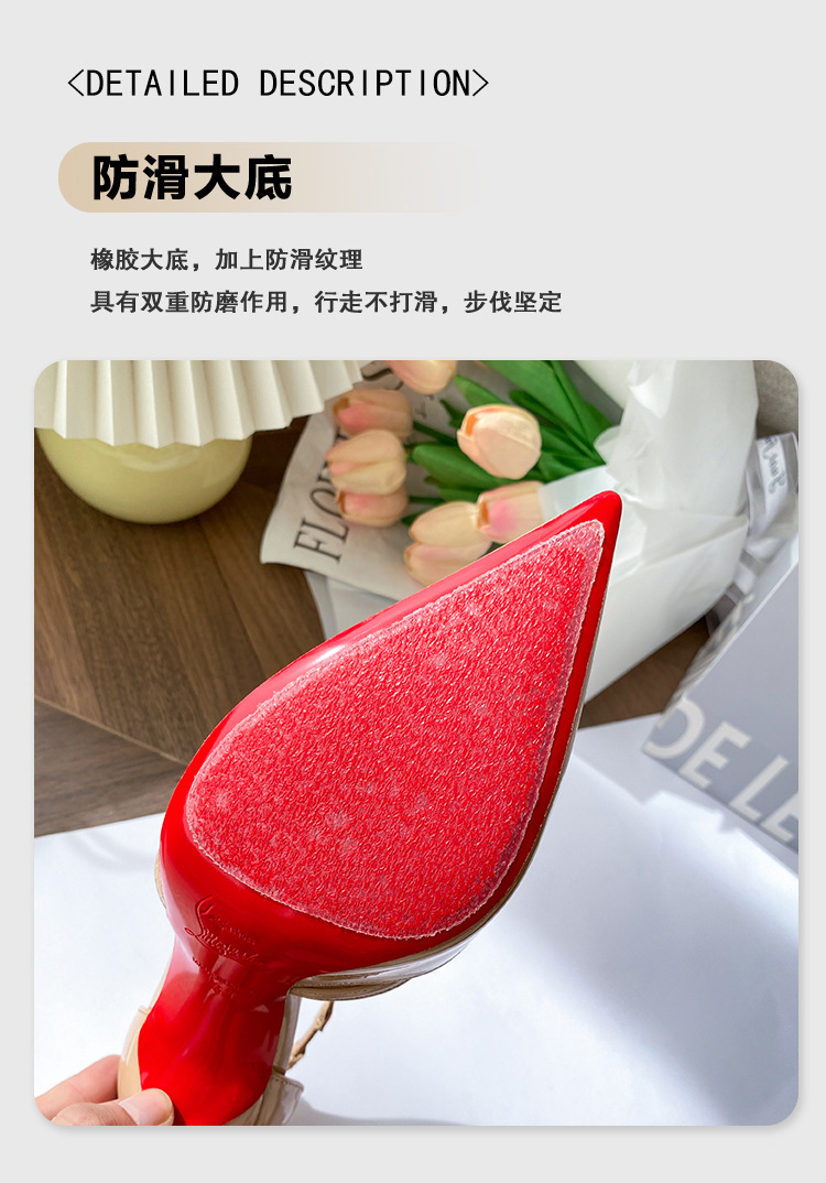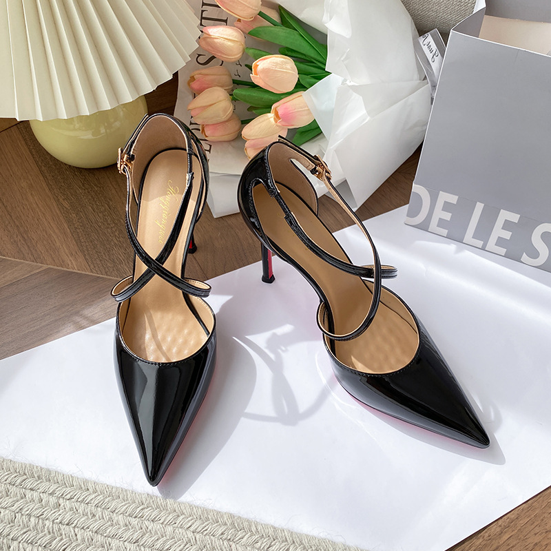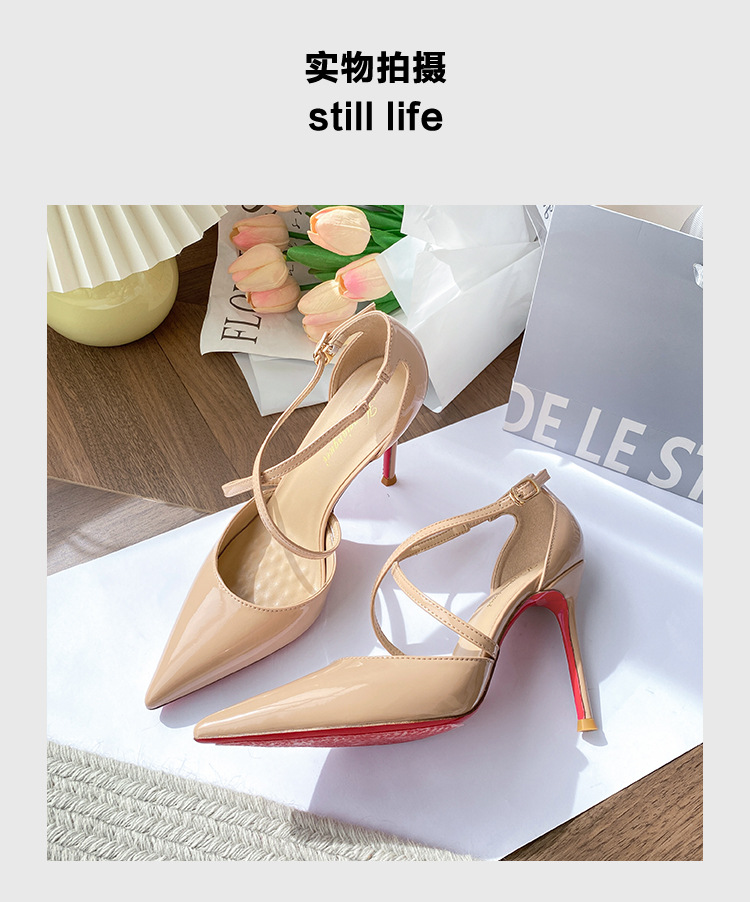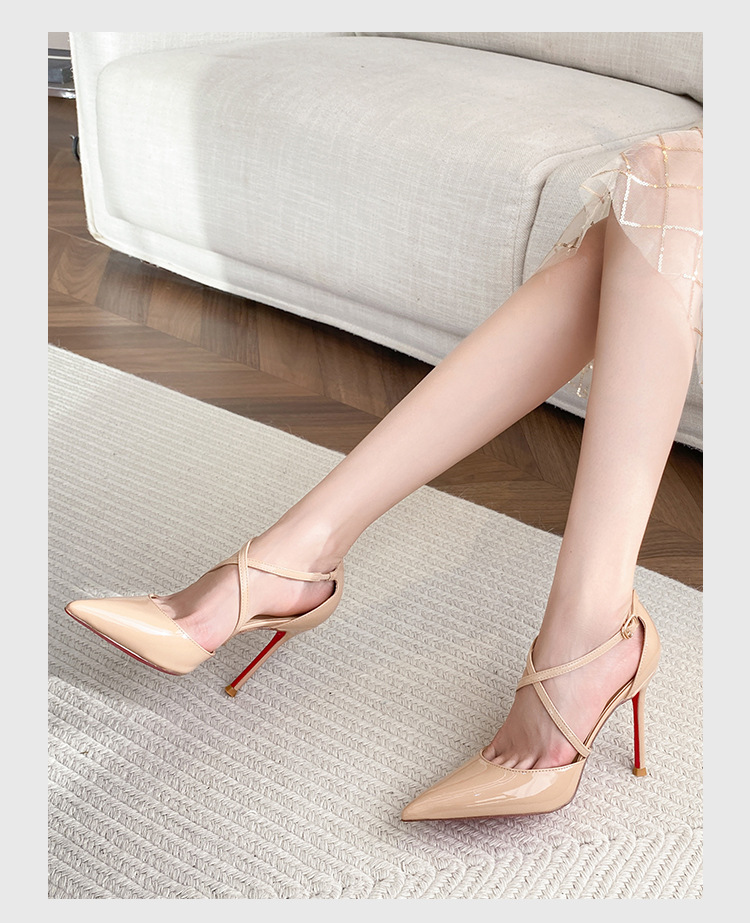 여성용 누드 하이힐, 스틸레토 힐, 2025년 신상 여름 섹시 로얄 자매 크로스 스트랩 포인티드 토 레드 바닥 샌들스토어 가기