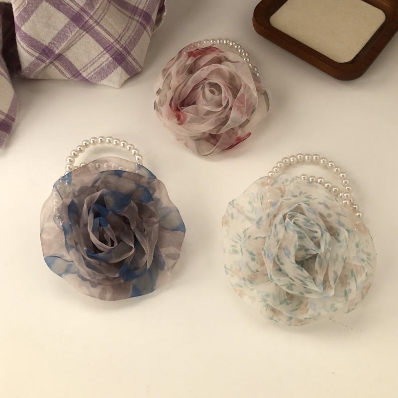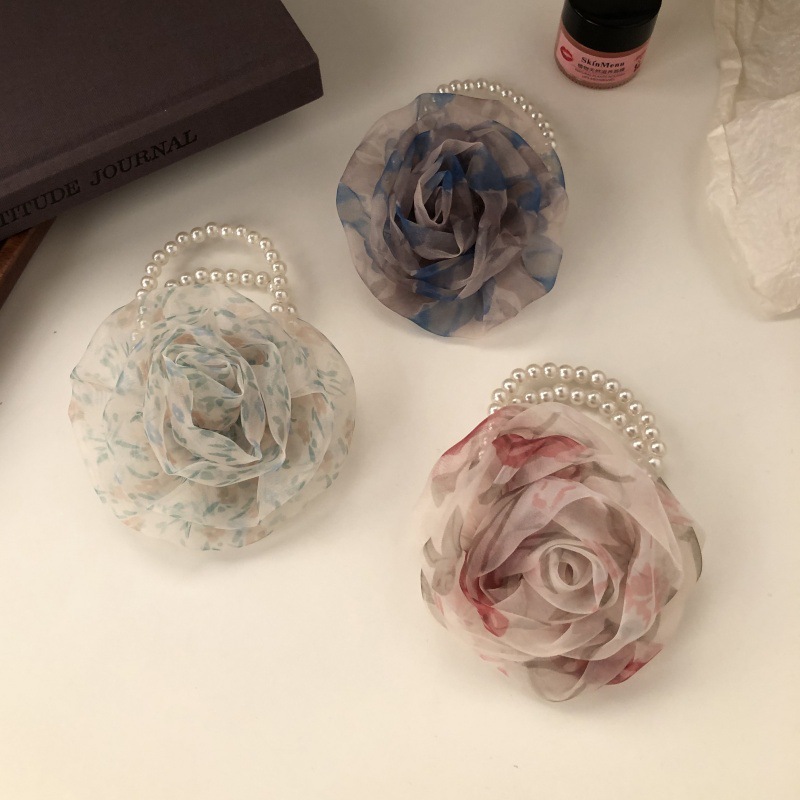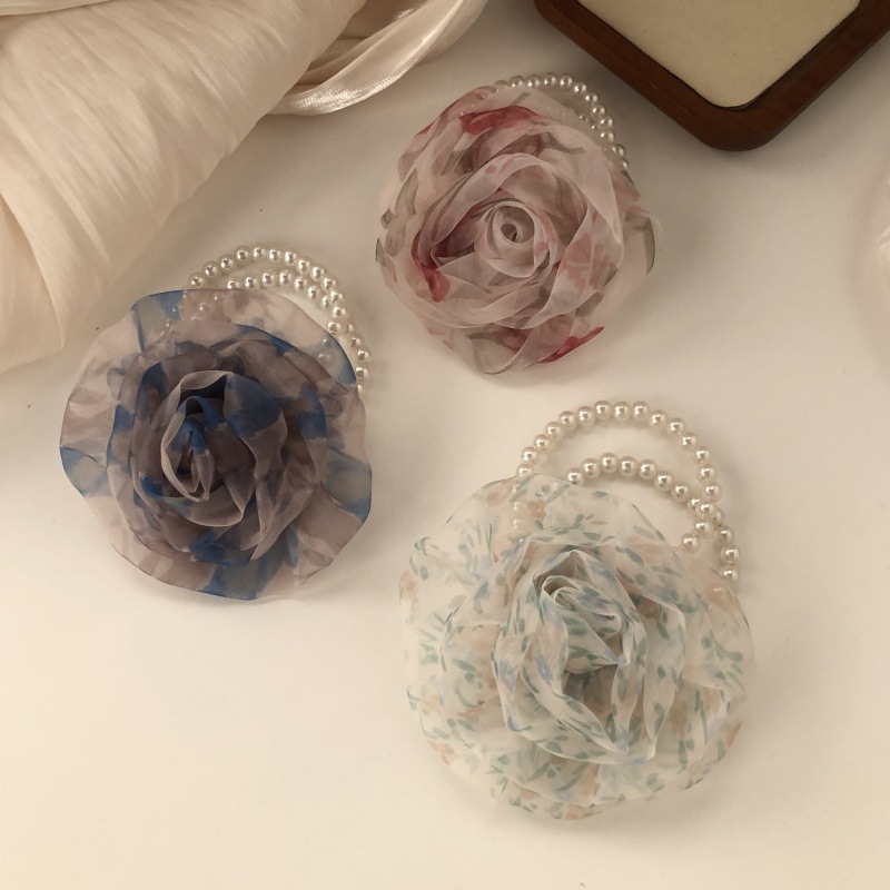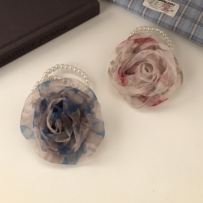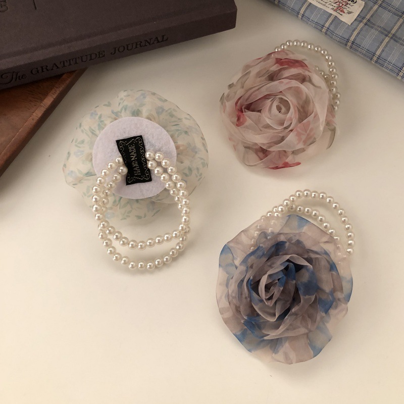 한국 스타일 메쉬 Sizzy 꽃 헤어 링 여성 하이 엔드 패션 진주 헤드 라인 세련된 분위기 헤드웨어 헤어 액세서리