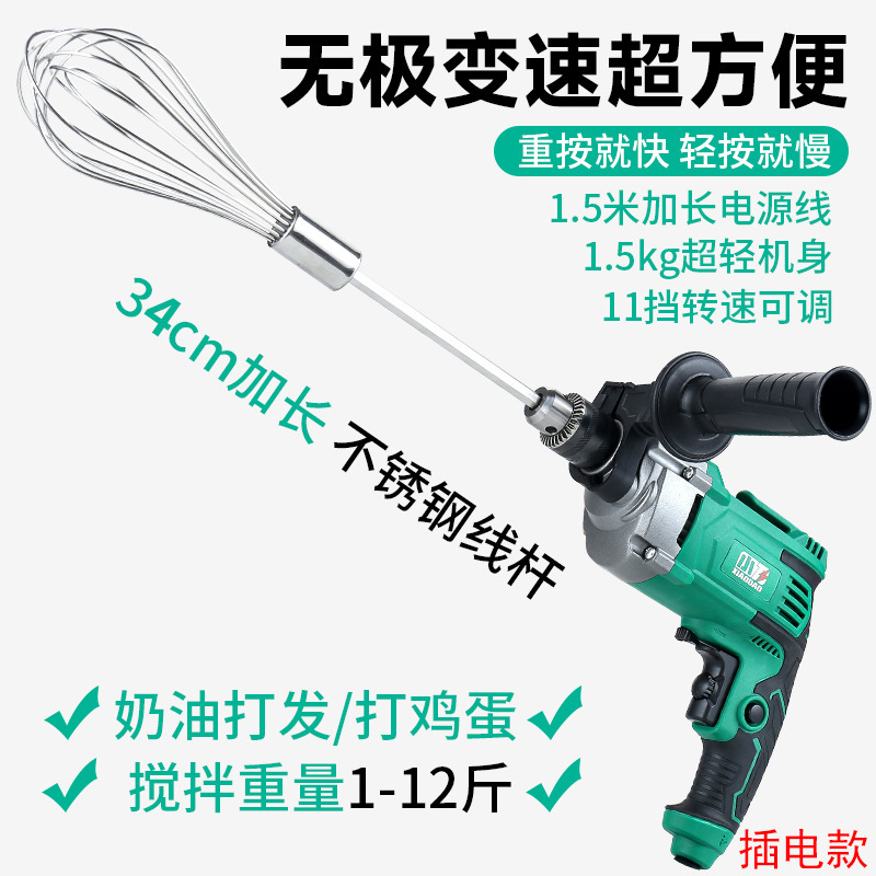 • 600W 고속(플러그인 모델) 핸드 드릴 + 스테인레스 스틸 믹싱로드 30개