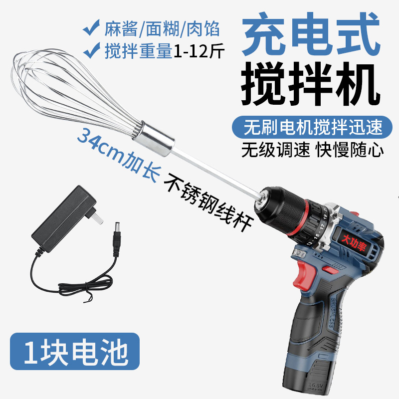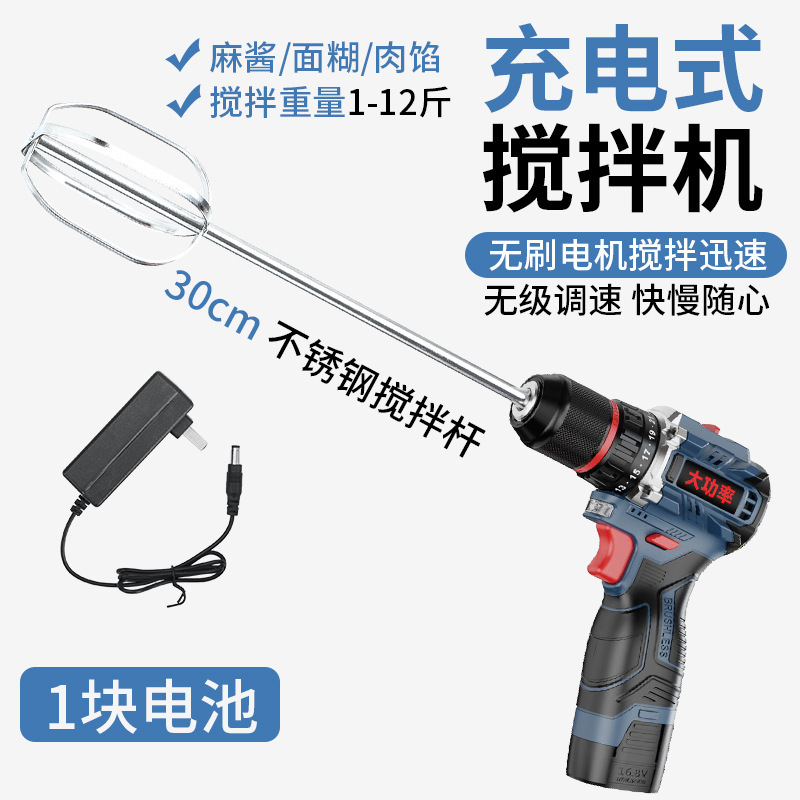 • 강력함(브러시리스 충전 모델) 배터리 1개, 충전 1개 + 30CM 믹싱봉(0.5-5kg개)