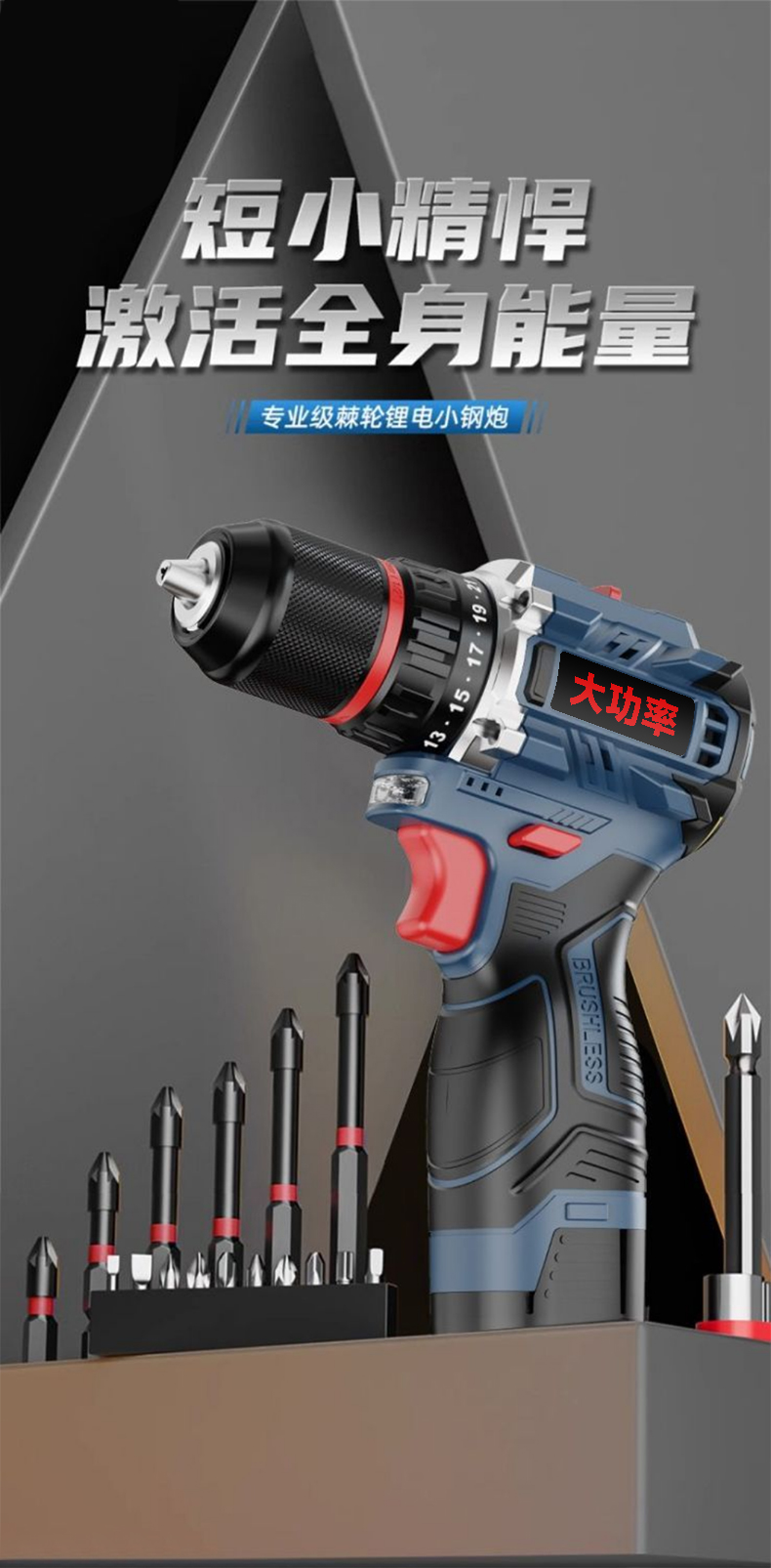 • 소형 강철 대포(브러시리스 충전 모델) + 40 스테인레스 스틸 이중 산 막대, 금속 척, 배터리 1개, 충전 1개