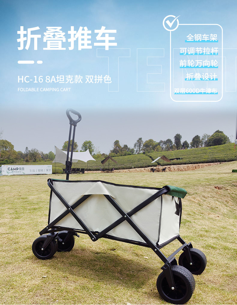 더블 컬러 매칭 8A 탱크 스타일 접이식 캠핑 트레일러 캠프 트롤리 경량 접이식 간단한 트롤리