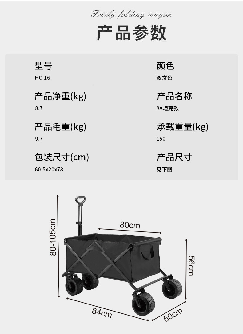 더블 컬러 매칭 8A 탱크 스타일 접이식 캠핑 트레일러 캠프 트롤리 경량 접이식 간단한 트롤리스토어 가기
