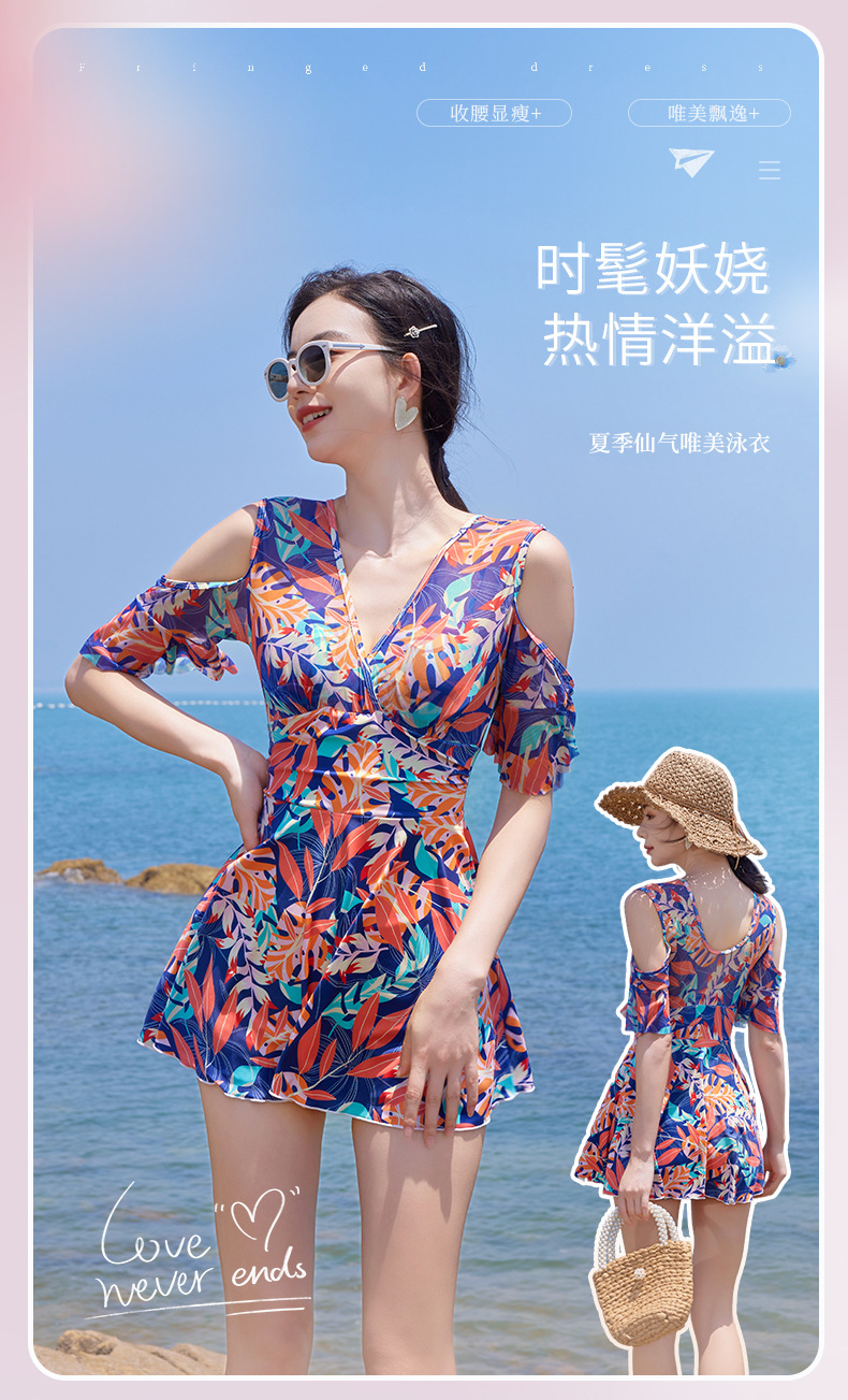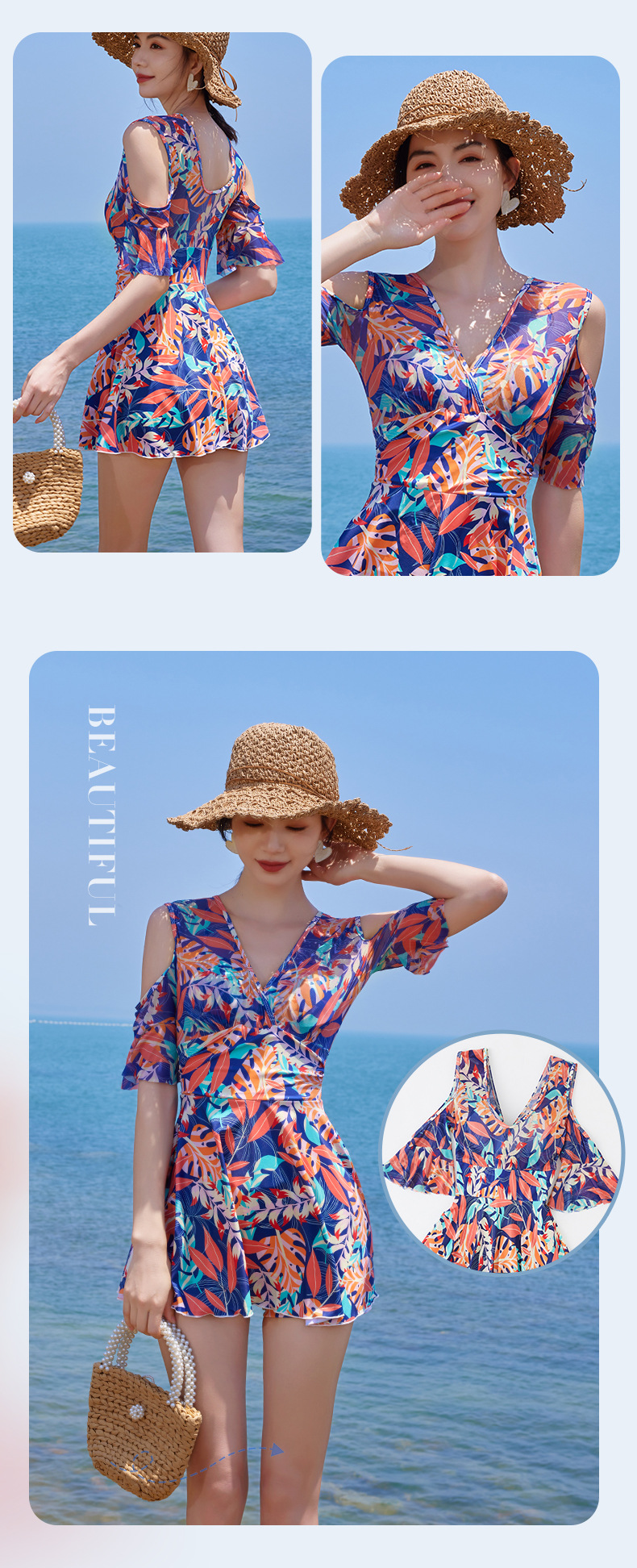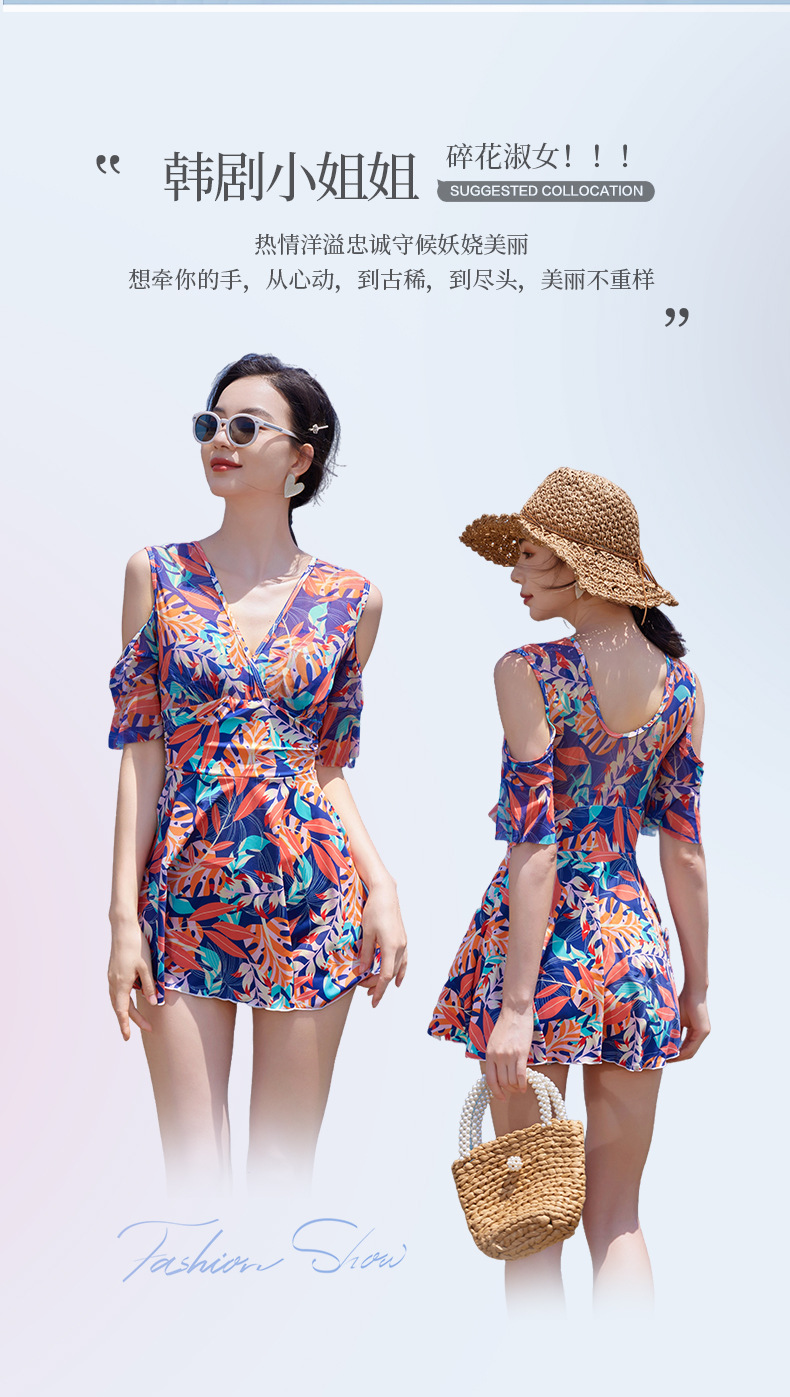 새로운 여성 수영복, 섹시한 작은 꽃무늬 원피스 수영복, 해변 해변 온천 수영복, 가슴 패드가 있는 속건성 및 편안함스토어 가기