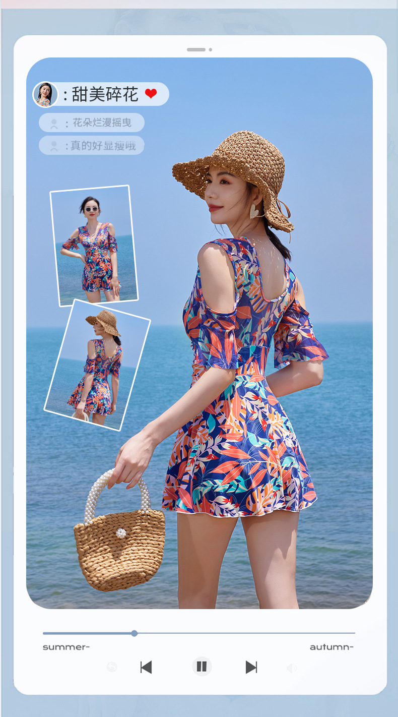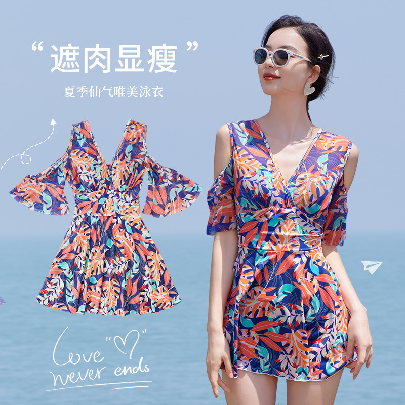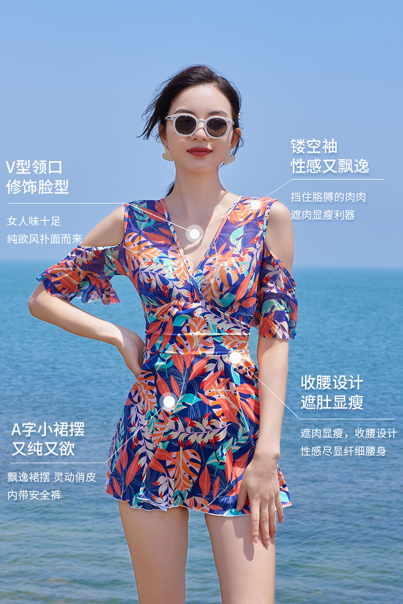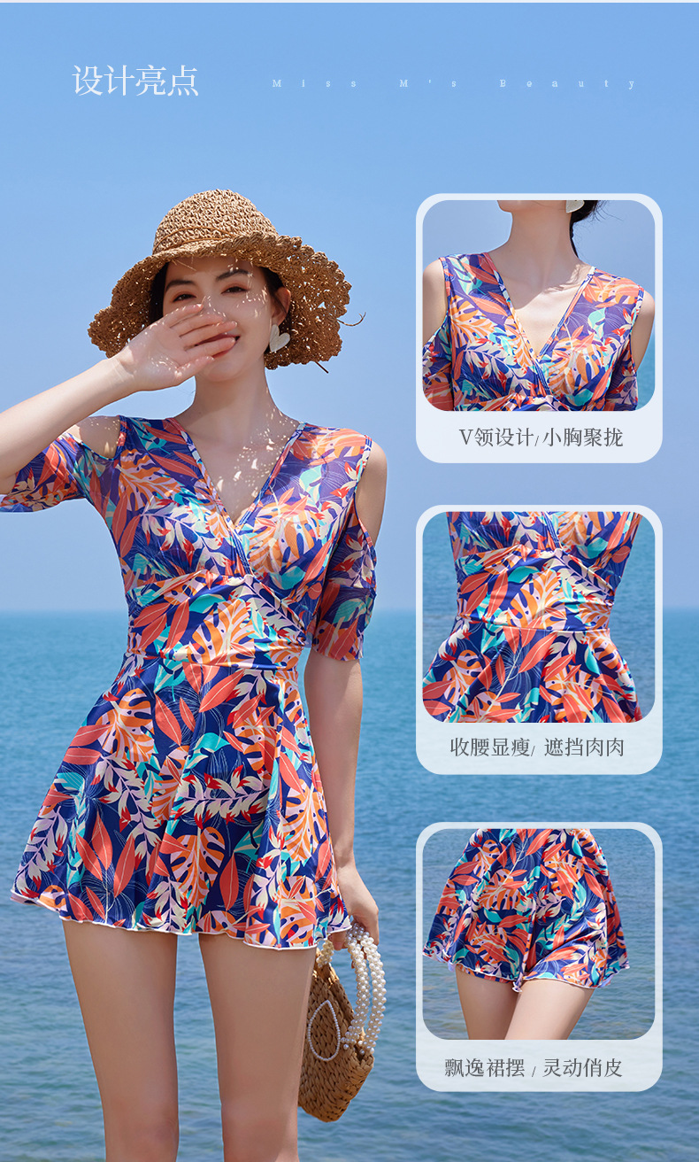 새로운 여성 수영복, 섹시한 작은 꽃무늬 원피스 수영복, 해변 해변 온천 수영복, 가슴 패드가 있는 속건성 및 편안함스토어 가기