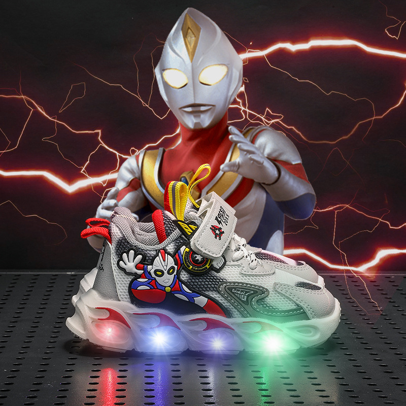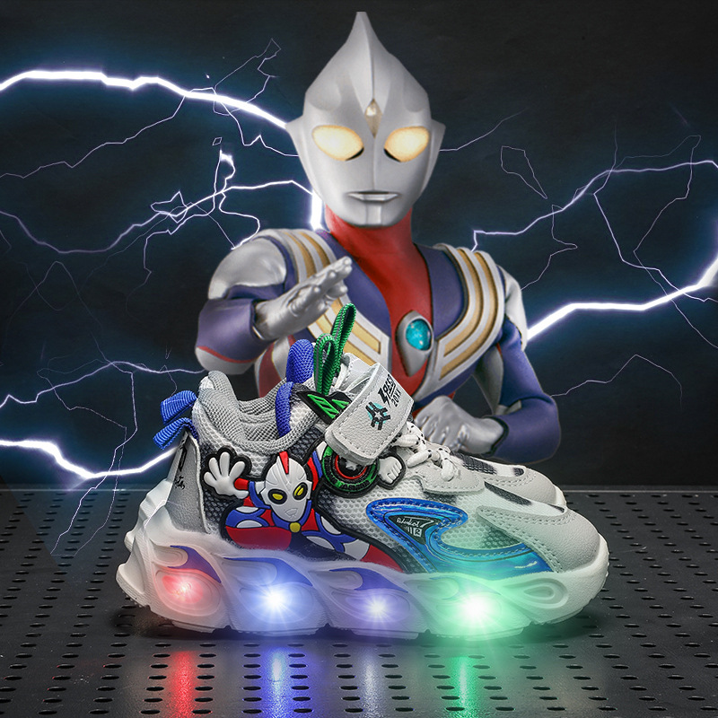 2023 봄과 여름 메쉬 어린이 신발 어린이 캐주얼 신발 빛 빛나는 스포츠 신발 더블 메쉬 소년 울트라 맨 신발스토어 가기