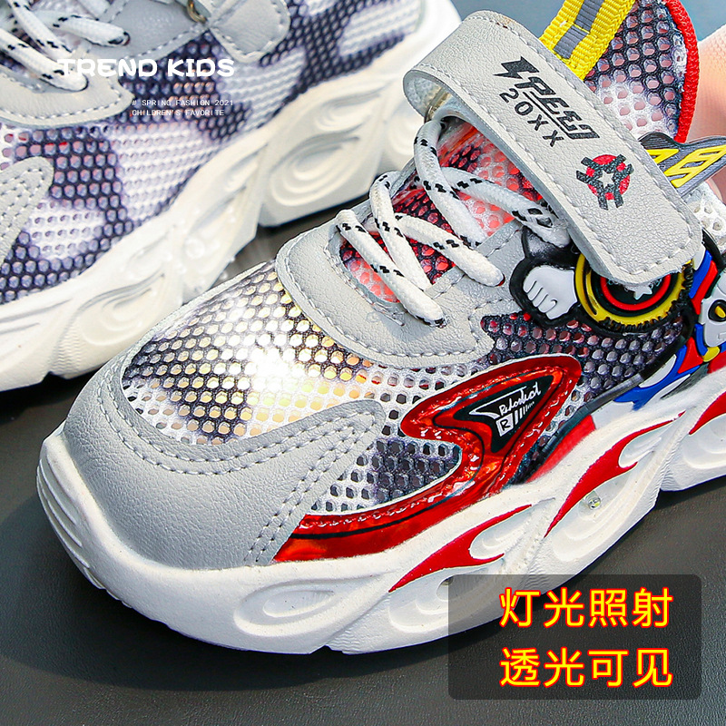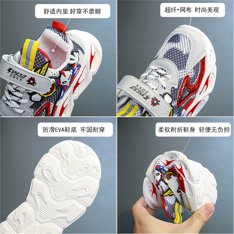 2023 봄과 여름 메쉬 어린이 신발 어린이 캐주얼 신발 빛 빛나는 스포츠 신발 더블 메쉬 소년 울트라 맨 신발
