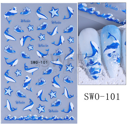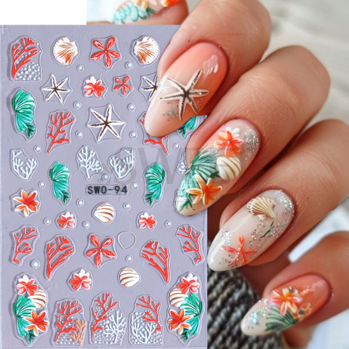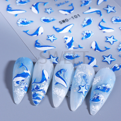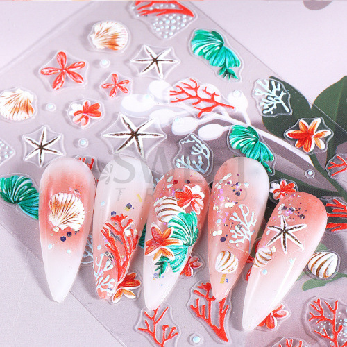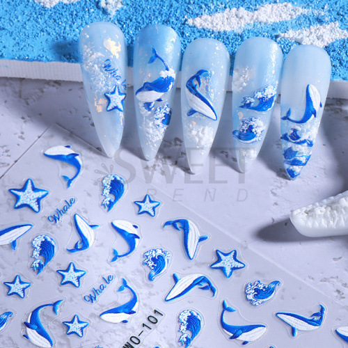 국경 간 뉴 네일 아트 스티커 Ins 여름 바다 고래 껍질 불가사리 바다 잔디 꽃 접착제 네일 스티커스토어 가기