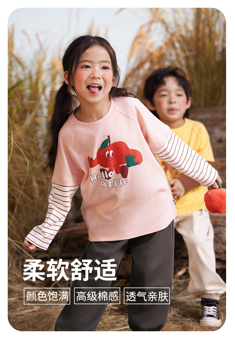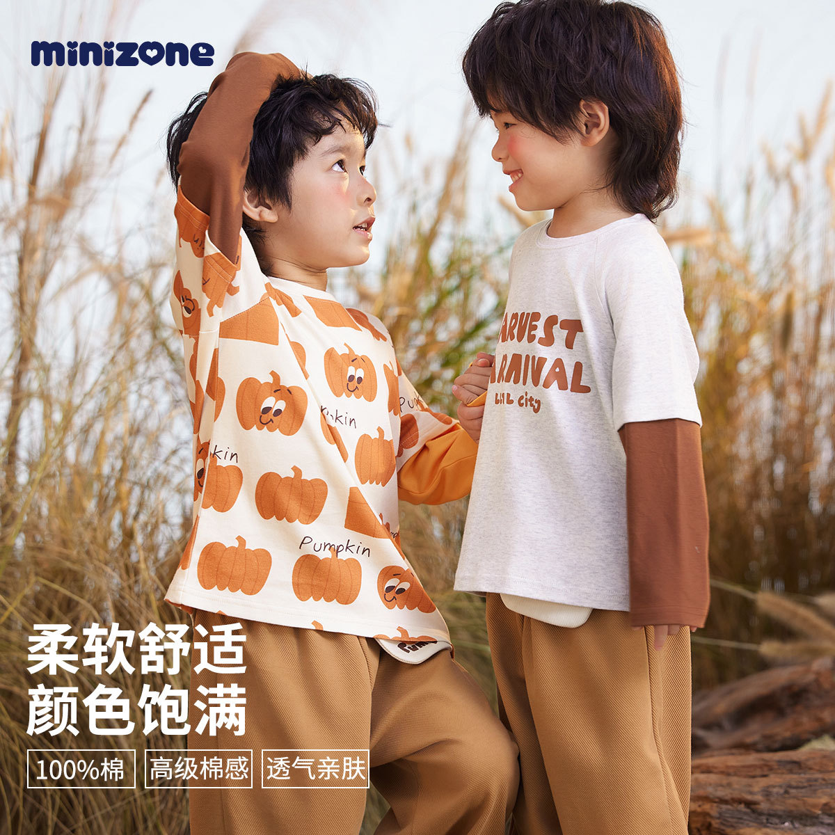 Minizone 어린이 최고의 봄 새 소년과 소녀 긴 소매 티셔츠 면 가짜 투피스 베이스 셔츠 크루 넥 티셔츠스토어 가기