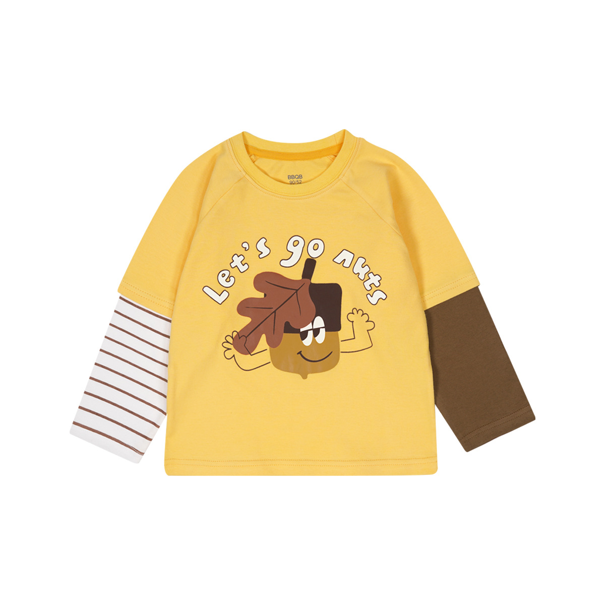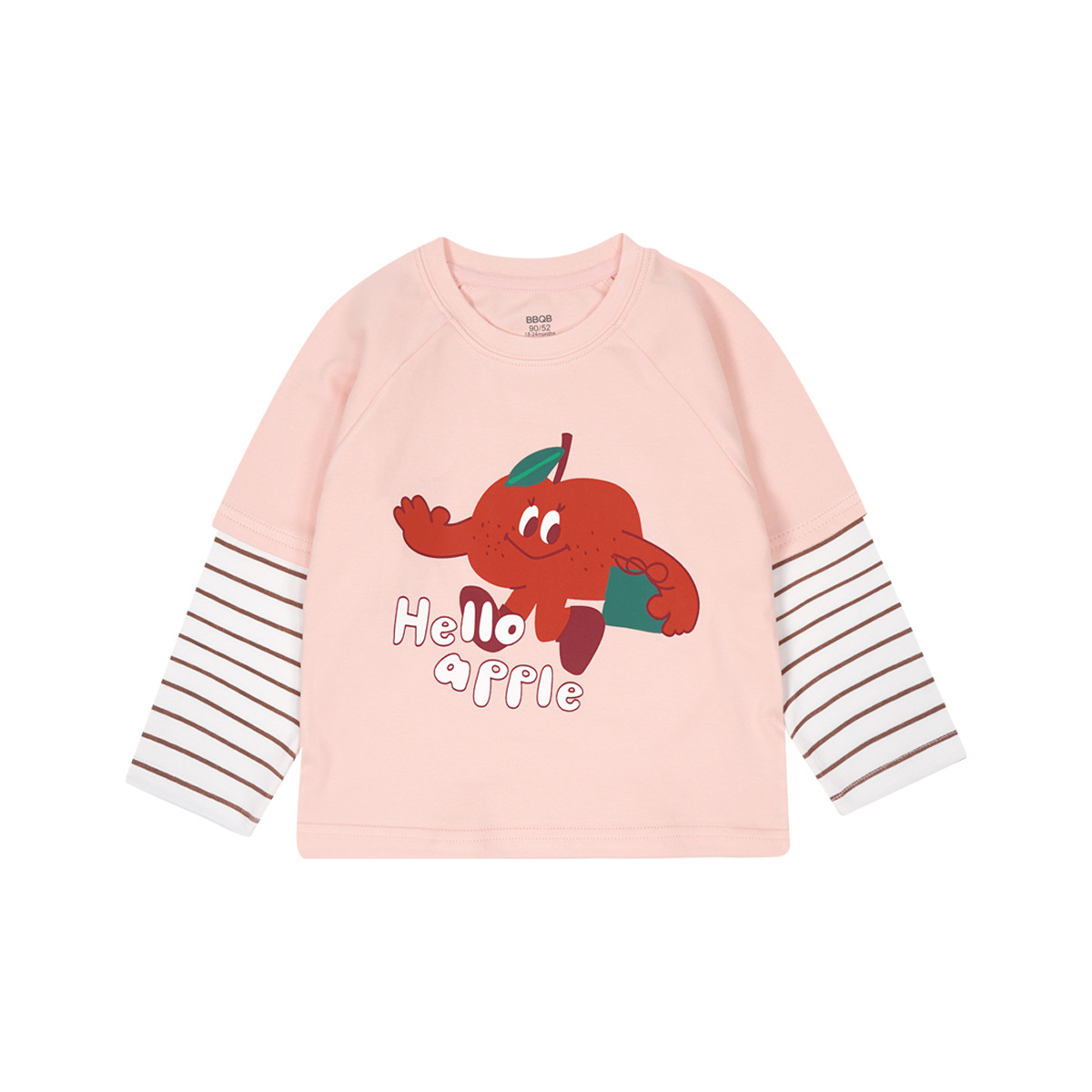 Minizone 어린이 최고의 봄 새 소년과 소녀 긴 소매 티셔츠 면 가짜 투피스 베이스 셔츠 크루 넥 티셔츠