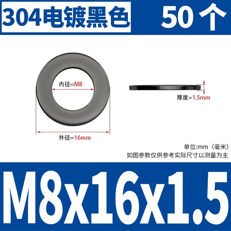 검정색 304 스테인레스 스틸 플랫 가스켓 두꺼운 가스켓 금속 미터 원형 M2M3M4M5M6M8-M30스토어 가기