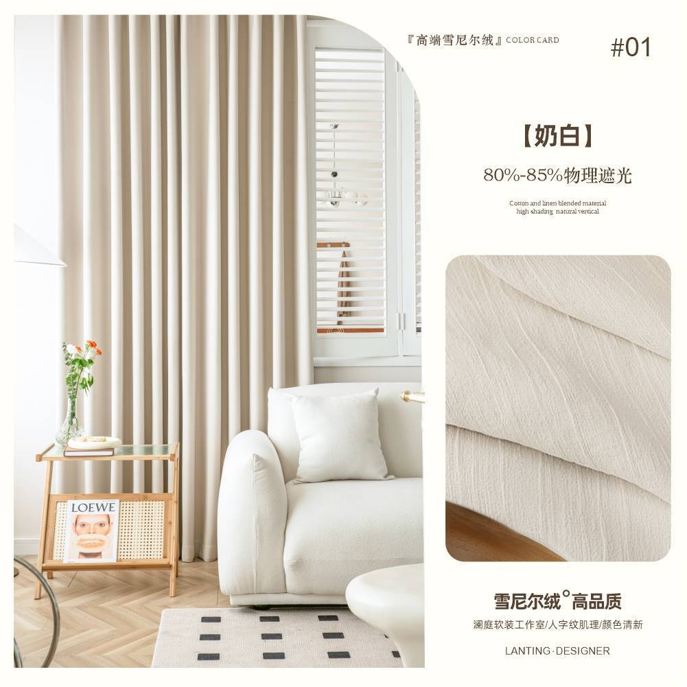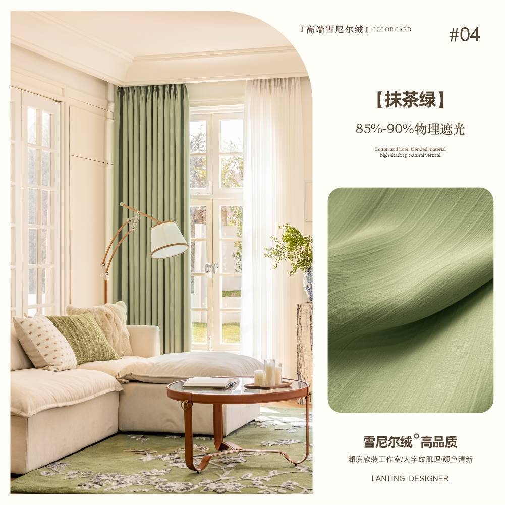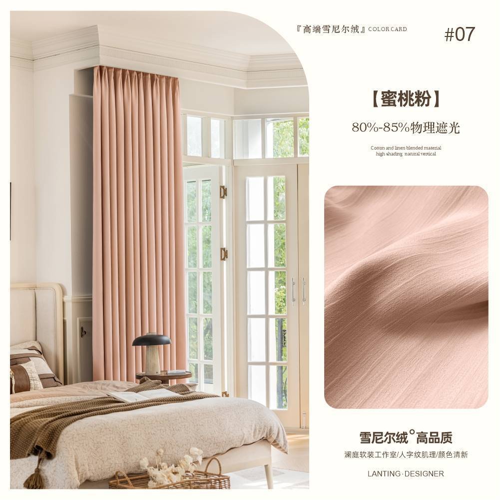 고온 성형 두꺼운 완전 차광 주름 질감 셔닐 프렌치 라이트 럭셔리 침실 및 거실 새 커튼 보내기