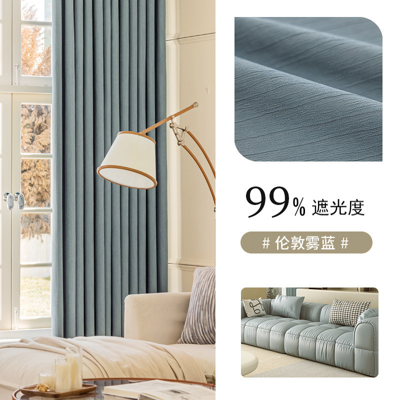 고온 성형 두꺼운 완전 차광 주름 질감 셔닐 프렌치 라이트 럭셔리 침실 및 거실 새 커튼 보내기스토어 가기