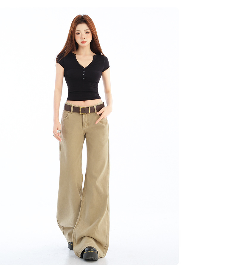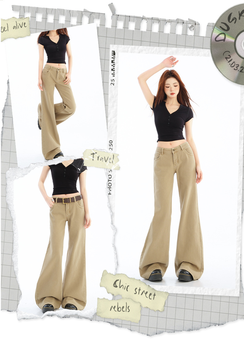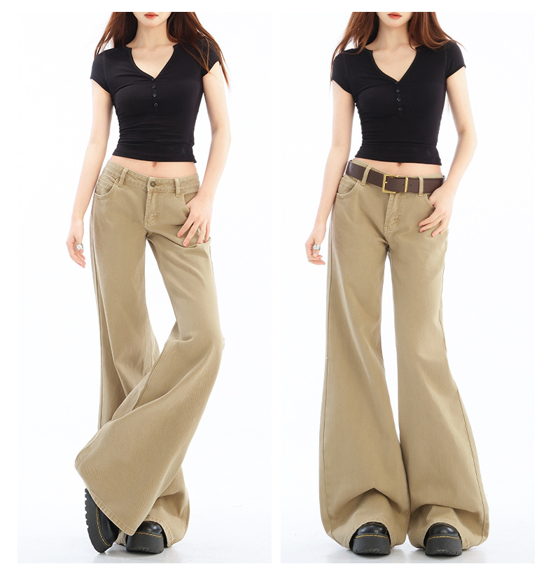 오렌지 실크 여성 의류 # 여성용 카키 부츠컷 청바지 2025 가을 아메리칸 레트로 로우 웨이스트 슬림 플레어 팬츠
