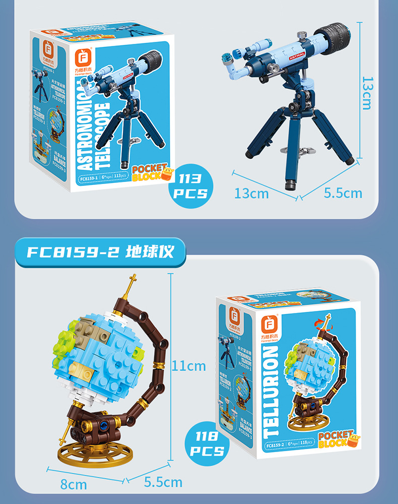 • 천체 망원경(Fangcheng 8159-1) 기어를 연결할 수 있습니다.