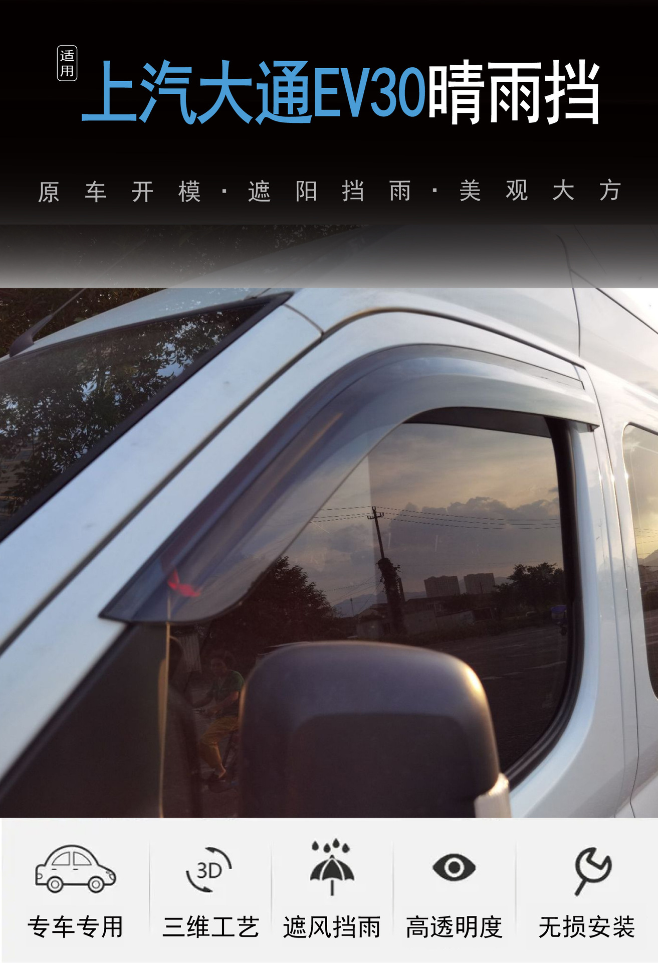 2019-2024 SAIC Maxus EV30 창 차단 및 비 차단 아크릴 자동차 비 차단용 국경 간 적용 가능스토어 가기