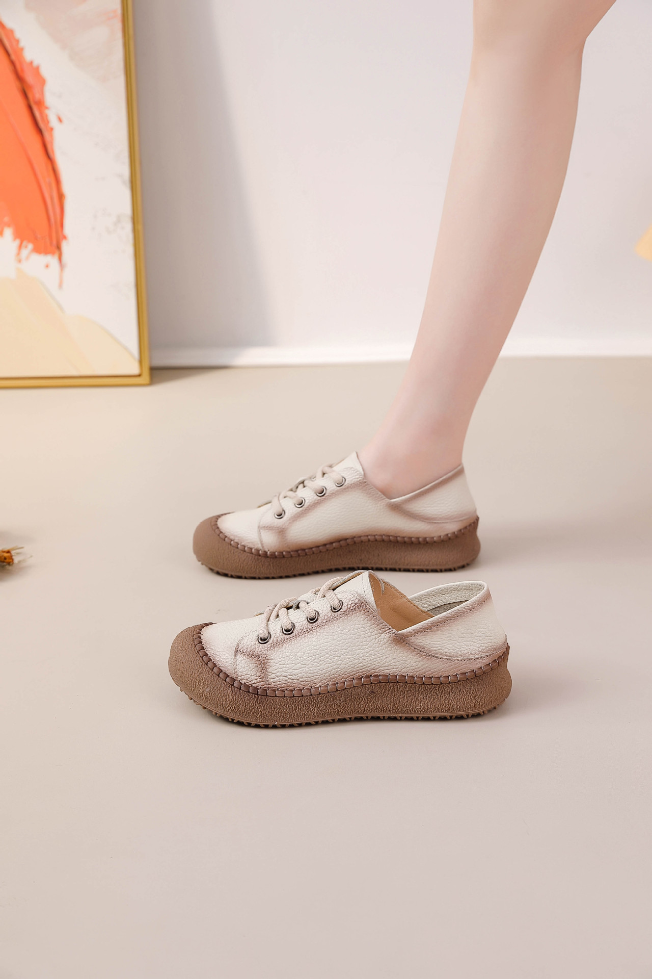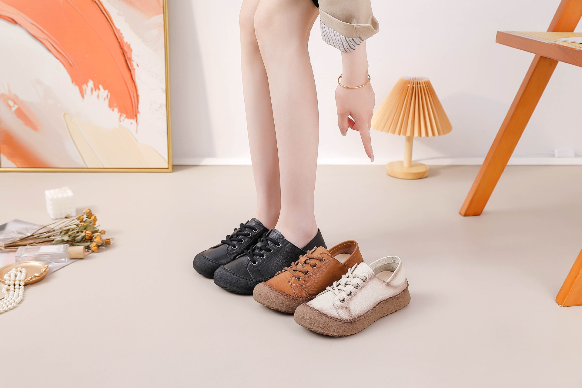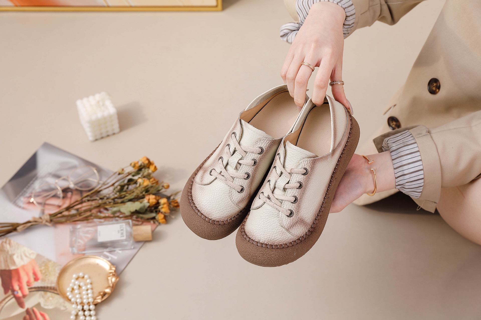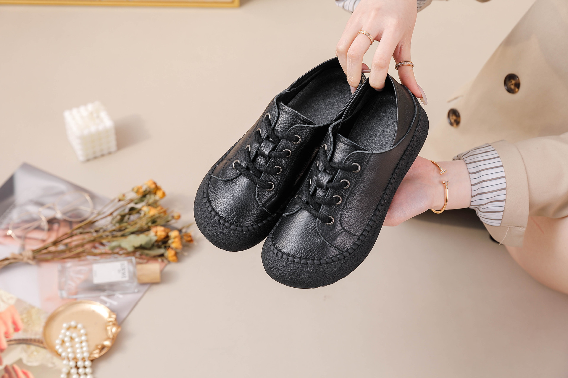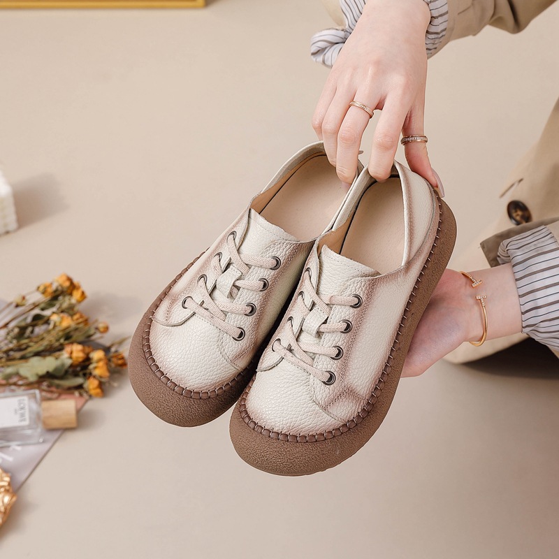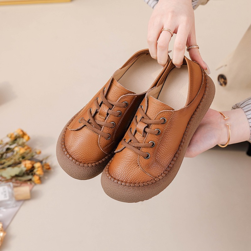 정품 소가죽 어머니 신발, 편안한 둥근 발가락 다용도 캐주얼 신발, 봄 여름 부드러운 밑창 내마모성 싱글 신발, 여성용 플랫 소형 가죽 신발스토어 가기