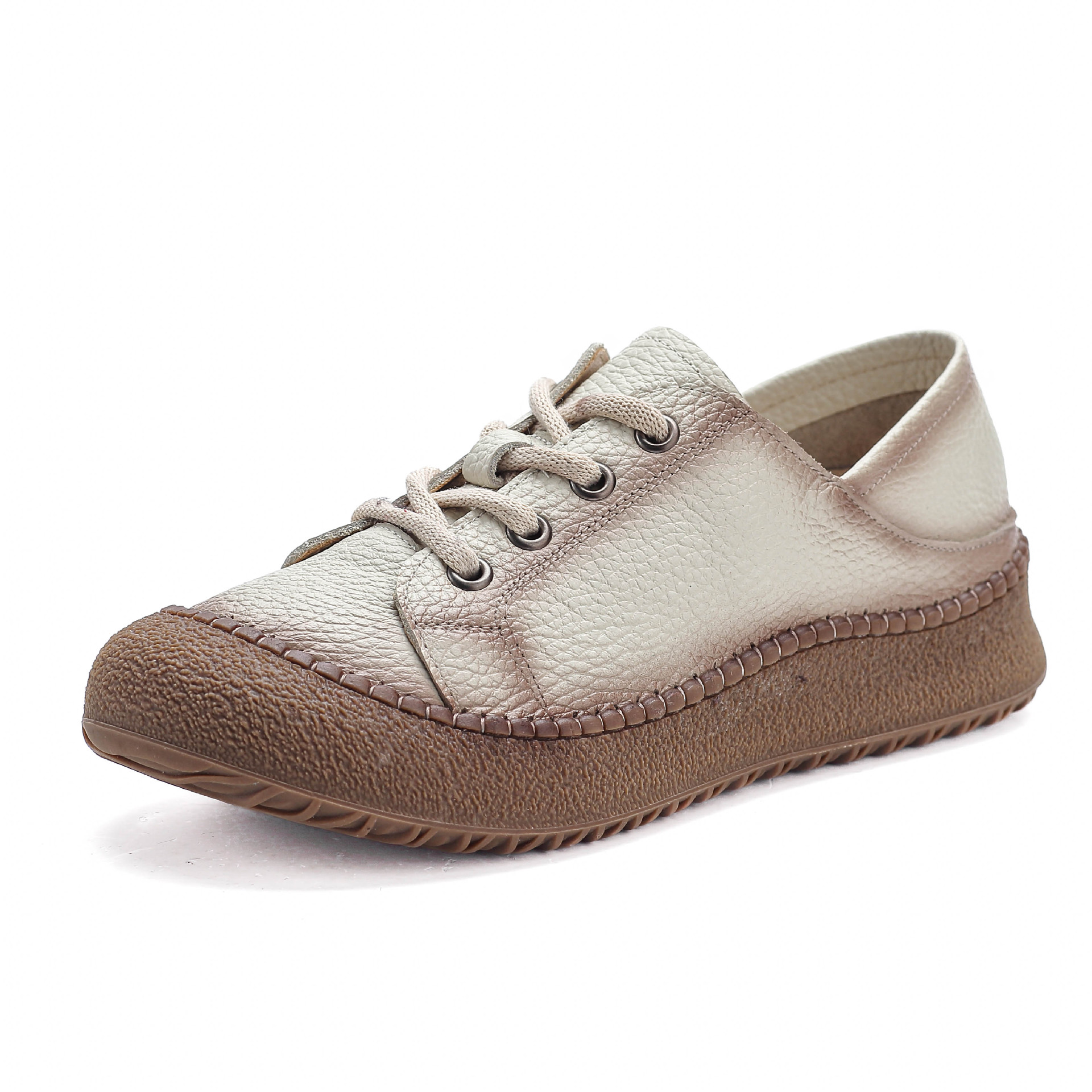 정품 소가죽 어머니 신발, 편안한 둥근 발가락 다용도 캐주얼 신발, 봄 여름 부드러운 밑창 내마모성 싱글 신발, 여성용 플랫 소형 가죽 신발