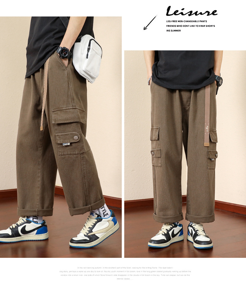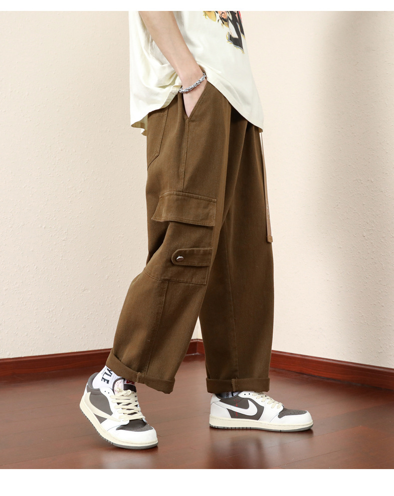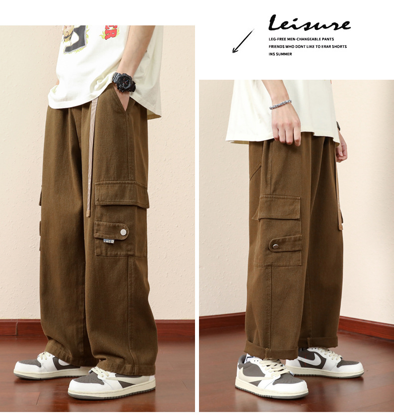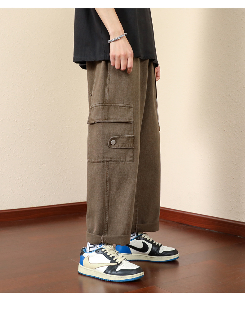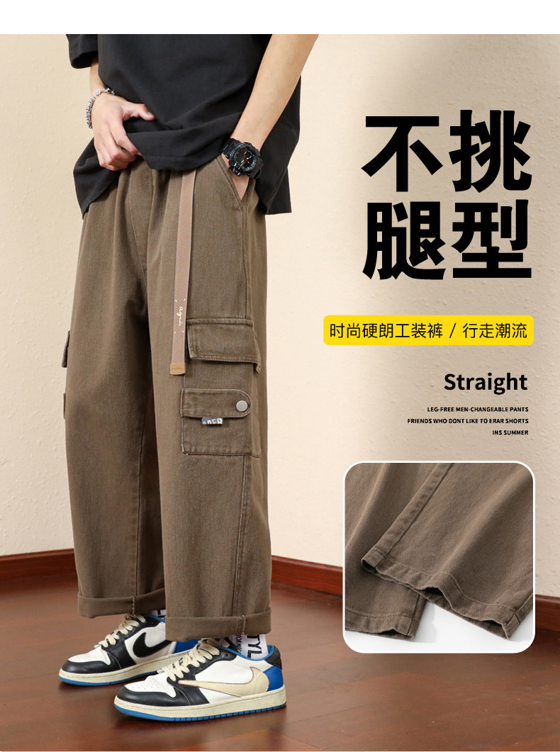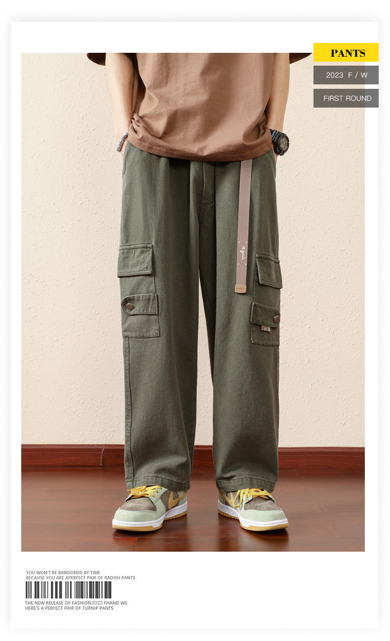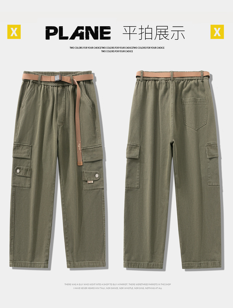 남성용 카고 팬츠, 봄, 가을 트렌디 브랜드 아메리칸 아미 그린 루즈 스트레이트 캐주얼 팬츠, 가을 트렌디 와이드 레그 롱 팬츠스토어 가기