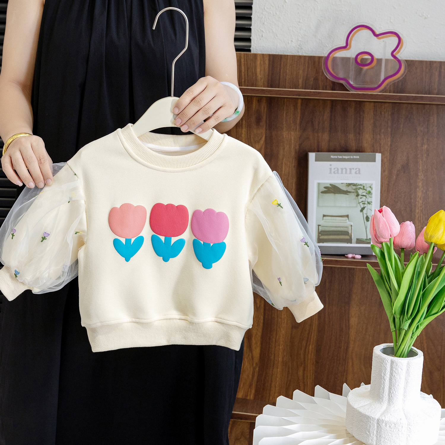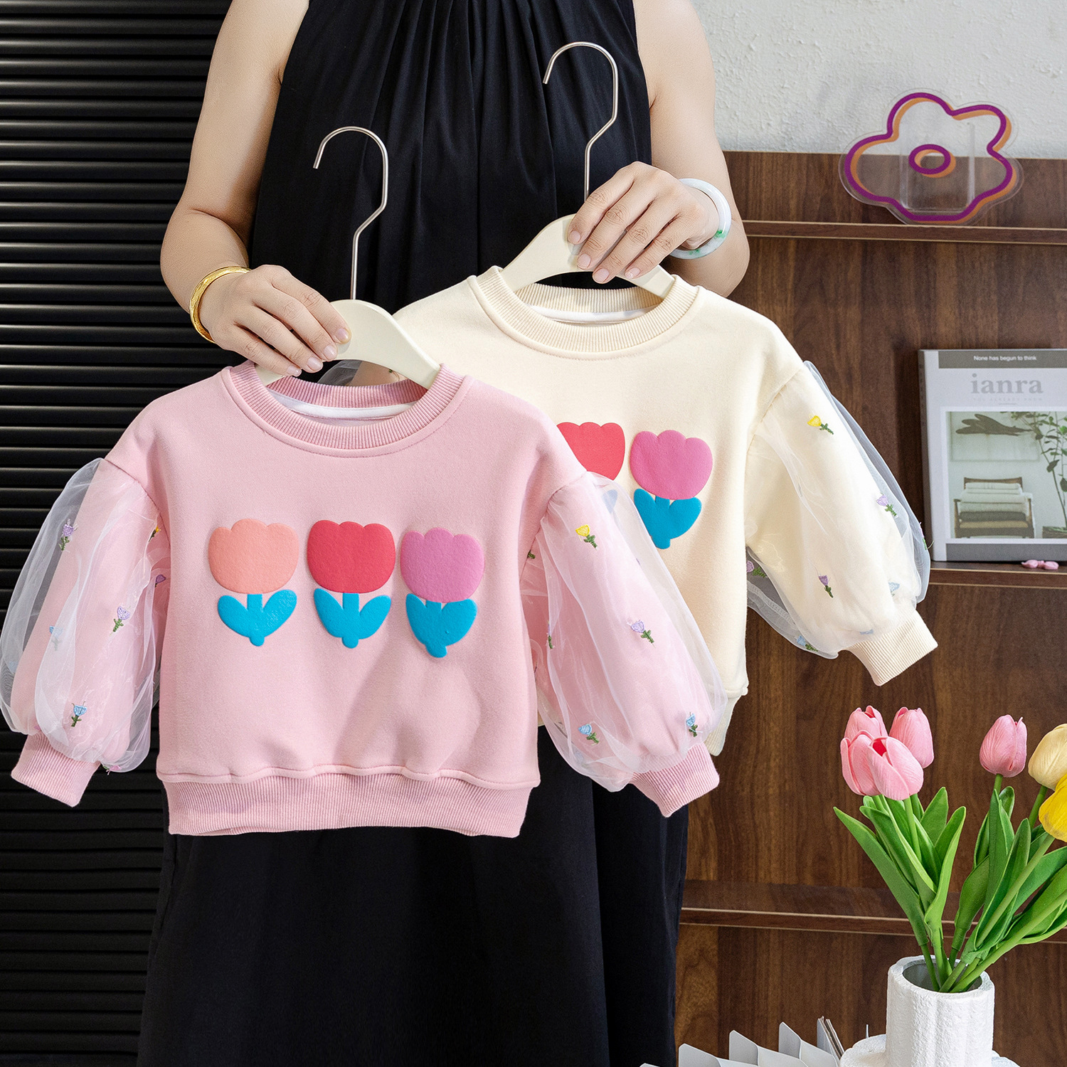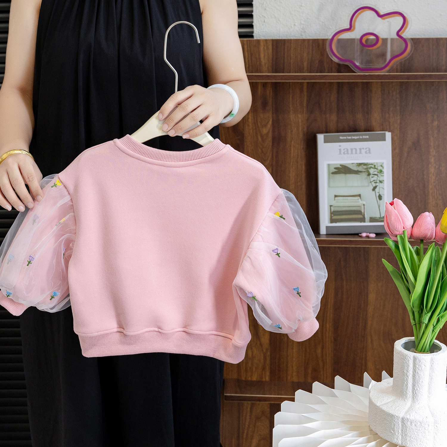 2024 년 가을 신형 한국식 여아 땀 중소 어린이 메시 긴팔 러빙 올매치 패셔너블 아우터 스타일 탑