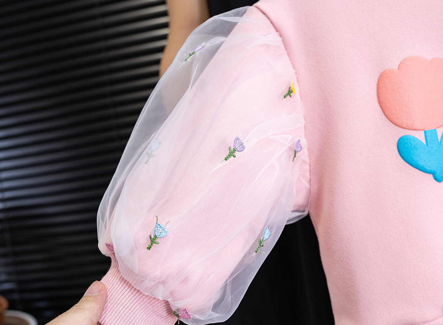 2024 년 가을 신형 한국식 여아 땀 중소 어린이 메시 긴팔 러빙 올매치 패셔너블 아우터 스타일 탑스토어 가기