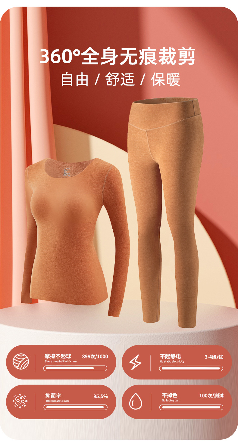 여성용 토끼털 실크 보온 속옷, 독일산 벨벳, 심리스 발열 플러스 벨벳, 두꺼운 하이웨이스트, 배를 조여주는 가을옷과 긴바지 세트스토어 가기