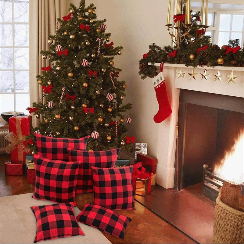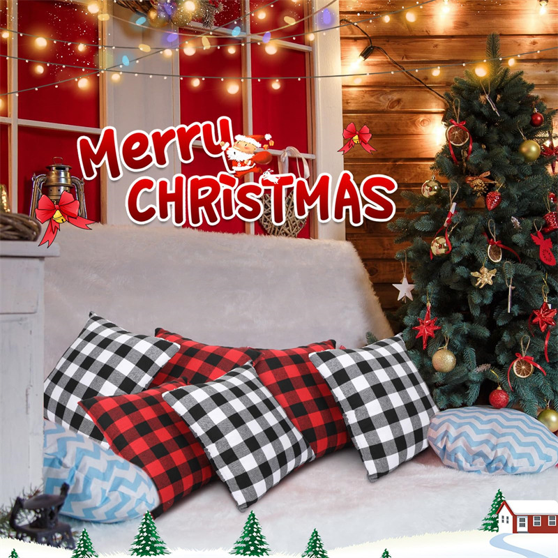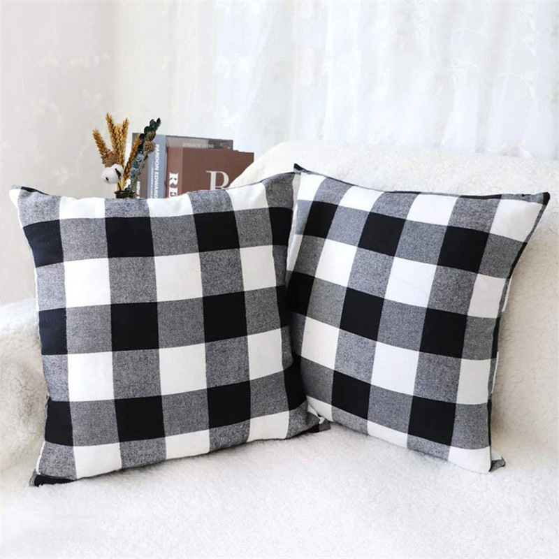 复古水牛格子枕套亚马逊经典圣诞节房间沙发黑白格子靠垫套抱枕套스토어 가기