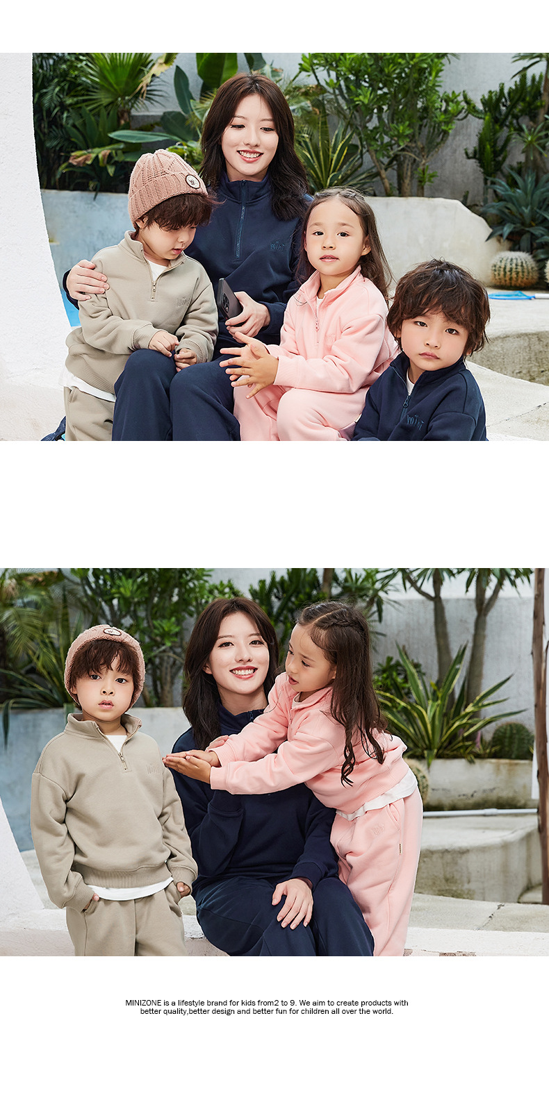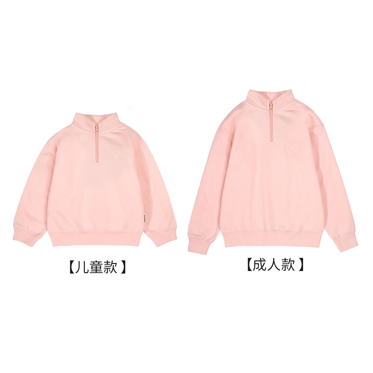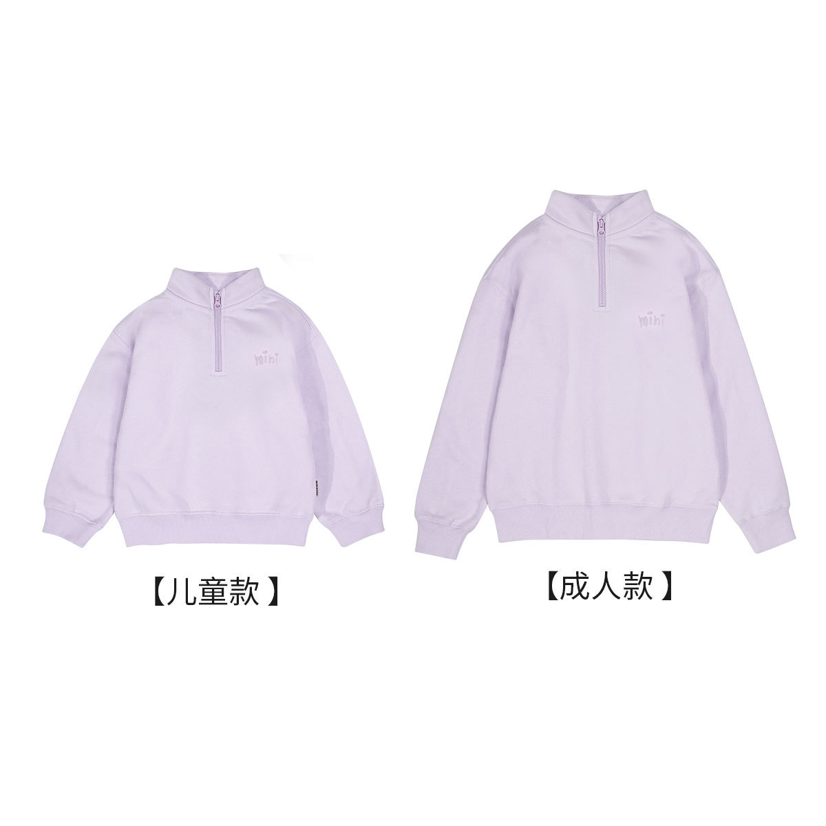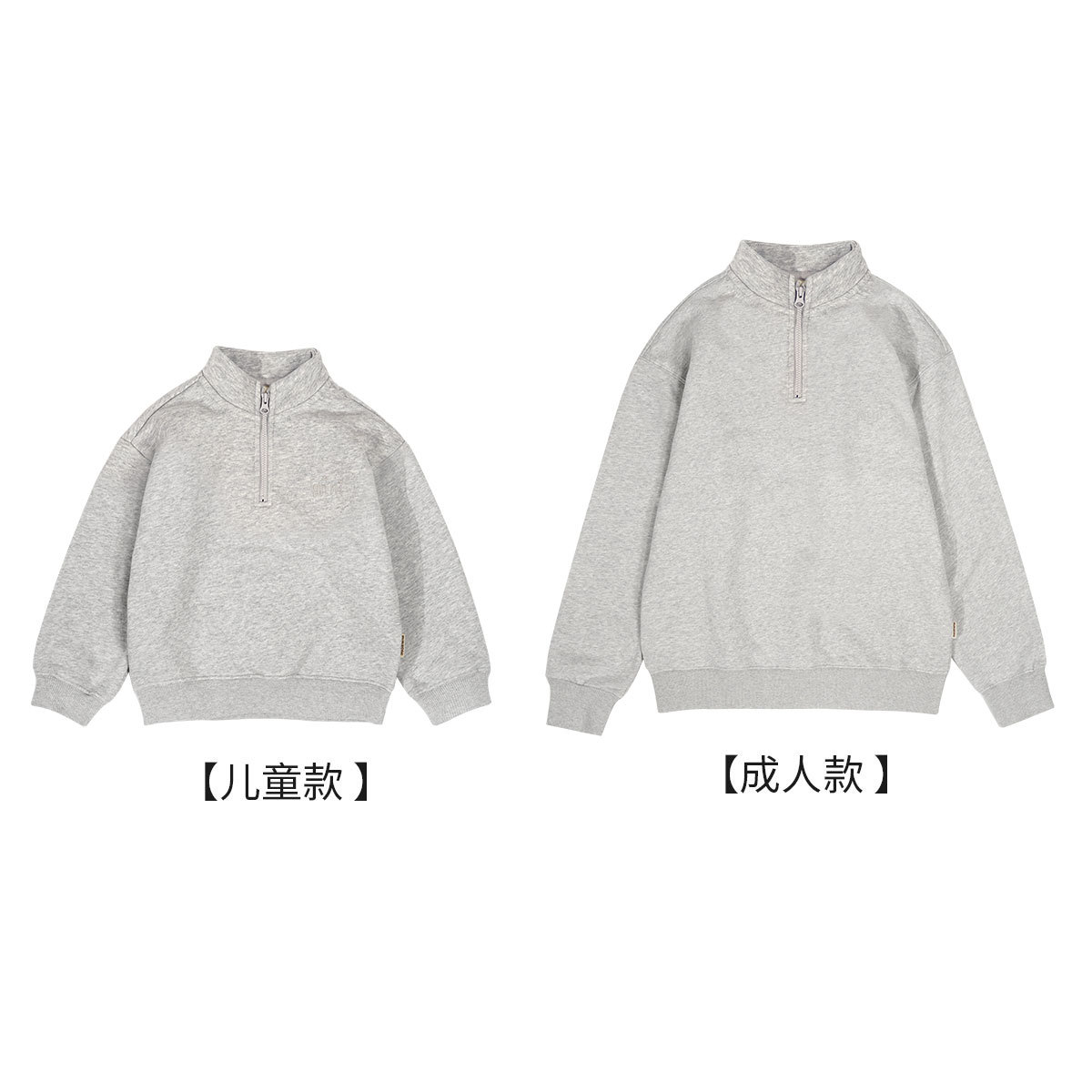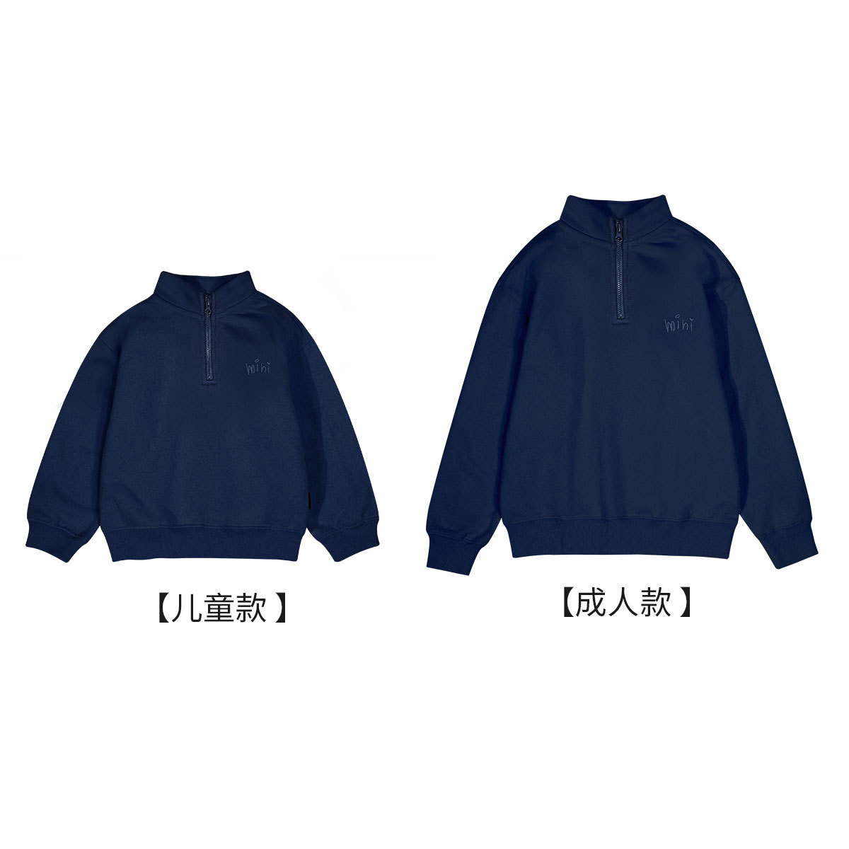 Minizone 가을 겨울 신작 부모-자식 스탠드 업 칼라 스웨트 플러스 벨벳 아동용 루즈 탑 솔리드 컬러 캐주얼 심플스토어 가기