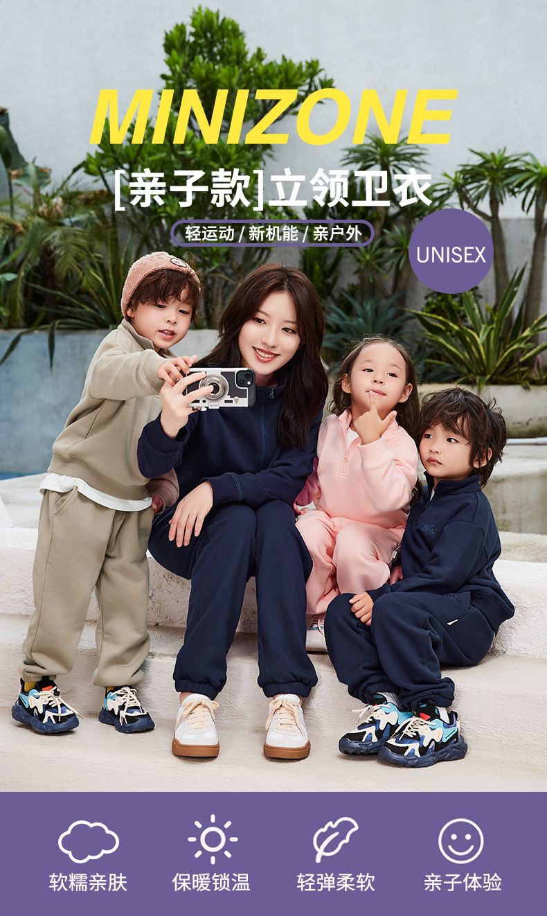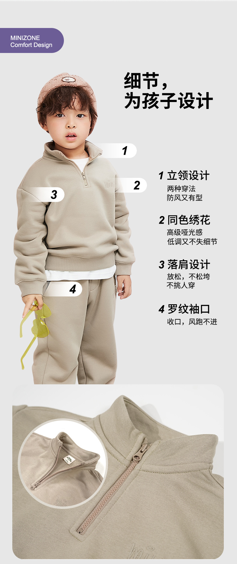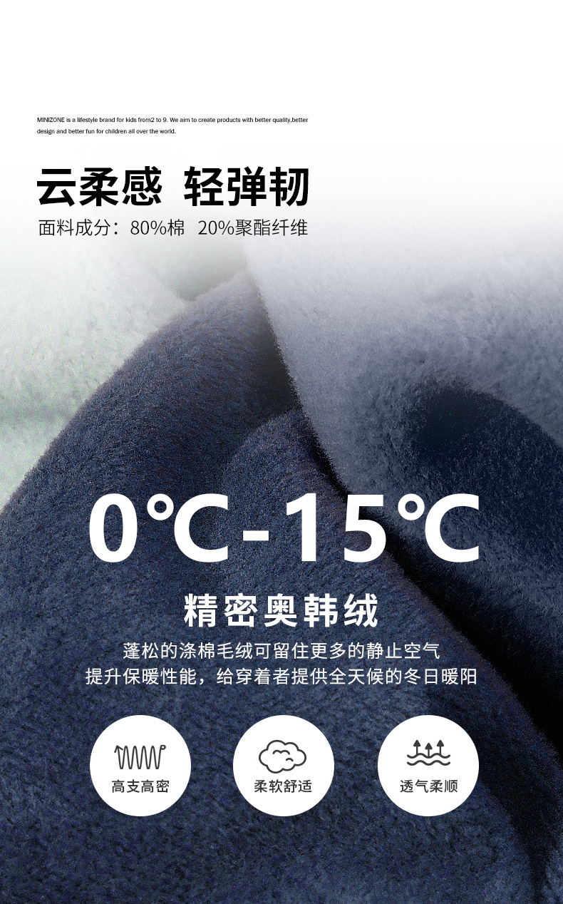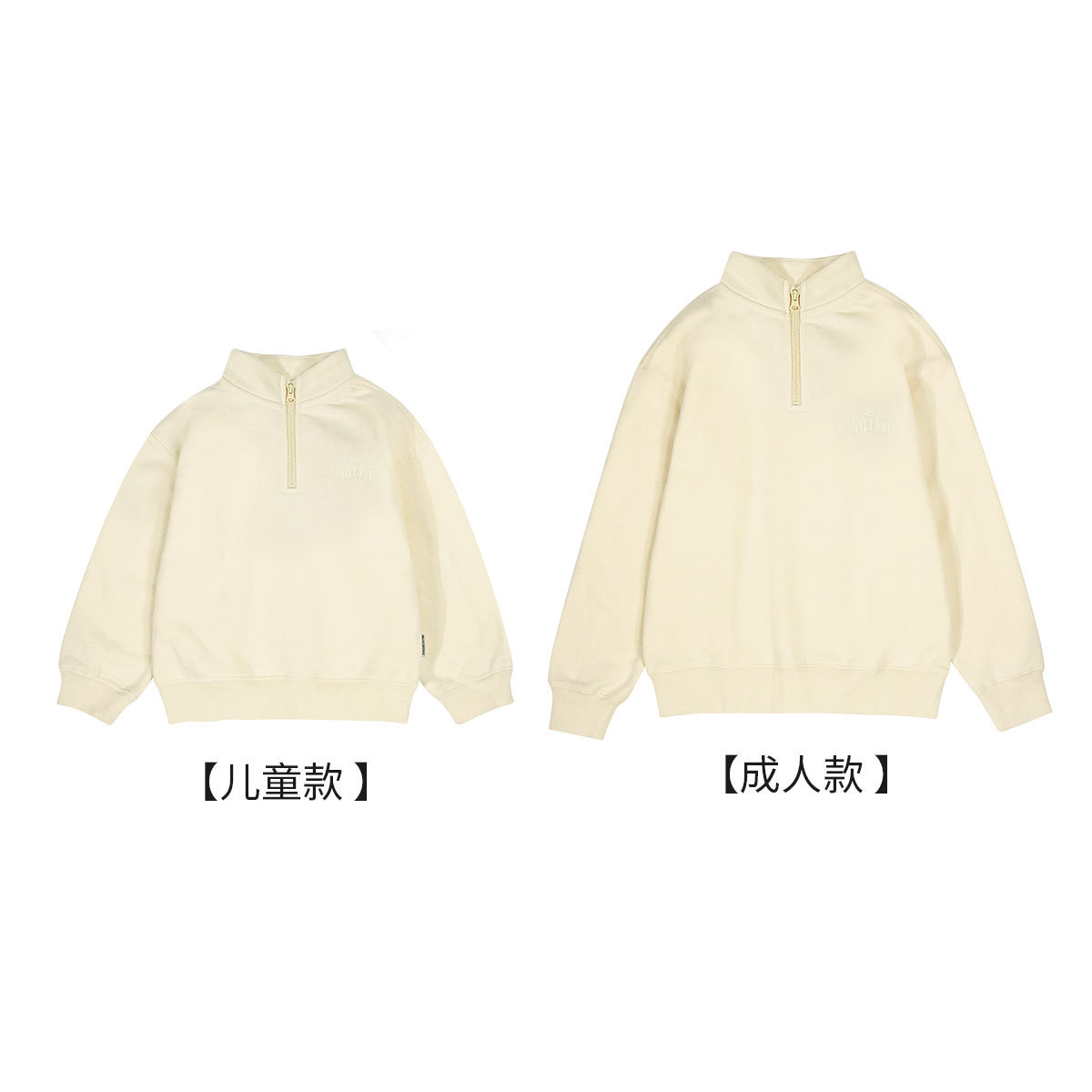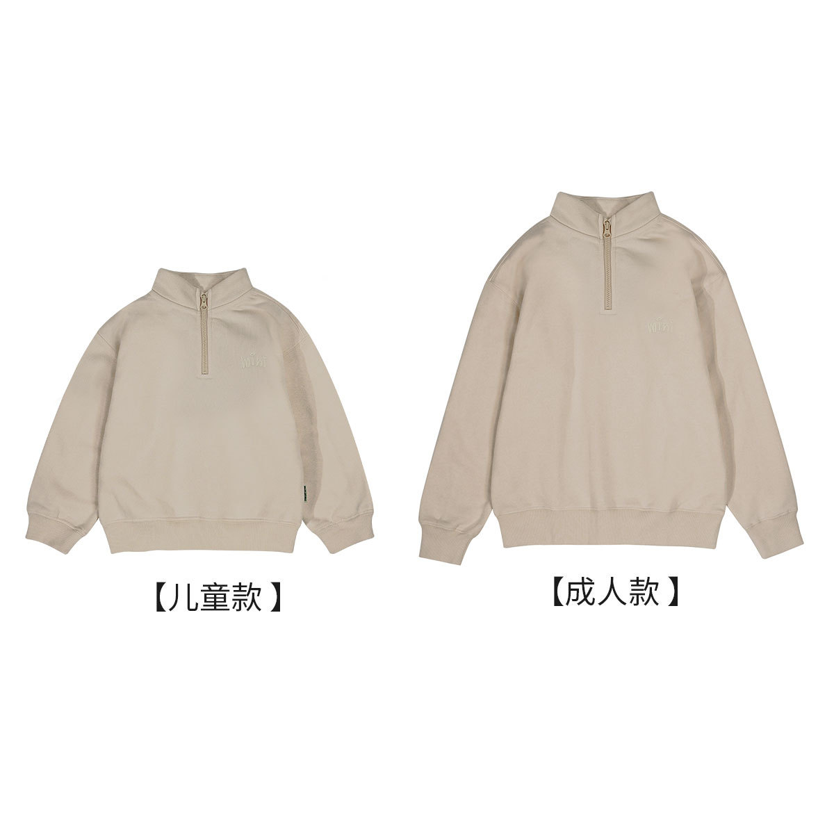 Minizone 가을 겨울 신작 부모-자식 스탠드 업 칼라 스웨트 플러스 벨벳 아동용 루즈 탑 솔리드 컬러 캐주얼 심플스토어 가기