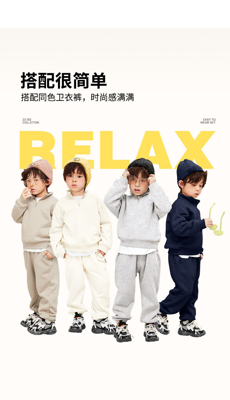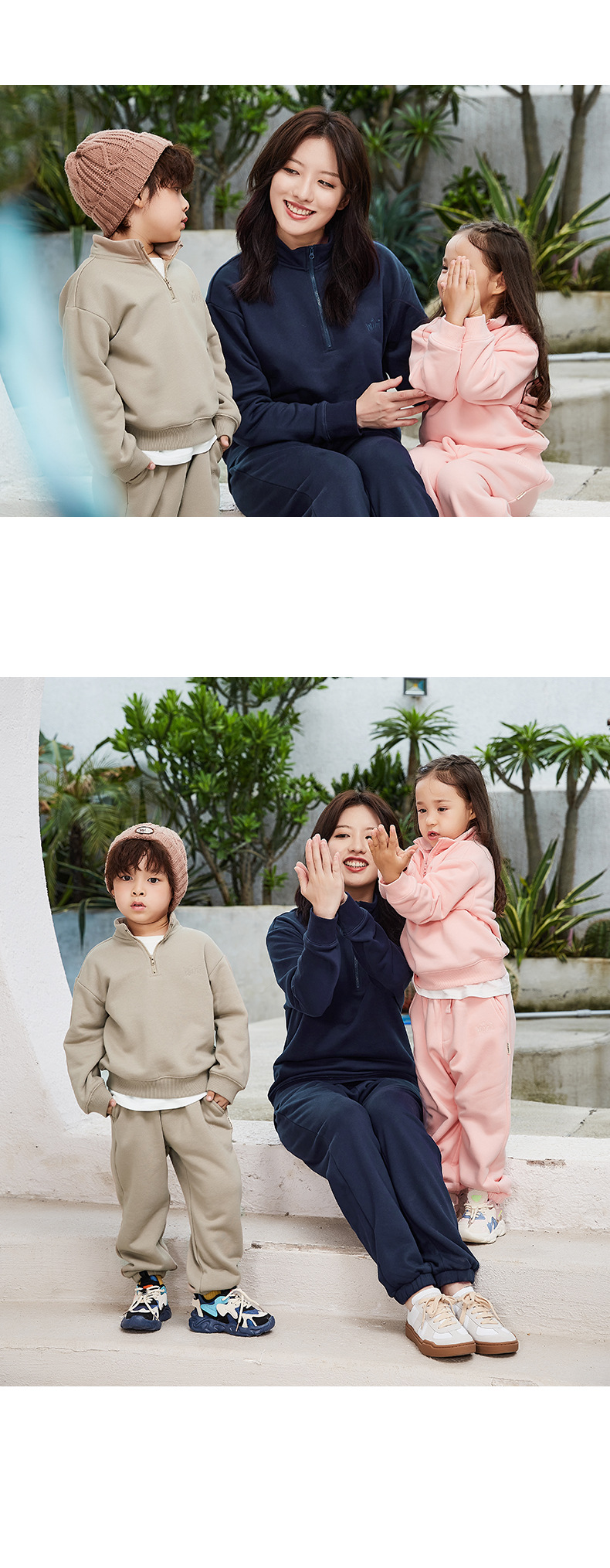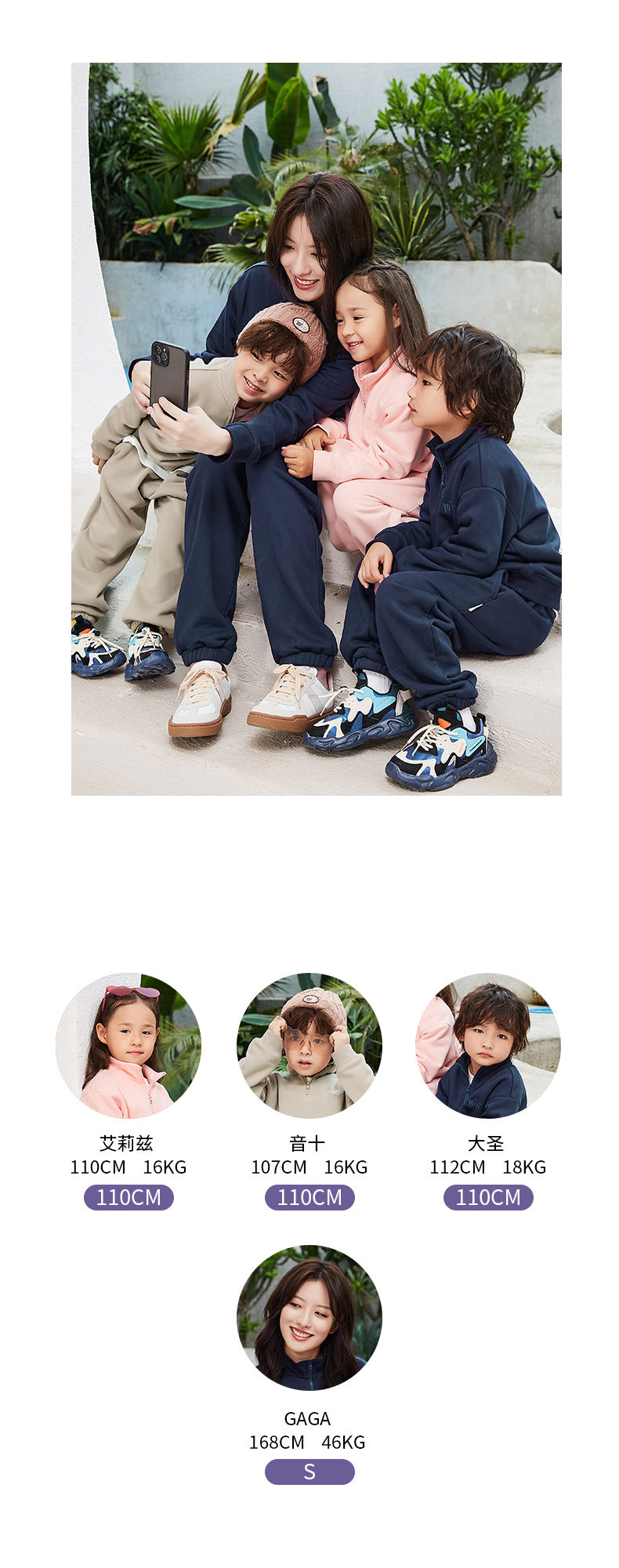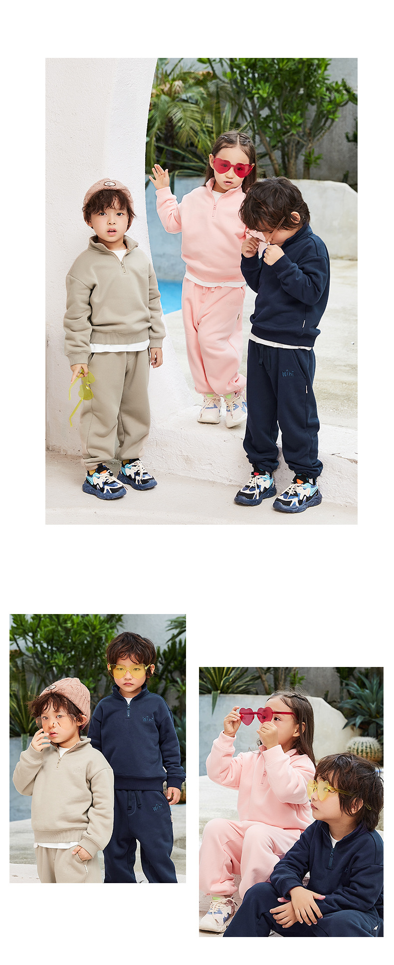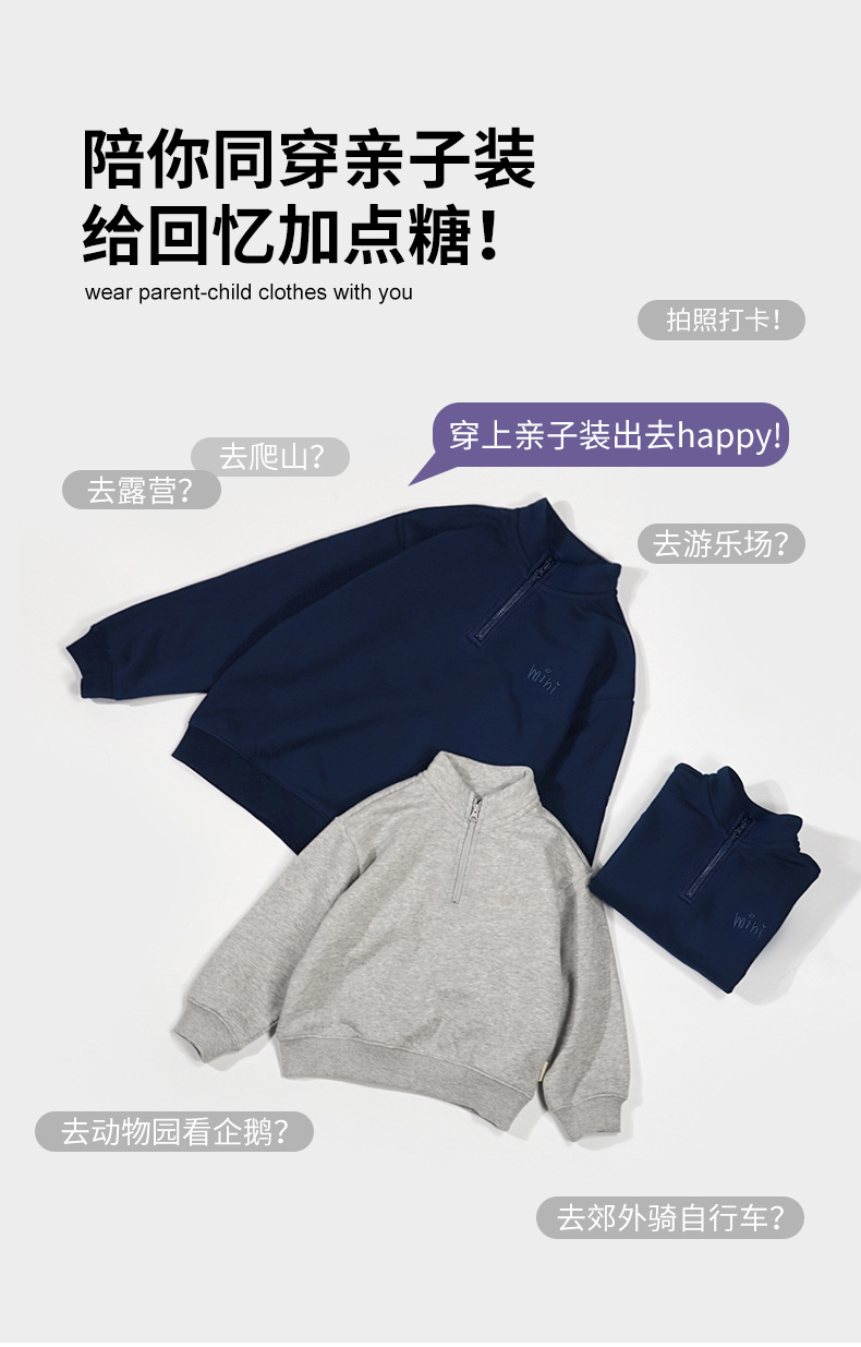 Minizone 가을 겨울 신작 부모-자식 스탠드 업 칼라 스웨트 플러스 벨벳 아동용 루즈 탑 솔리드 컬러 캐주얼 심플스토어 가기