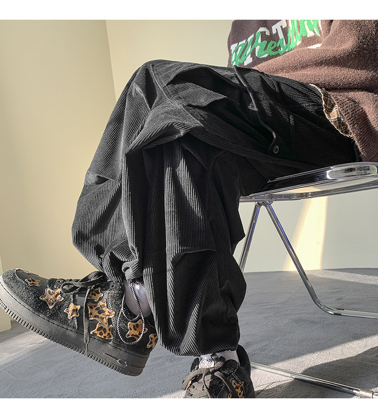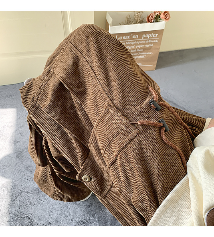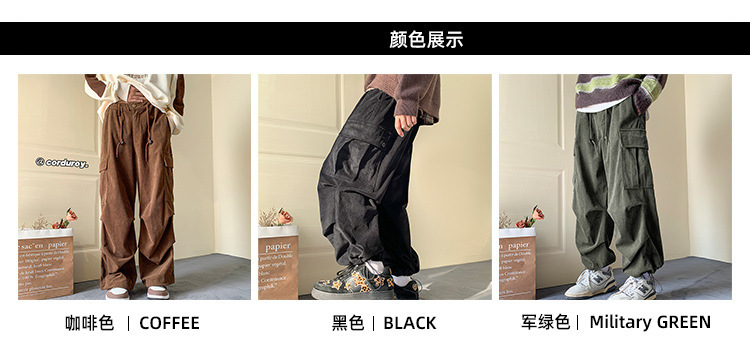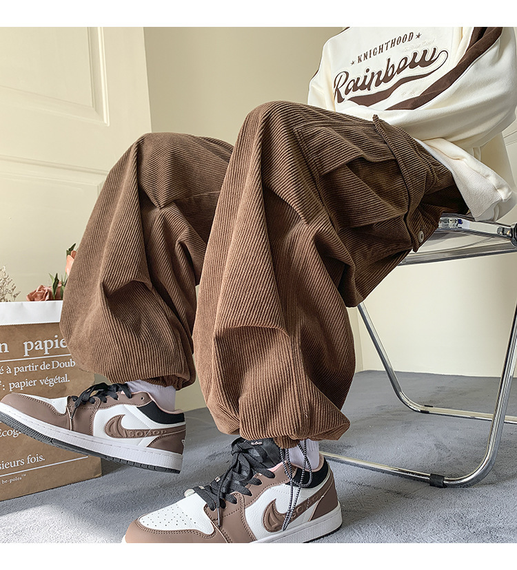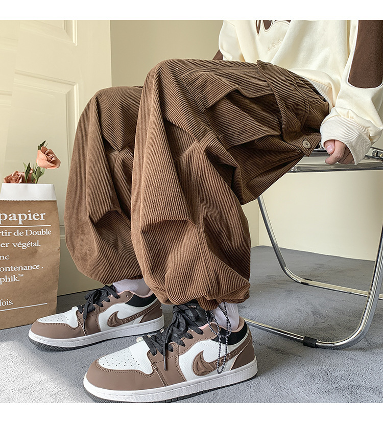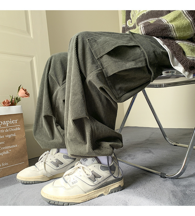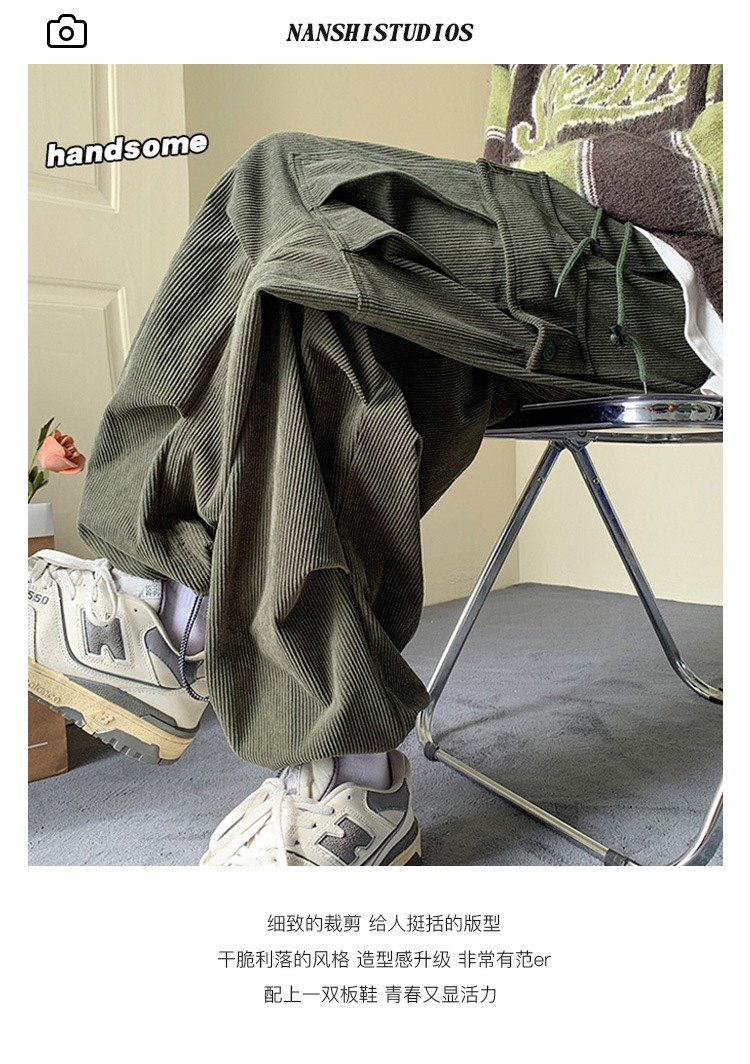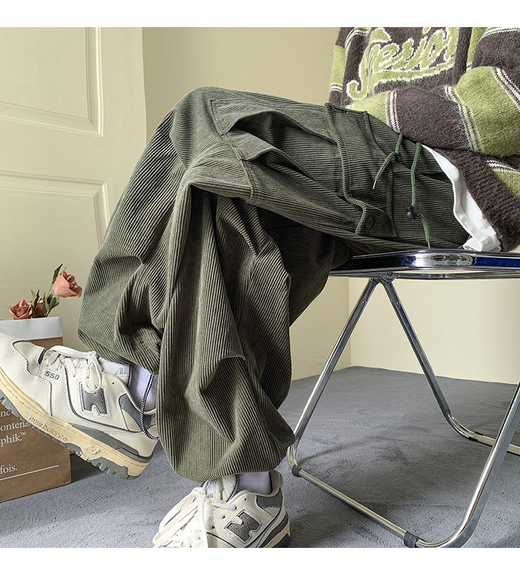 Corduroy 바지 남자의 두꺼운 미국 스타일 복고풍 큰 포켓 다리 오버롤 가을과 겨울 드로우 스트링 느슨한 캐주얼 바지