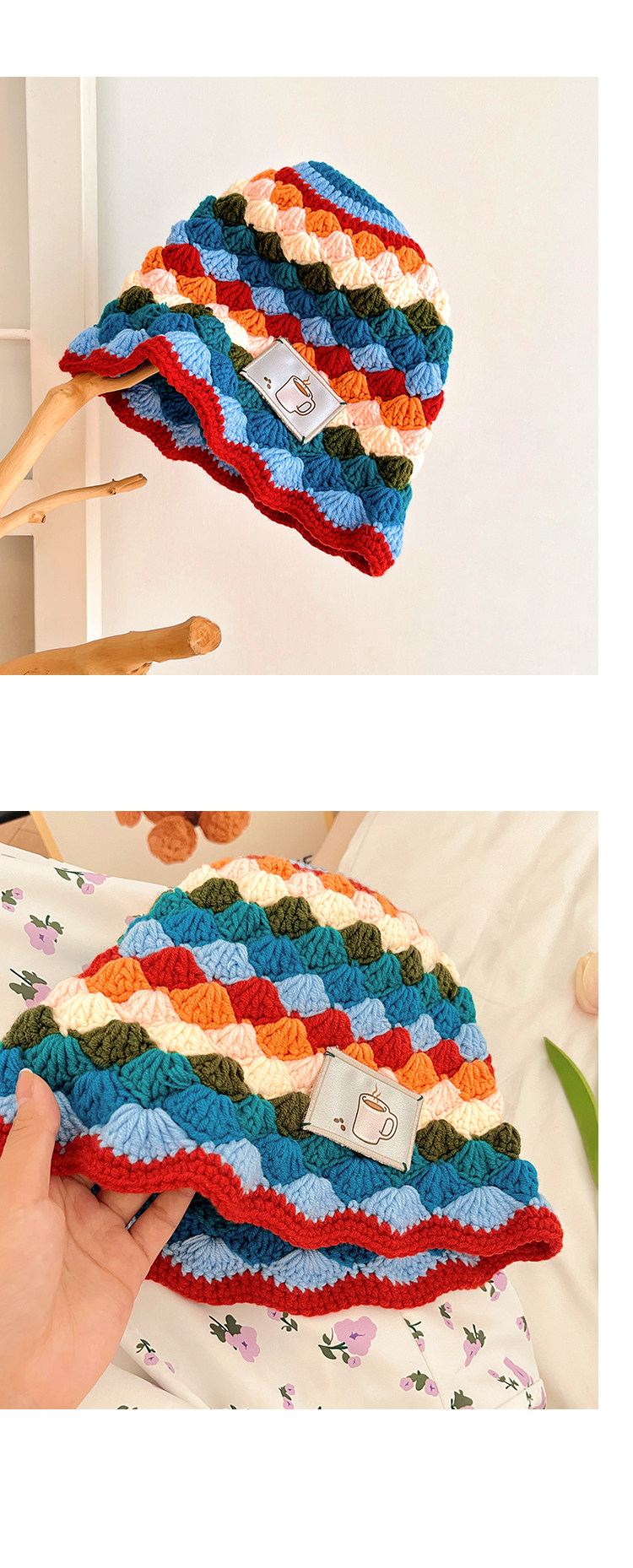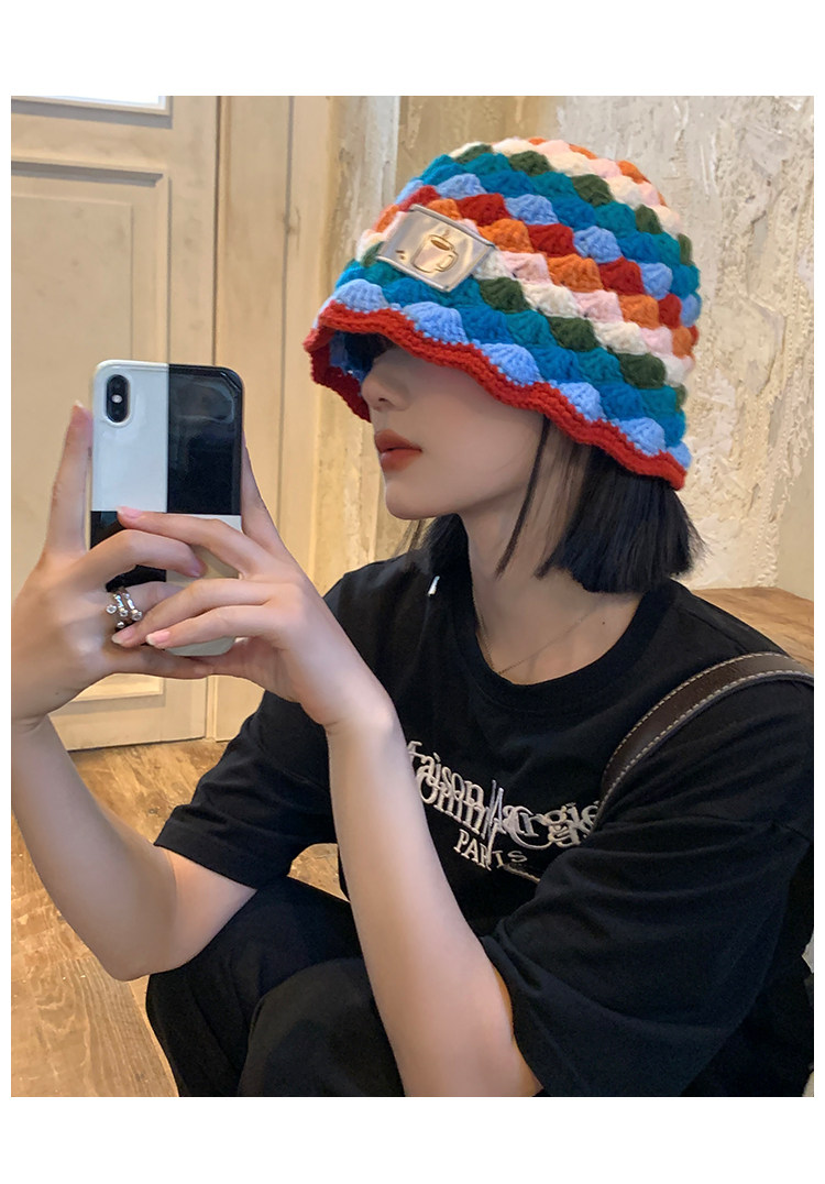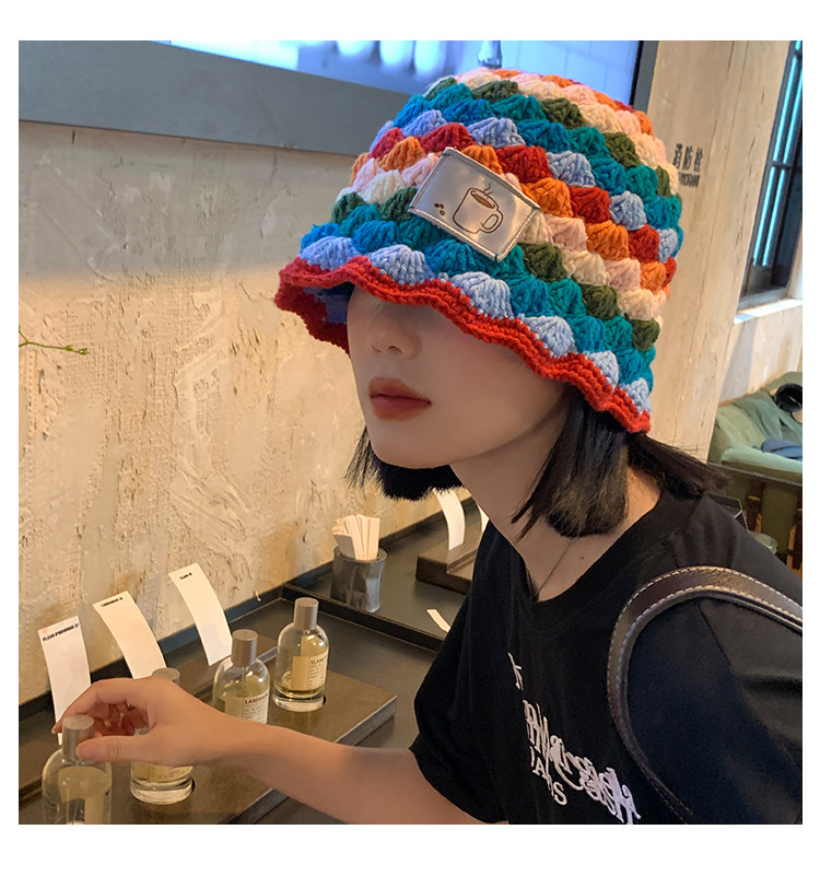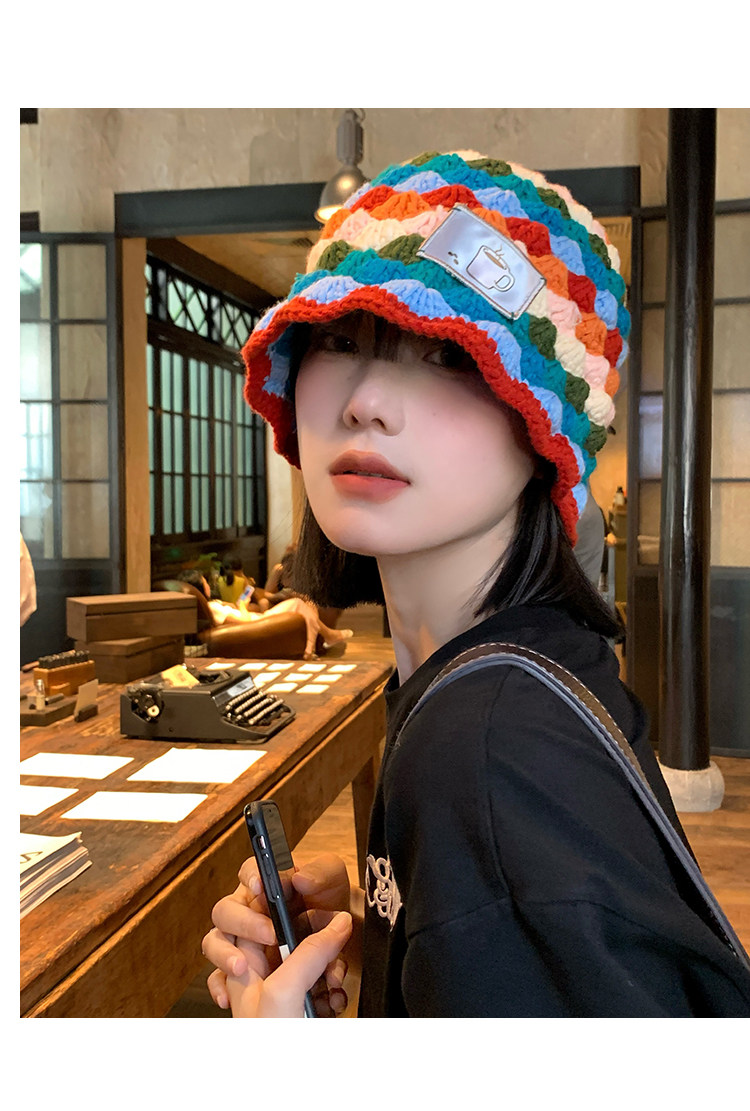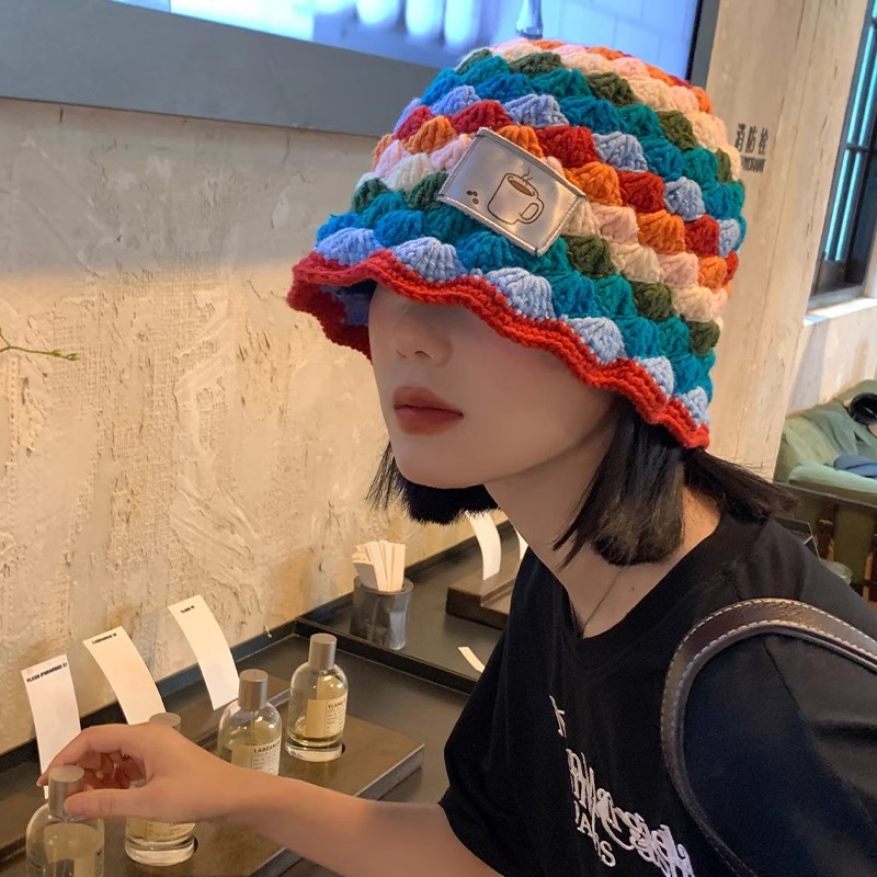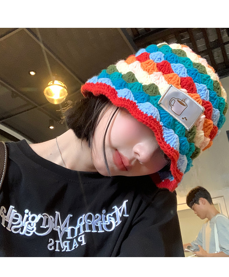 도파민 마름모꼴 니트 레인보우 어부 모자 여자 가을 · 겨울 올매치 작은 양모 냄비 모자 한국 양동이 모자스토어 가기