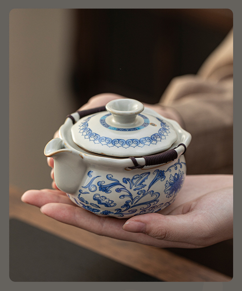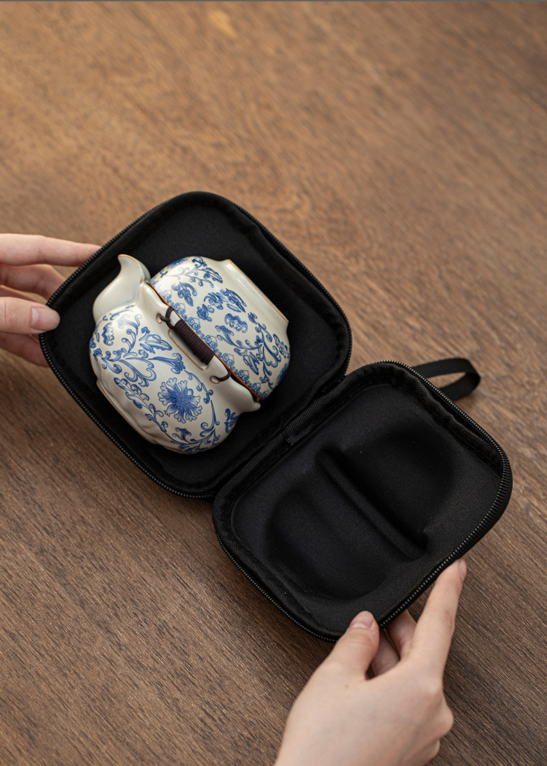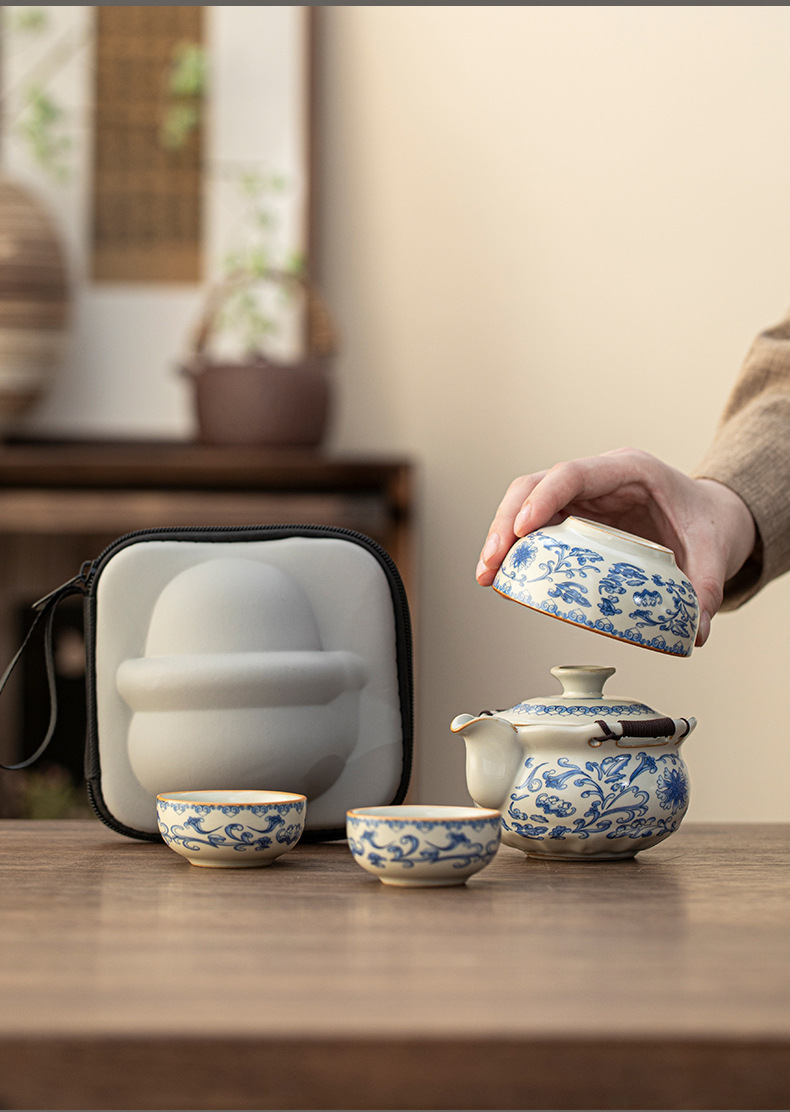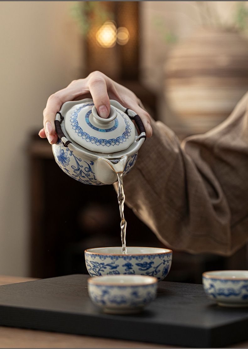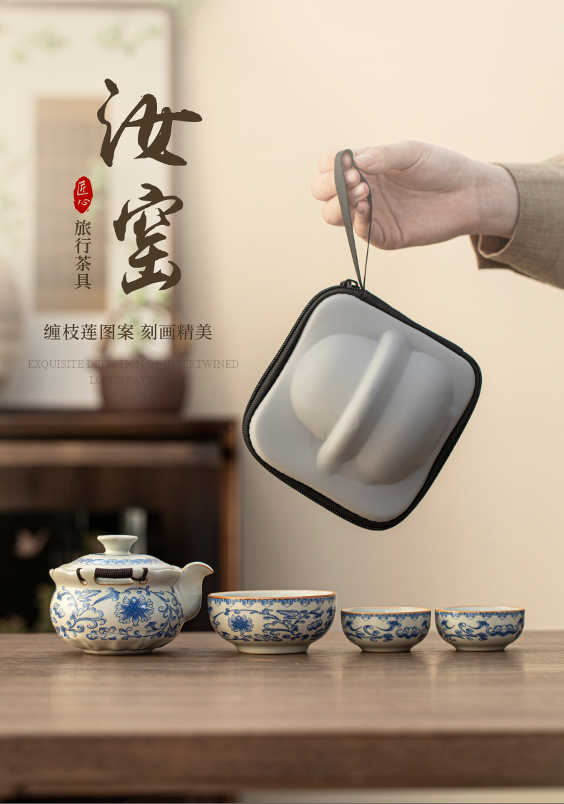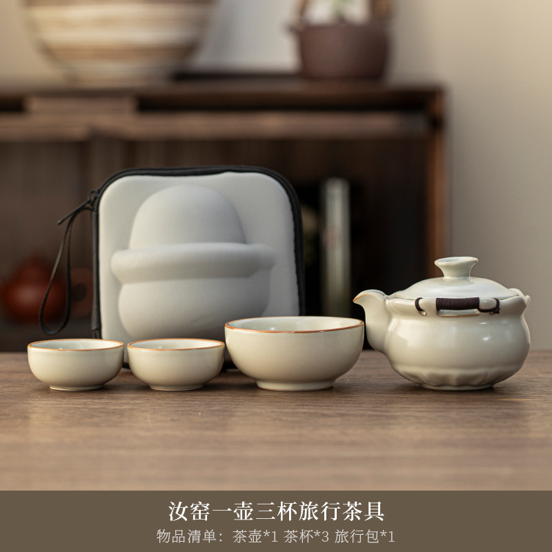 베이지 루 가마 포장 브랜칠라 핸드 헬드 팟 퀵 게스트 컵 1 팟 3 컵 여행 차 세트 휴대용 동반 의식 로고스토어 가기