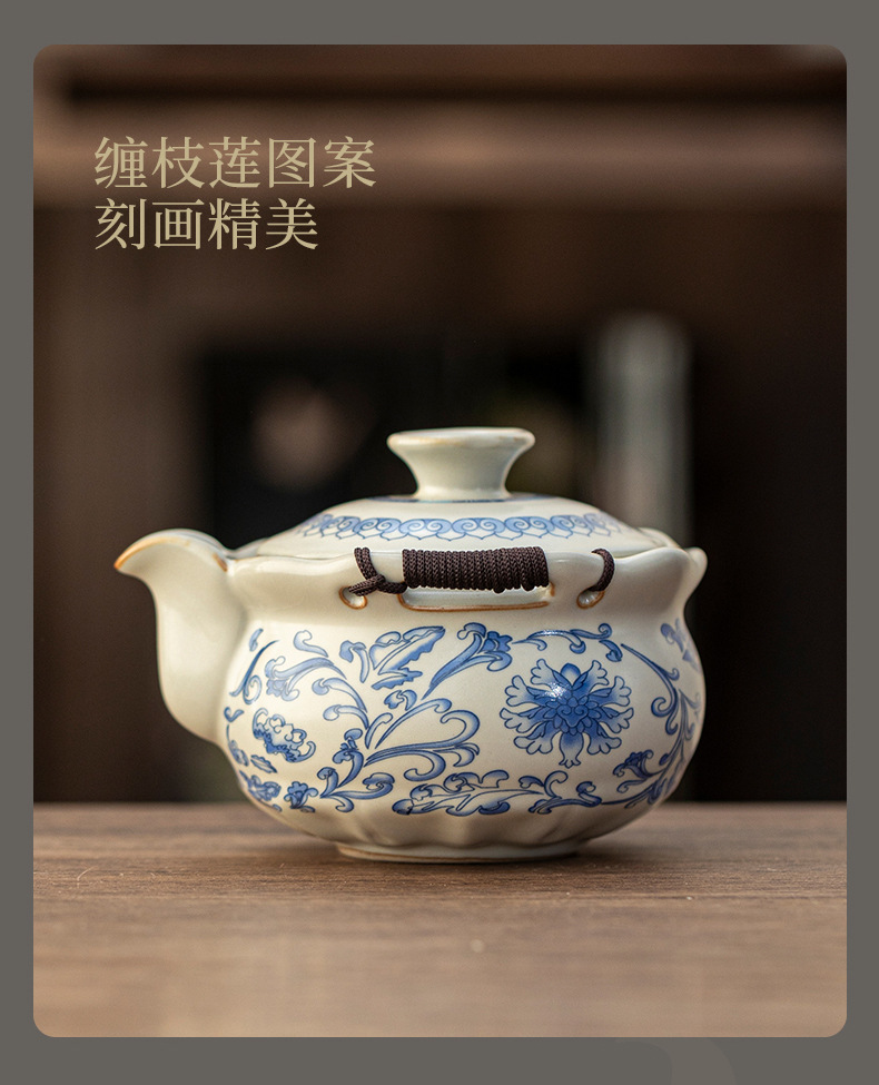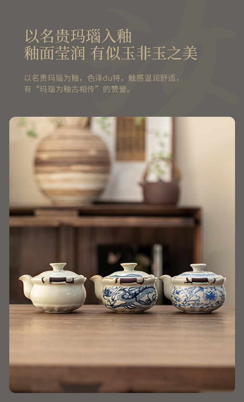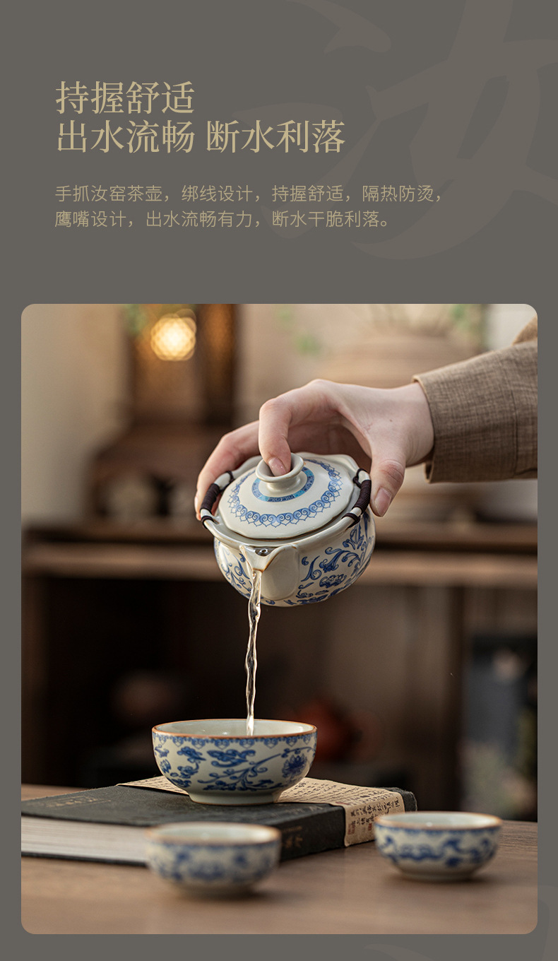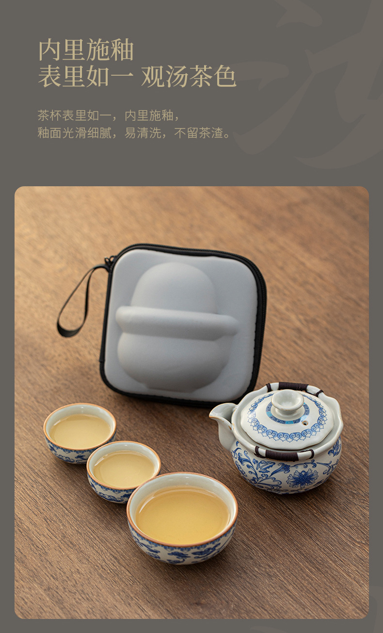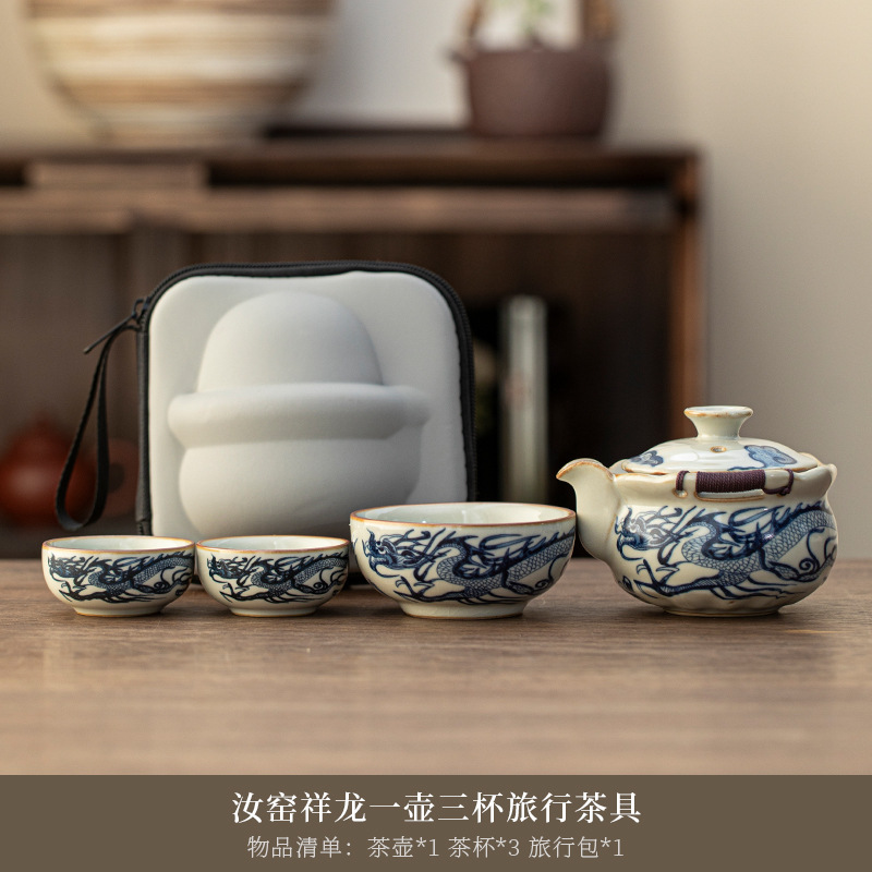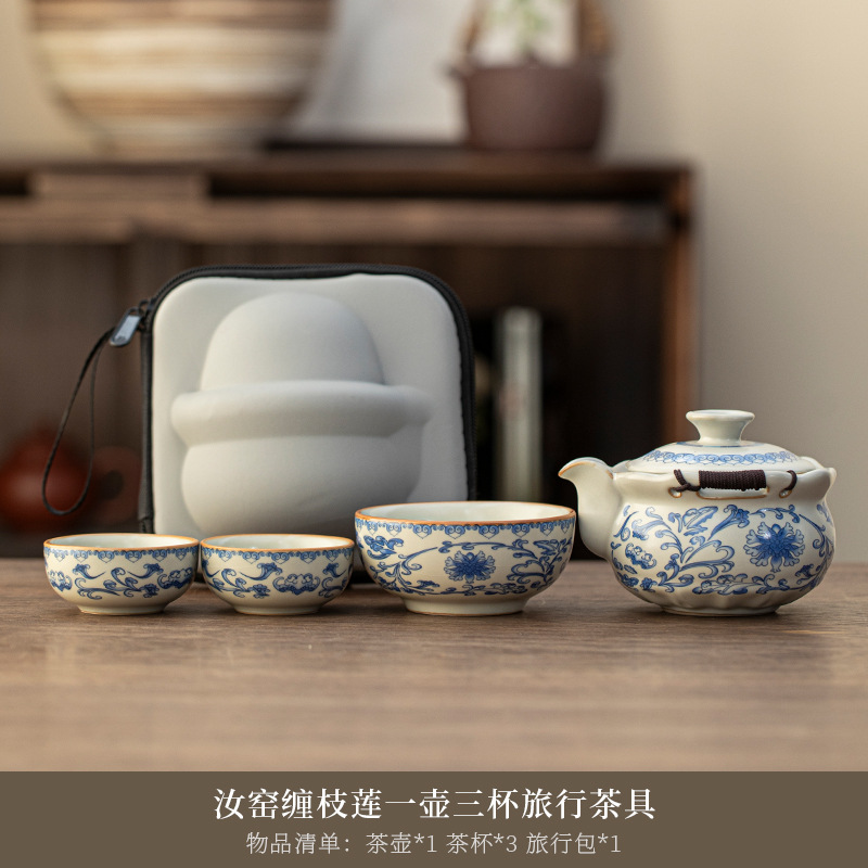베이지 루 가마 포장 브랜칠라 핸드 헬드 팟 퀵 게스트 컵 1 팟 3 컵 여행 차 세트 휴대용 동반 의식 로고스토어 가기