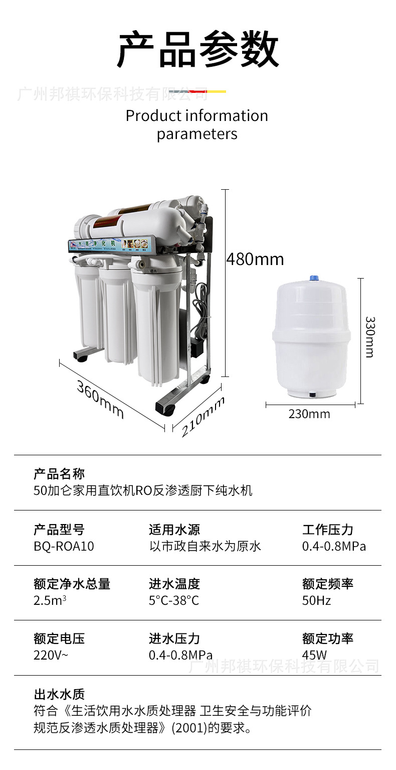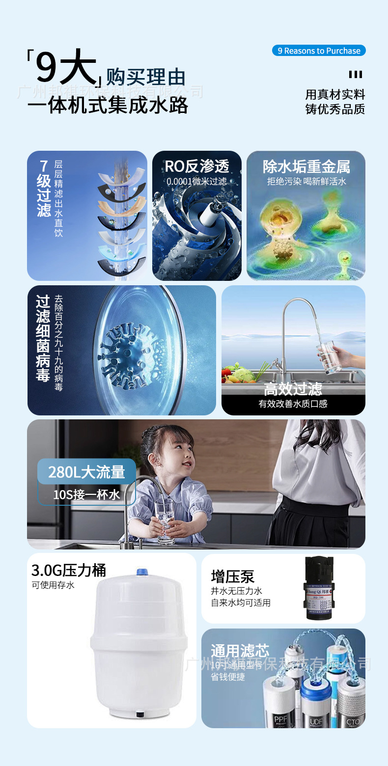 주방용 정수기 RO 역삼투 순수기 원수를 필터링하여 진흙, 박테리아, 중금속 및 기타 불순물을 제거하는 정수기스토어 가기